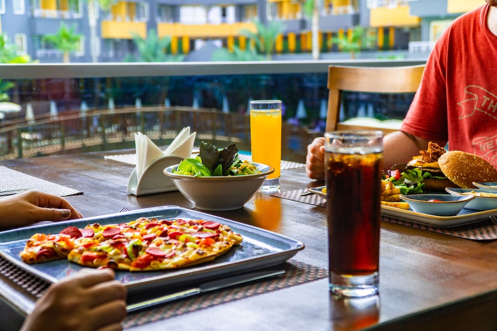 Alt var dårlig ved dette hotellet.Maten står til kun 2 stjerner av 5.Fantes ikke smør til frokost.Dårlig service fra personalet.Snakket nesten ikke engelsk,kun russisk og tyrkisk.Masse musikkstøy fra morgen til kveld.Roomservicen var elendig.Badet var slitt og avtrekksvifte bråket hele tiden.Dette hotellet og personalet bør oppgraderes til dagens standard.Dette er kun et russerhotell.Styr unna.