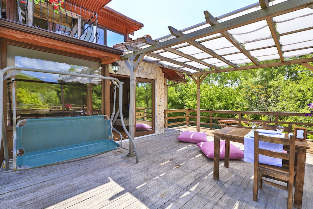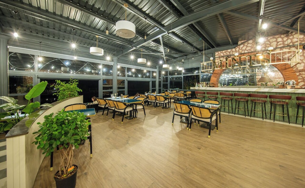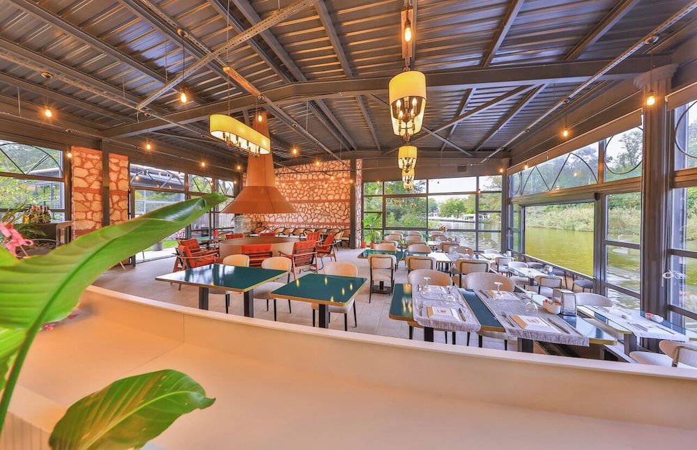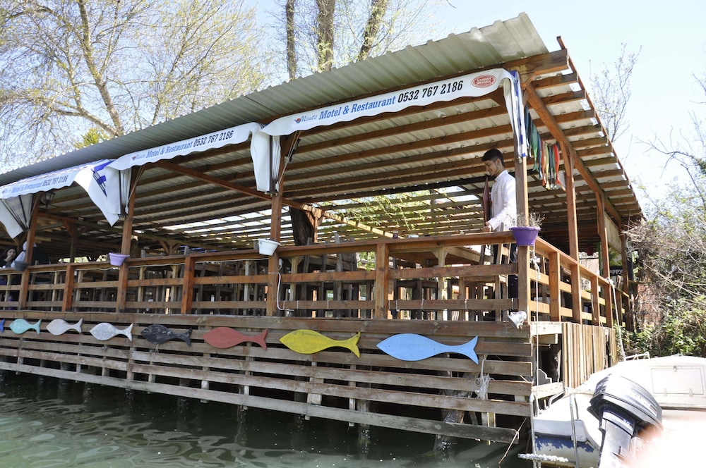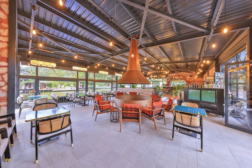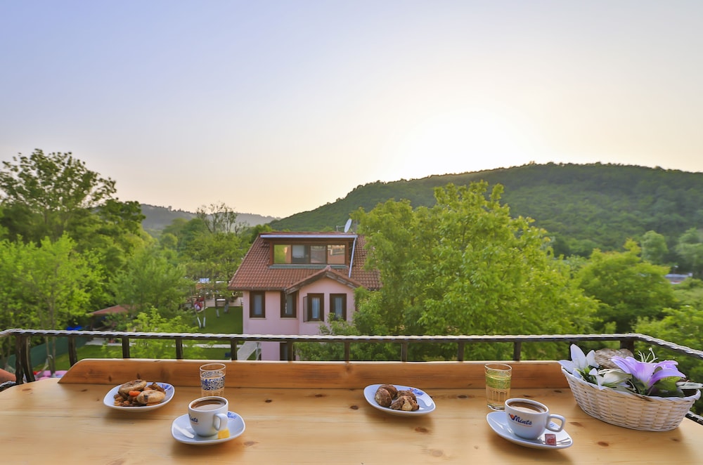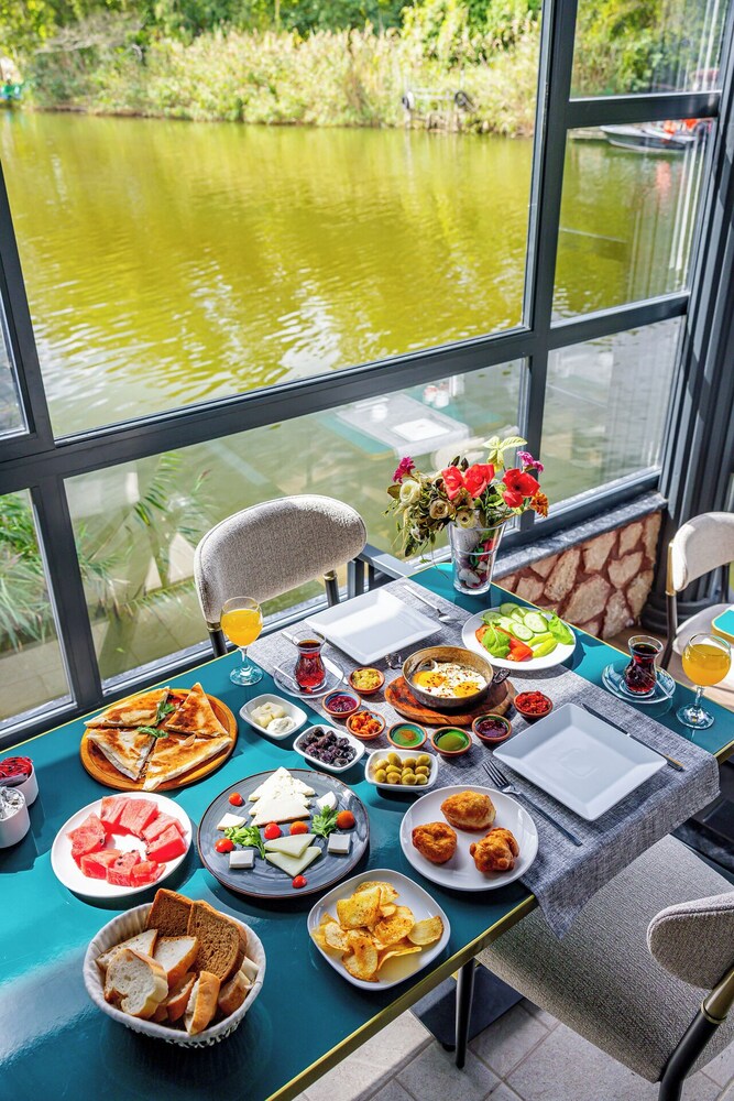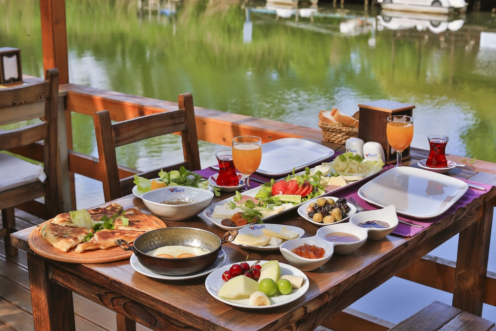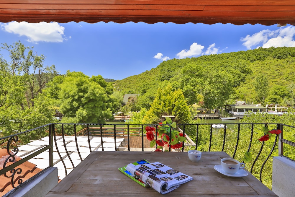 Nehir kenarinda sabah kahvaltisi da aksam yemegi ve sonrasinda aldiginiz icecekle gecen zamanda birbirinden guzel bir deneyim oluyor, nehir kiyisinda ki diger isletmelerden gelen sesler le birlikte yasayan bir nehir e misafir olmussunuz hissi uyandiriyor. Odalarda konfor cok iyi ve cok temiz .. odada buzdolabi olmamasi gece icin soguk su problemi dogursa da cok goze batmadi restoran menusu zayif ama gelen urunler leziz.