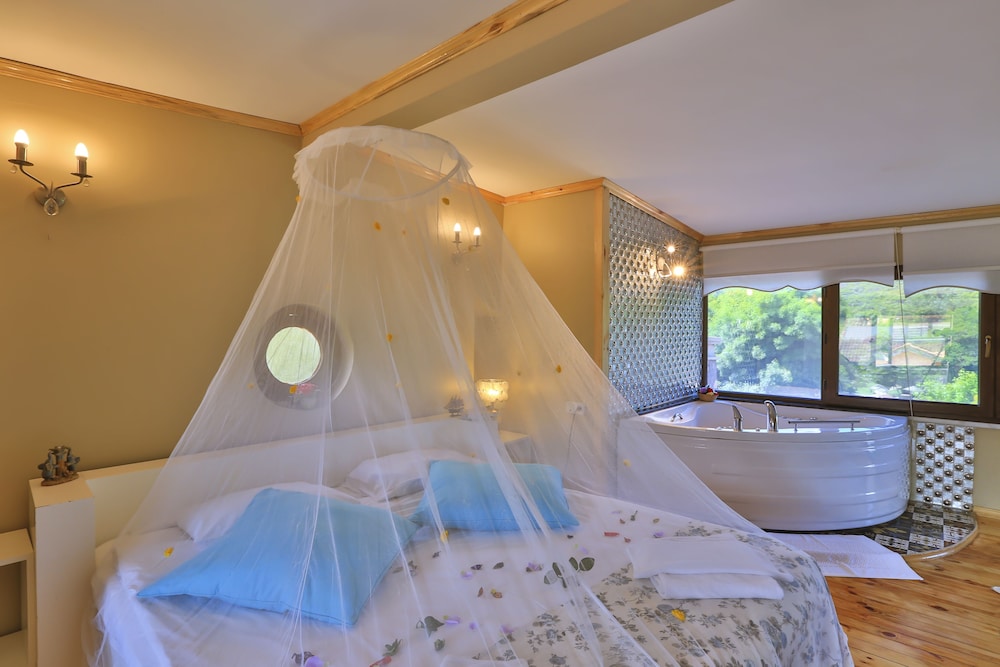 sitedeki resimlerden odaların hepsinde jakuzi var diye benim gibi yanılgıya düşmeyin. konumu ve restorantı çok iyi ama standart odaları korkunç kötü. Klima çalışmıyor, sifonlar, duş, musluk bozuk, buzdolabı bile yok odada. Konumu için söyleyecek bir şeyim yok ama odaları seçerken dikkat