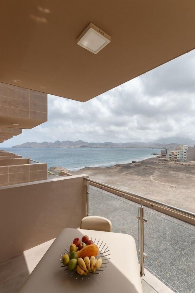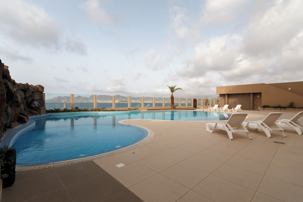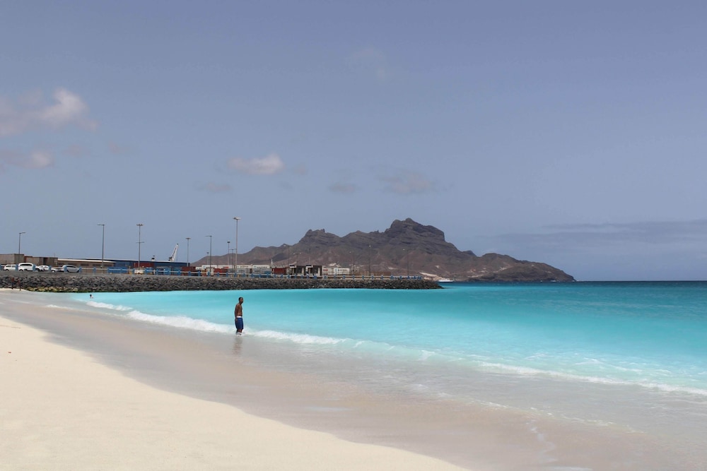 Nice hotel. Big rooms. Very clean. Friendly Staff. Nice pool. It is a little ways from Mindelo, but the taxi ride will be 300 or less. Checkout says noon, but our flight wasn't until the evening, so they let us keep the room until we needed to leave for the airport.
