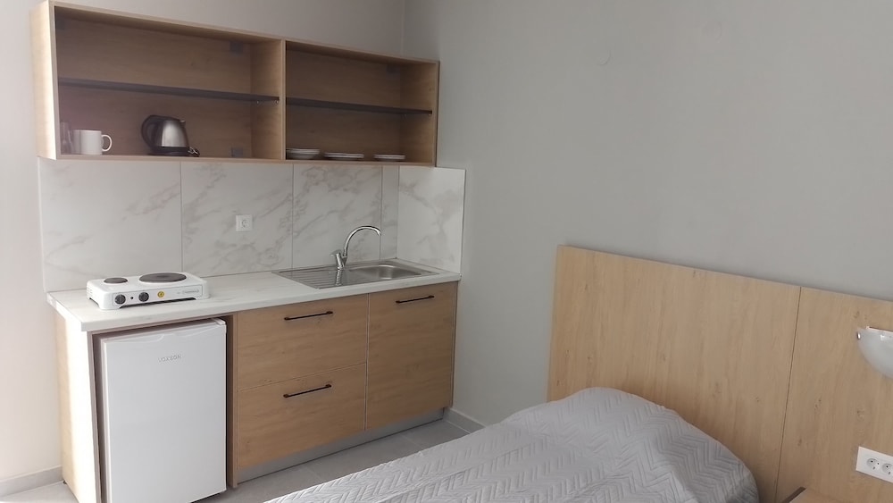De enige minpuntjes zijn dat de kamer saai is ingericht, nog geen schilderijtje of tekening op de muren en keukengerei was heel sumier, je moet alles zelf aanschaffen(afwasmiddel,sponsjes, vaatdoekjes en theedoek).