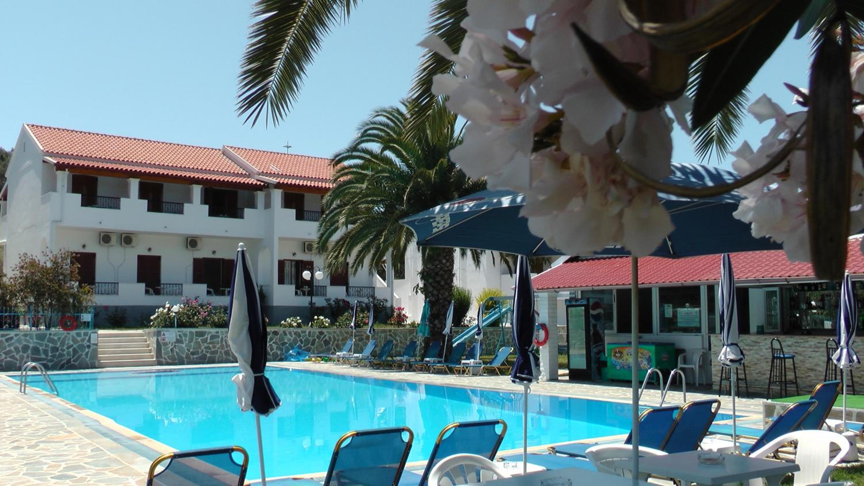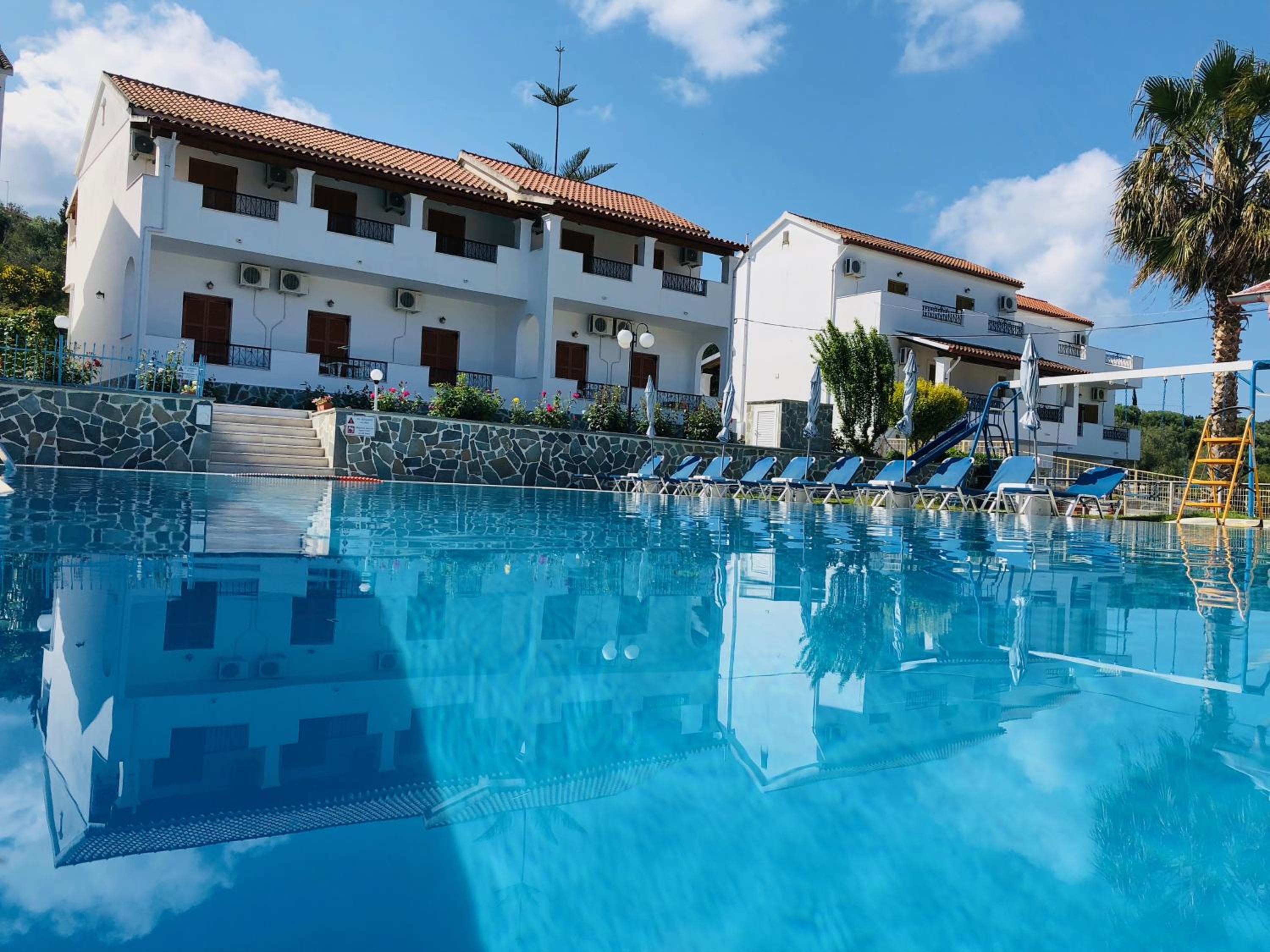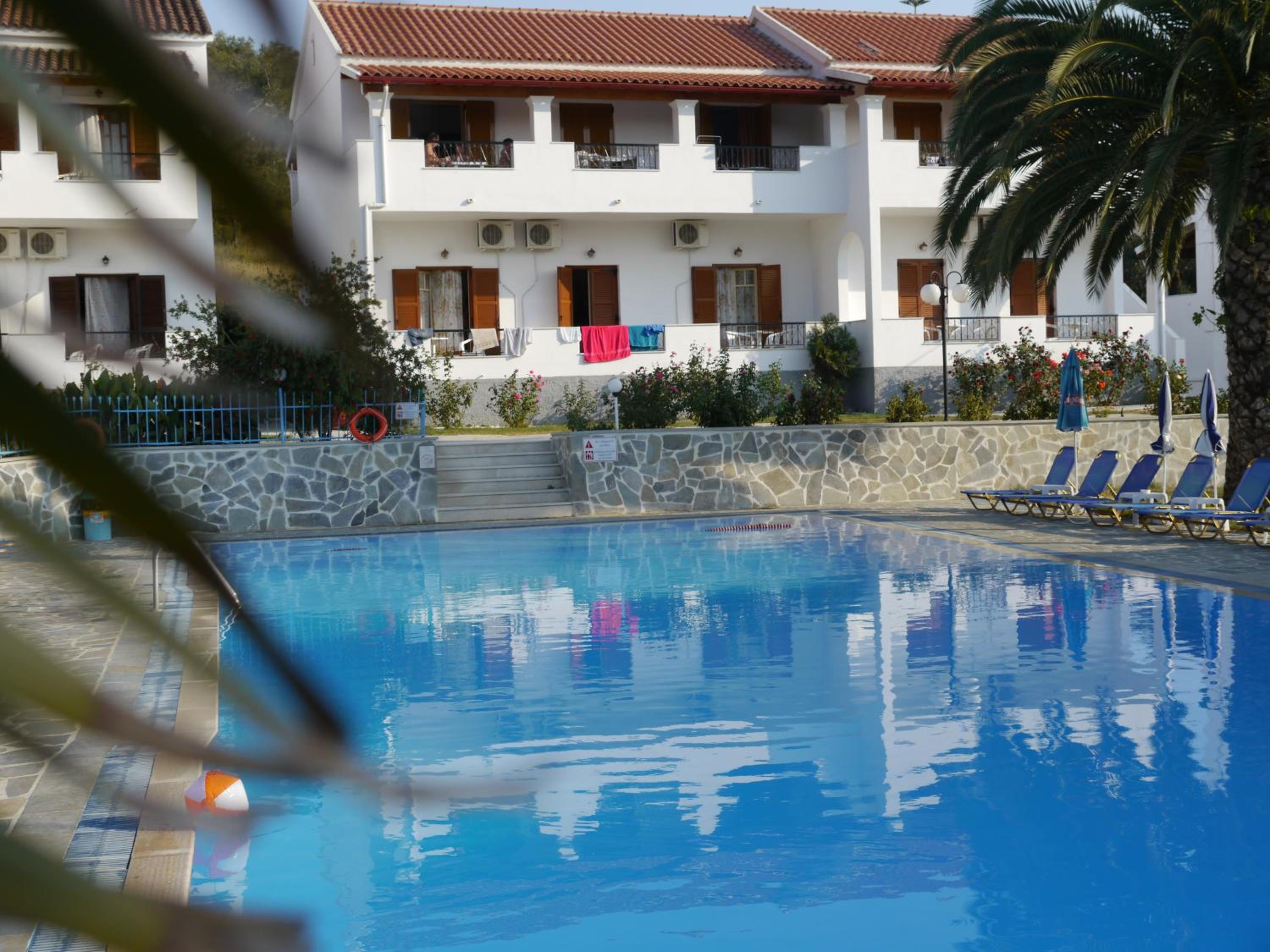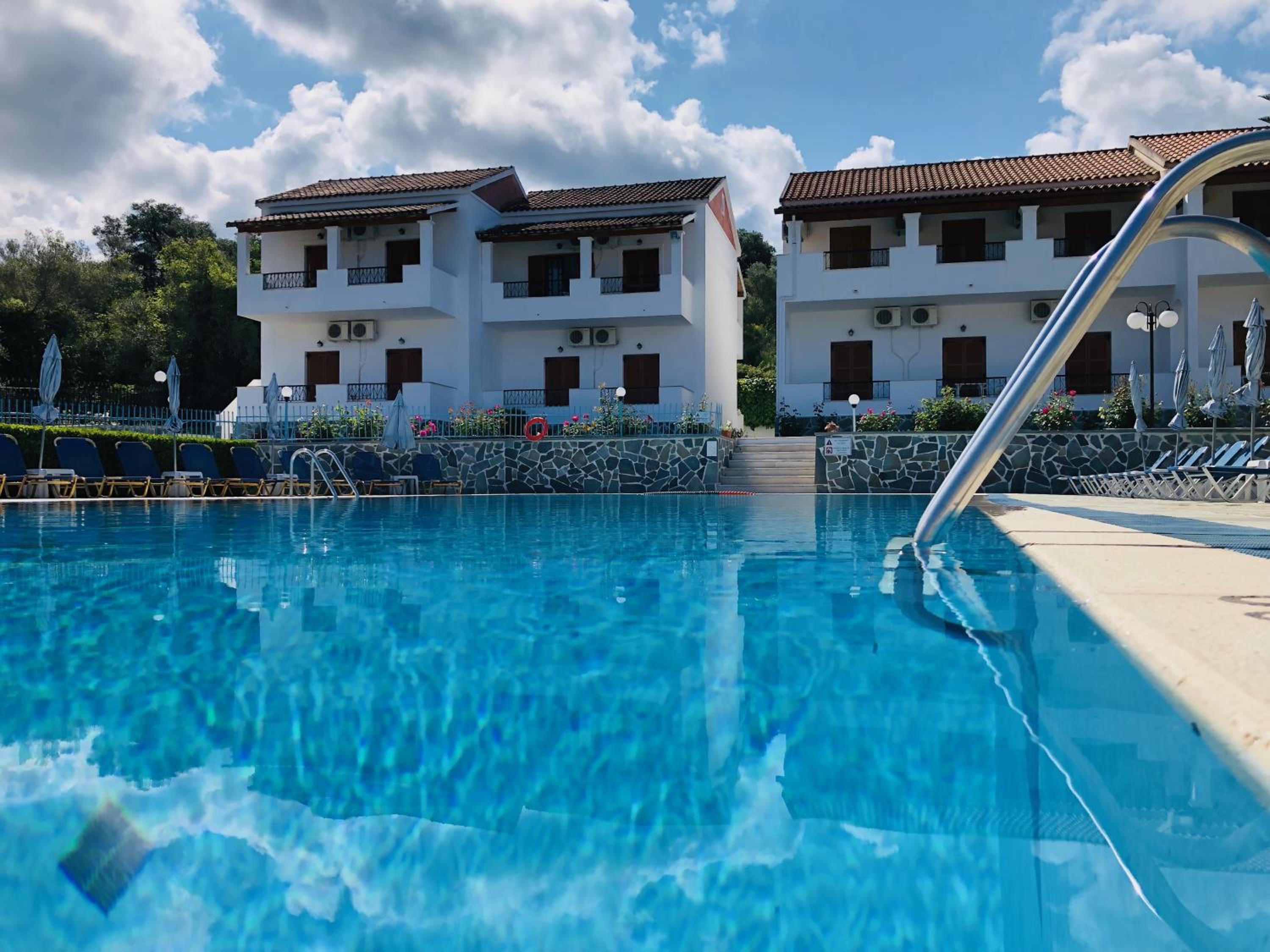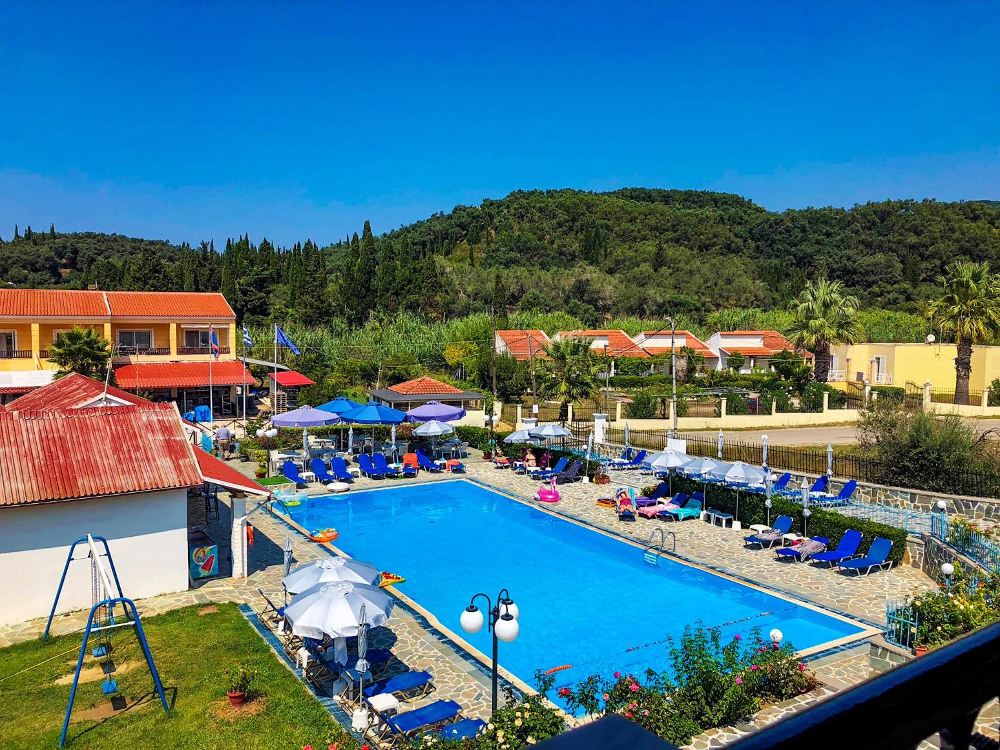 Bel emplacement avec la piscine . Pratique de pouvoir louer sur place un véhicule indispensable à Corfou mais .....