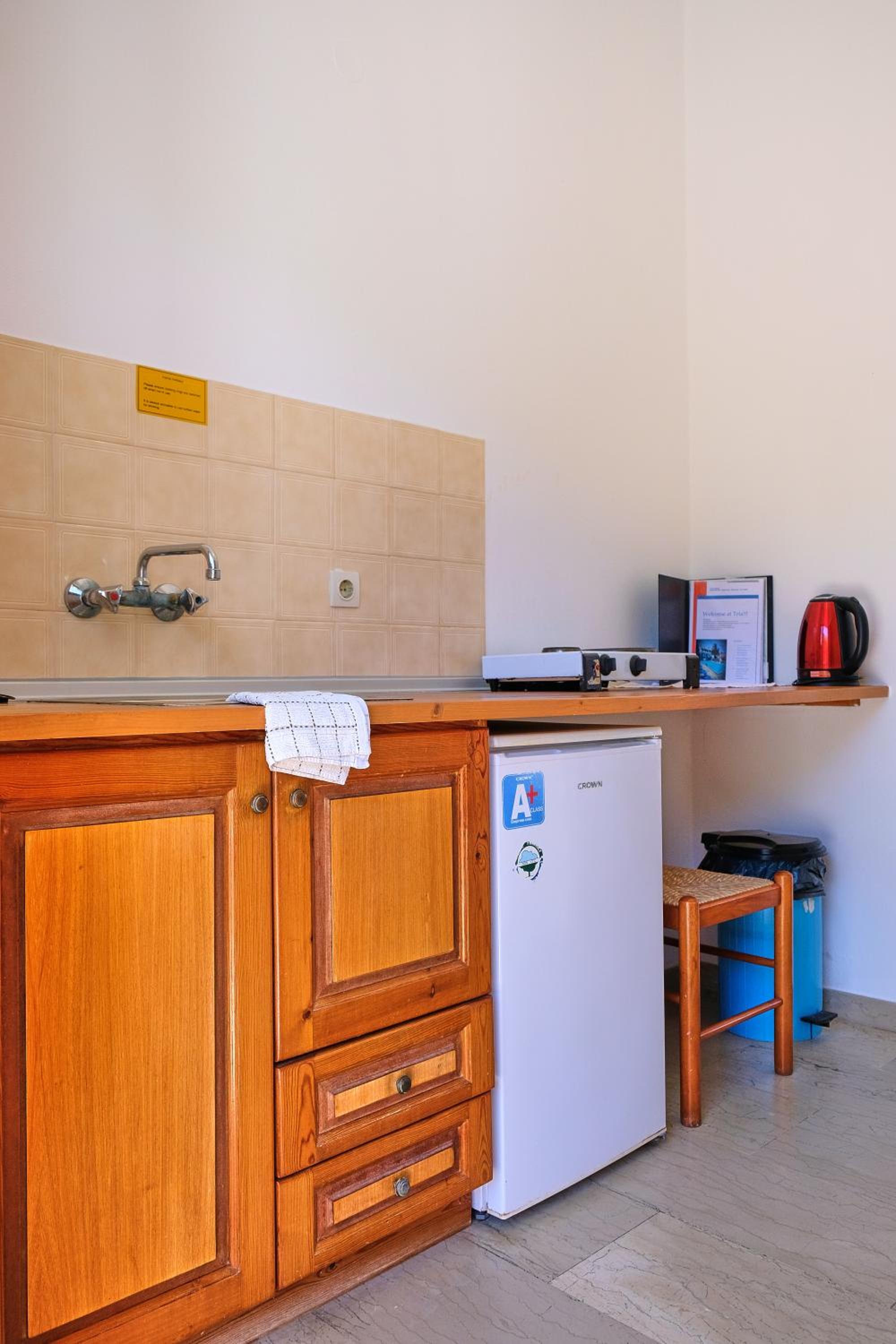 Příjemné ubytování s trochu starším vybavením, vybavení kuchyňky dostačující. Čisto. Bylo tam docela chladno, dalo se zatopit klimatizací, ale museli jsme si říct majitele. Fén na pokoji není, ale také nám ho tam půjčili. Snídaně byla fantastická a majitelé moc milí a přátelští. Celkově jsme byli velmi spokojení. Spousta místa na parkování a k moři asi 20 minut pěšky. U moře je plno restaurací, ale teď v říjnu už některé měli zavřeno. Ale i v tomto ubytování vám uvaří výbornou večeři. Bazén byl čistý.