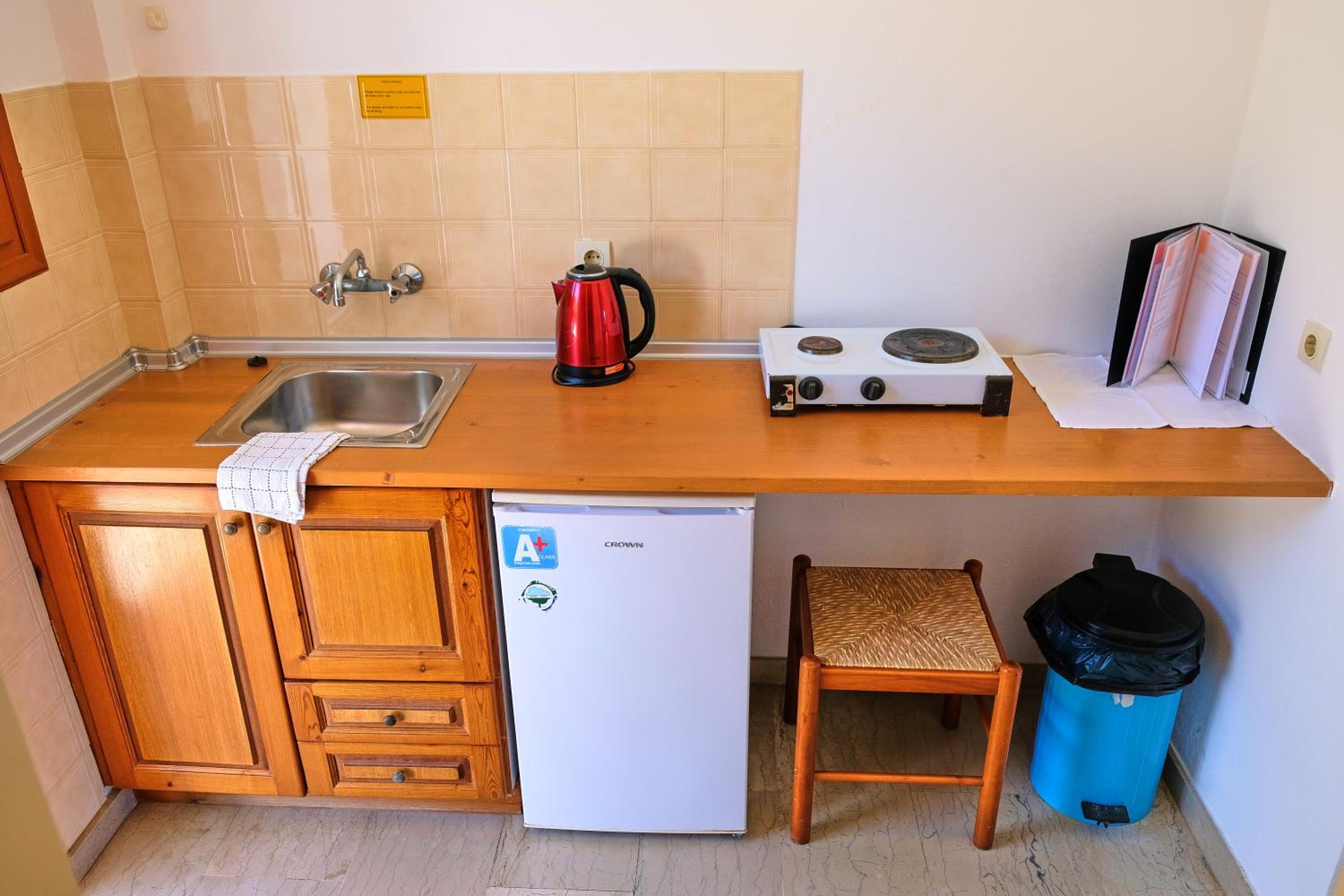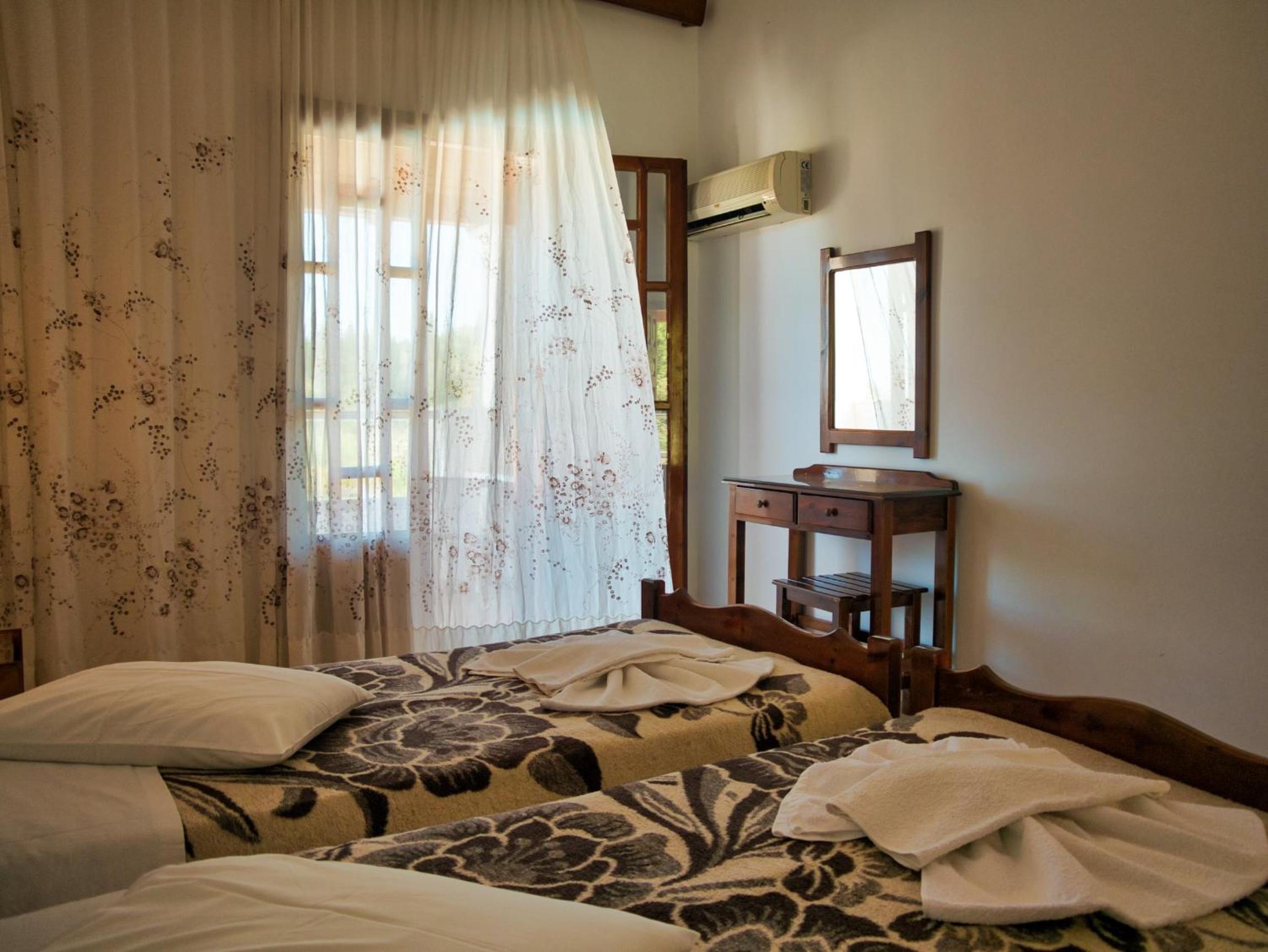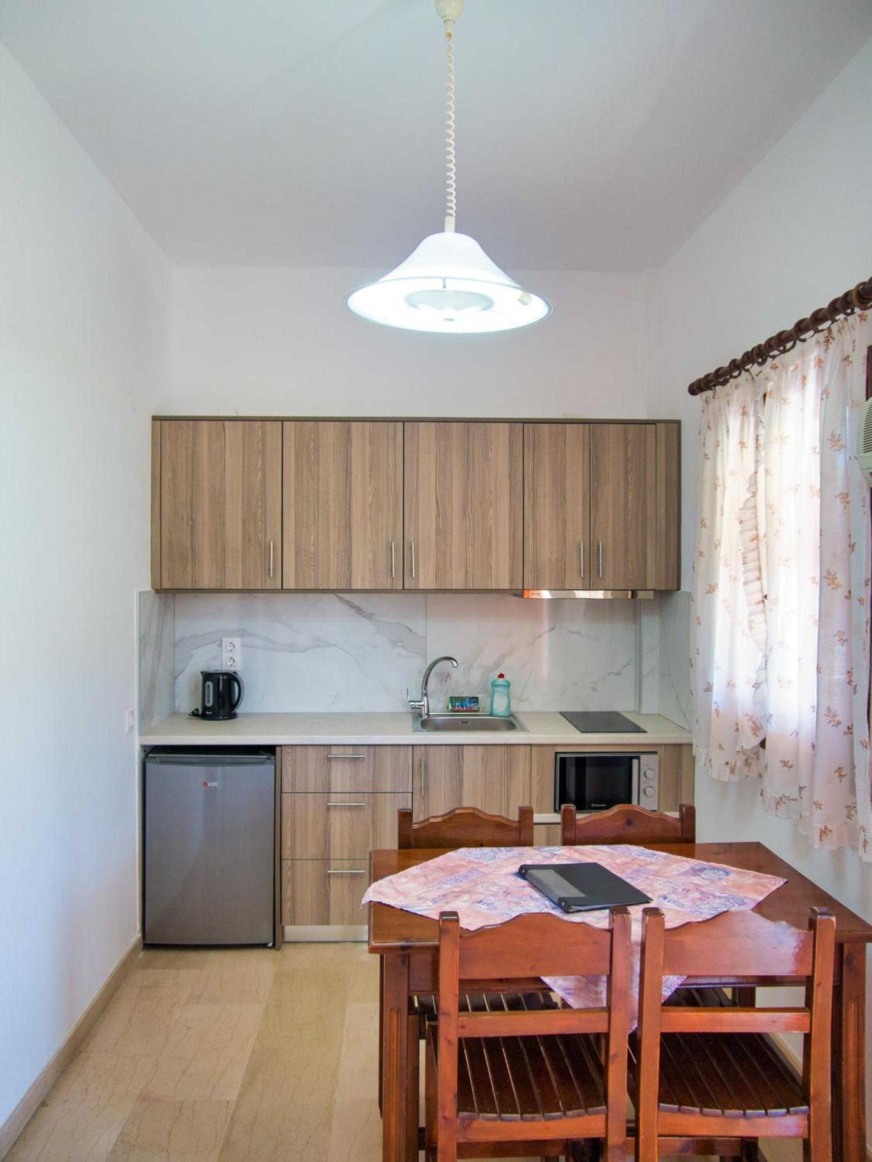 Scenic Views and Self-Catering Options: Enjoy the stunning views of olive groves from your balcony in our self-catered studios and maisonettes equipped with kitchenettes and dining areas.
