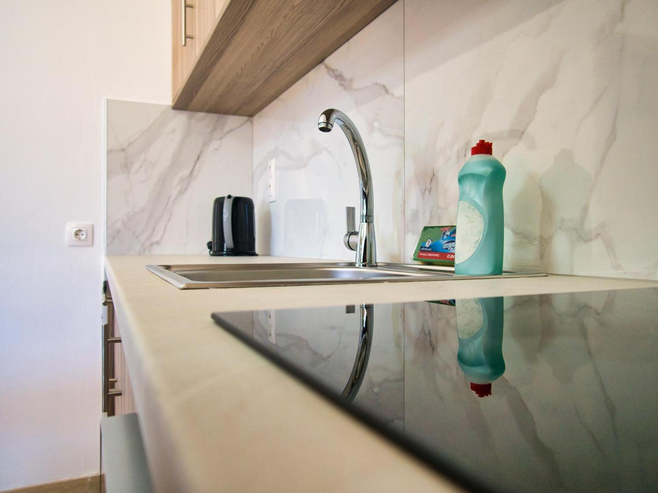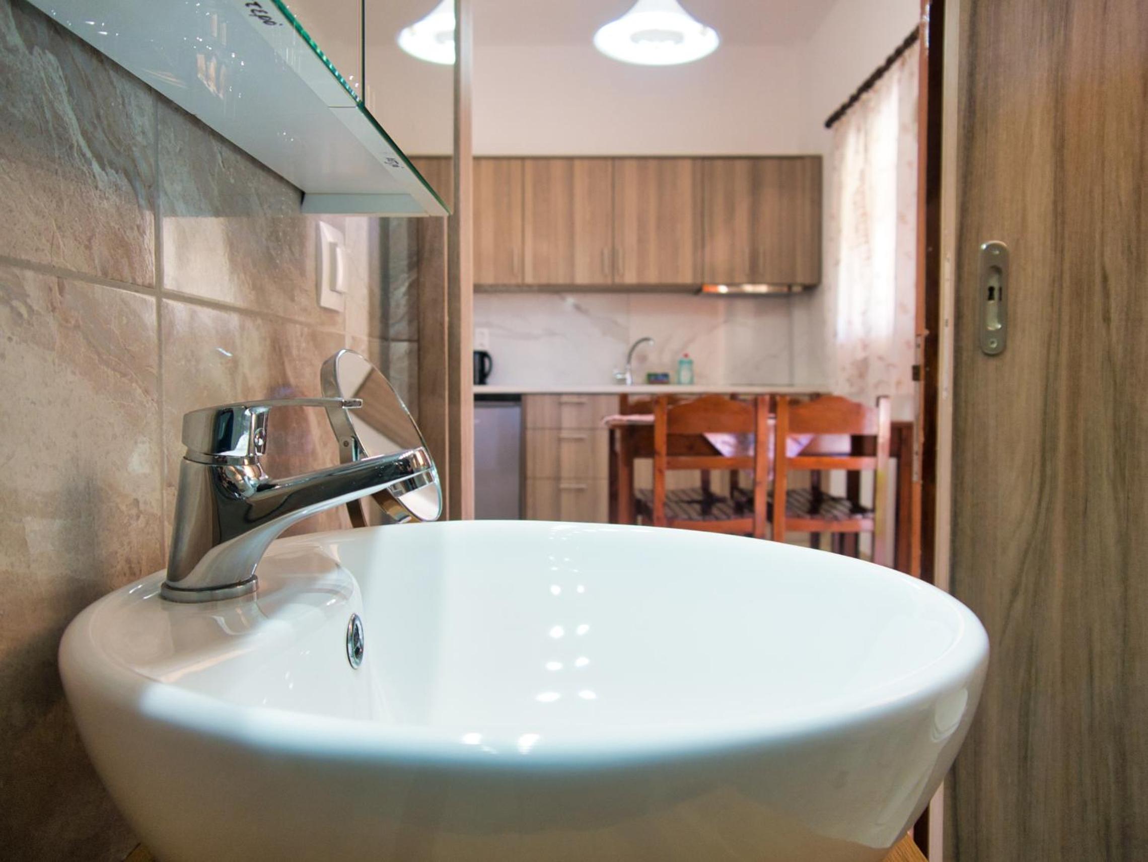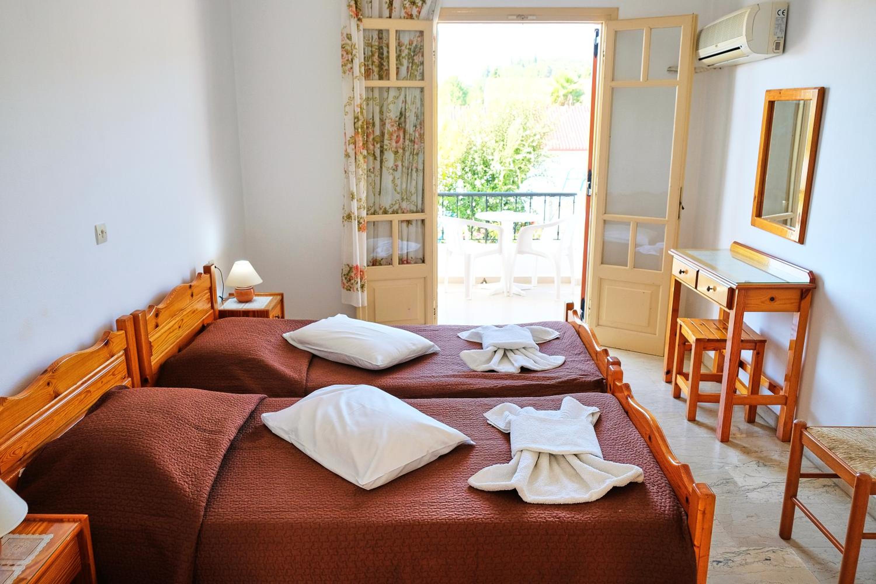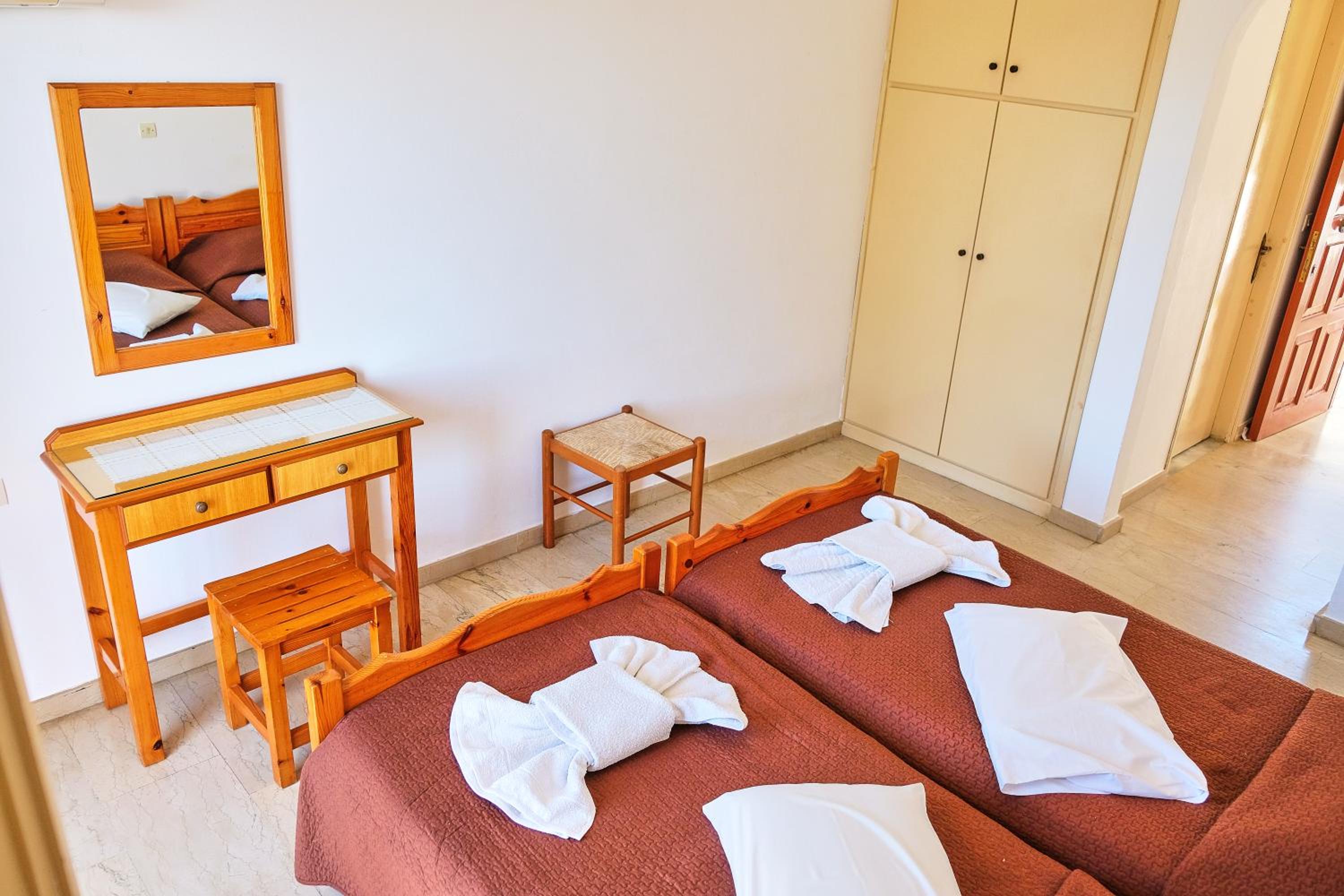Scenic Views and Self-Catering Options: Enjoy the stunning views of olive groves from your balcony in our self-catered studios and maisonettes equipped with kitchenettes and dining areas.