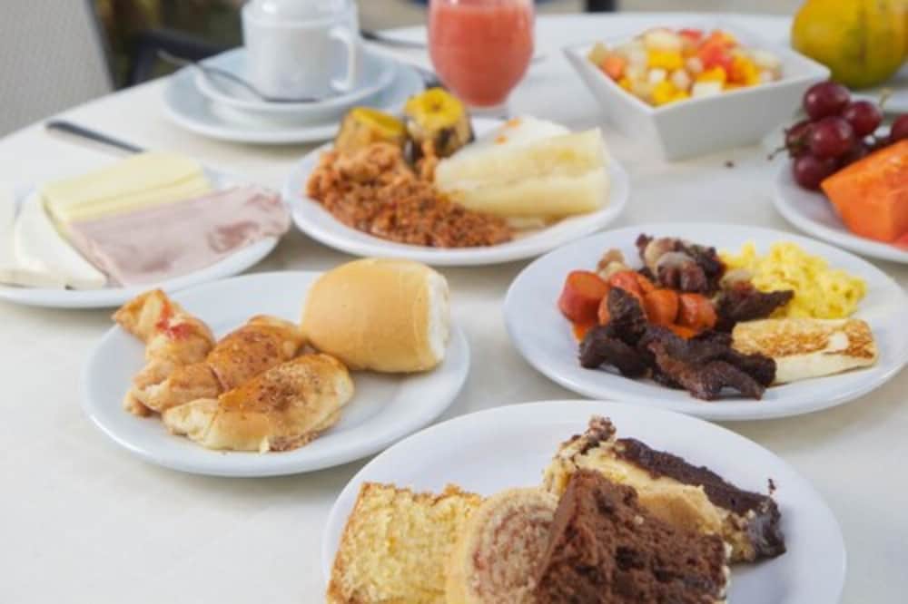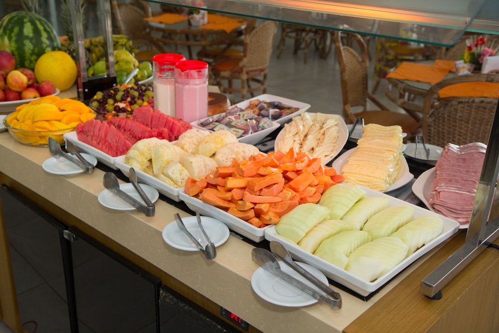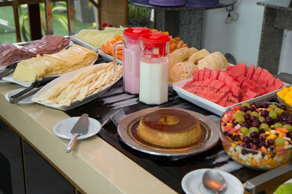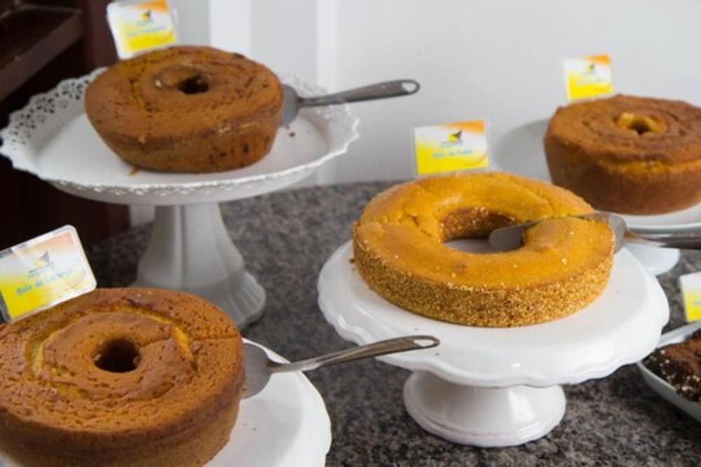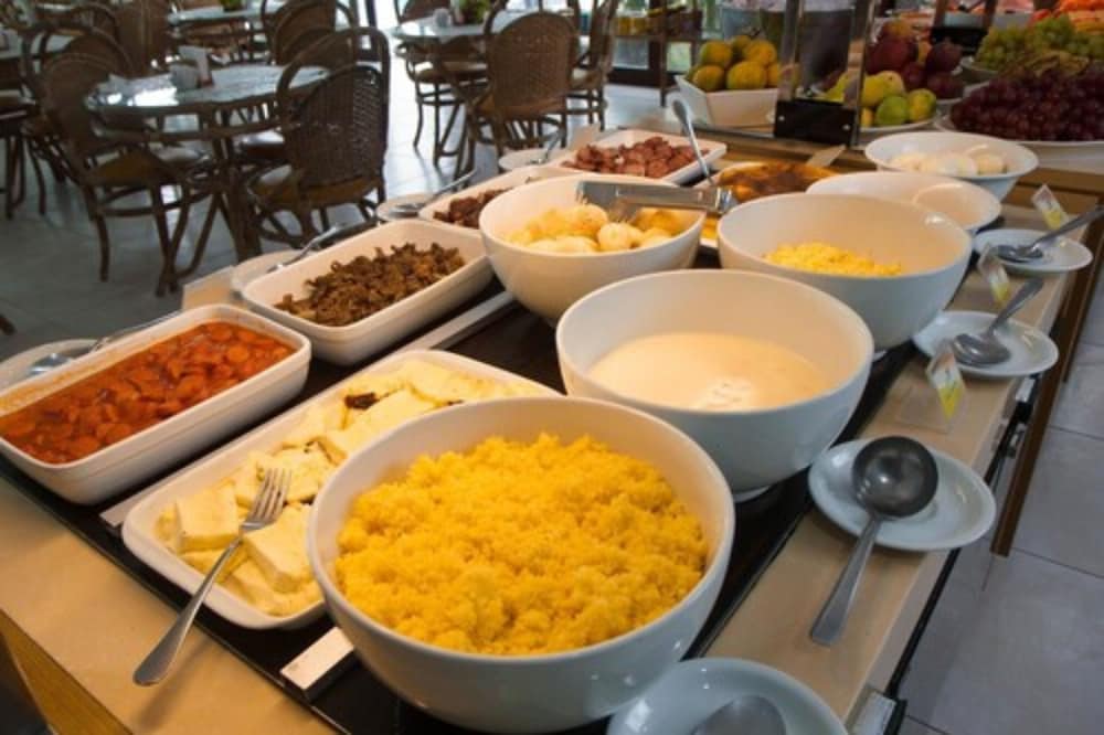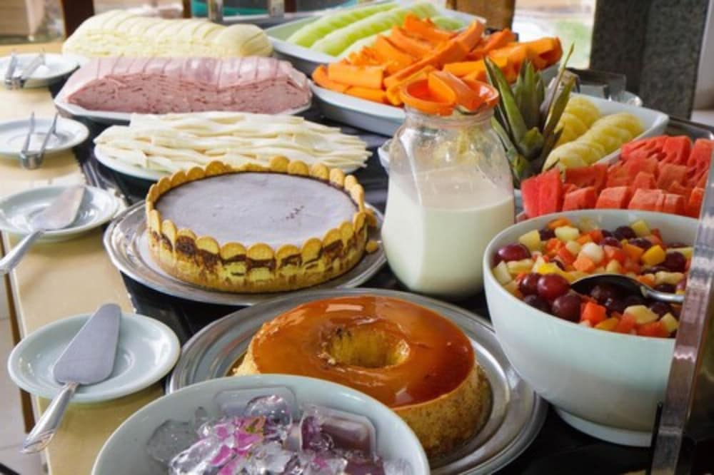 Cafe da manhã com muitas opções.