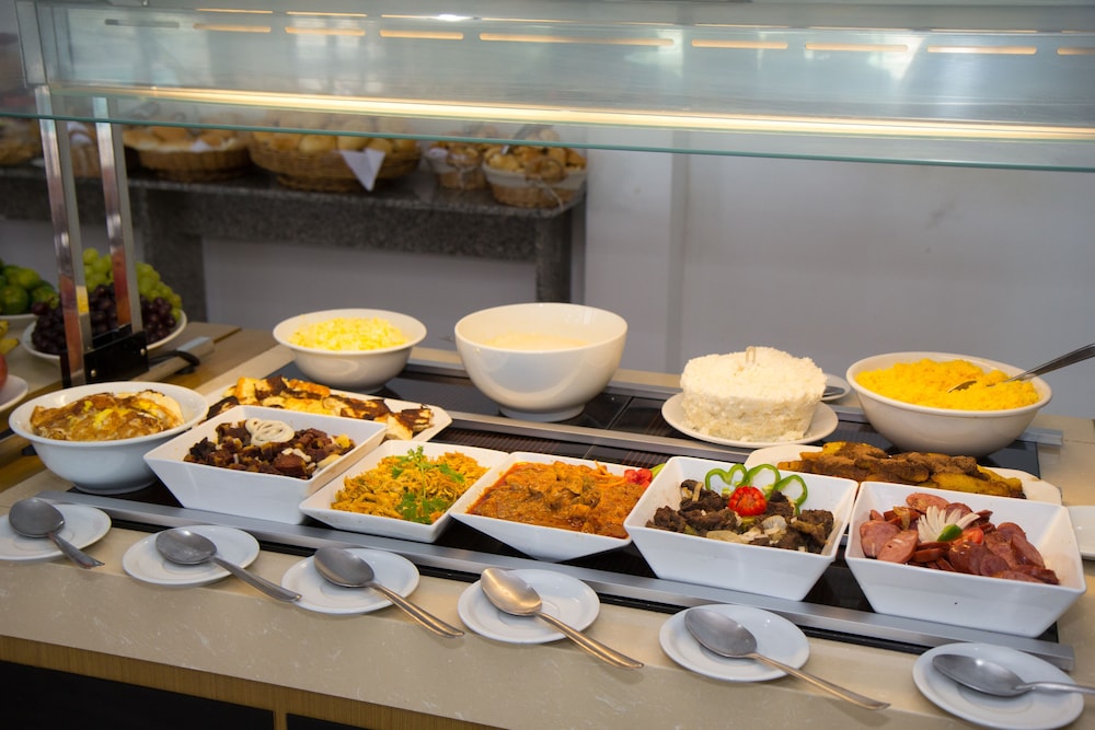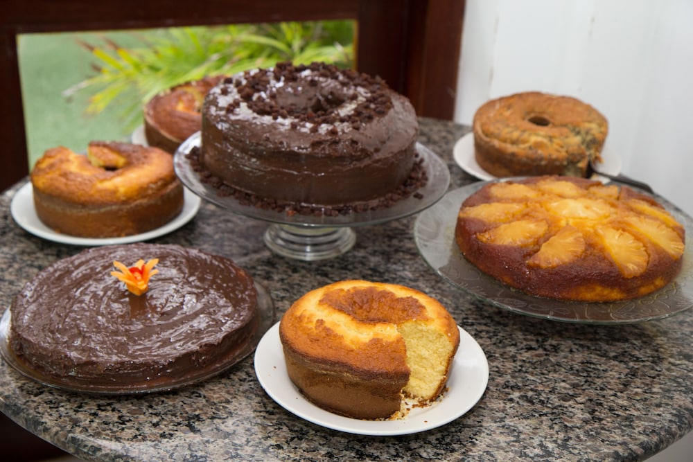 Café da manhã- perfeito, tem de tudo um pouco, doces, salgados , bolos, comidas, sucos, café, etc…