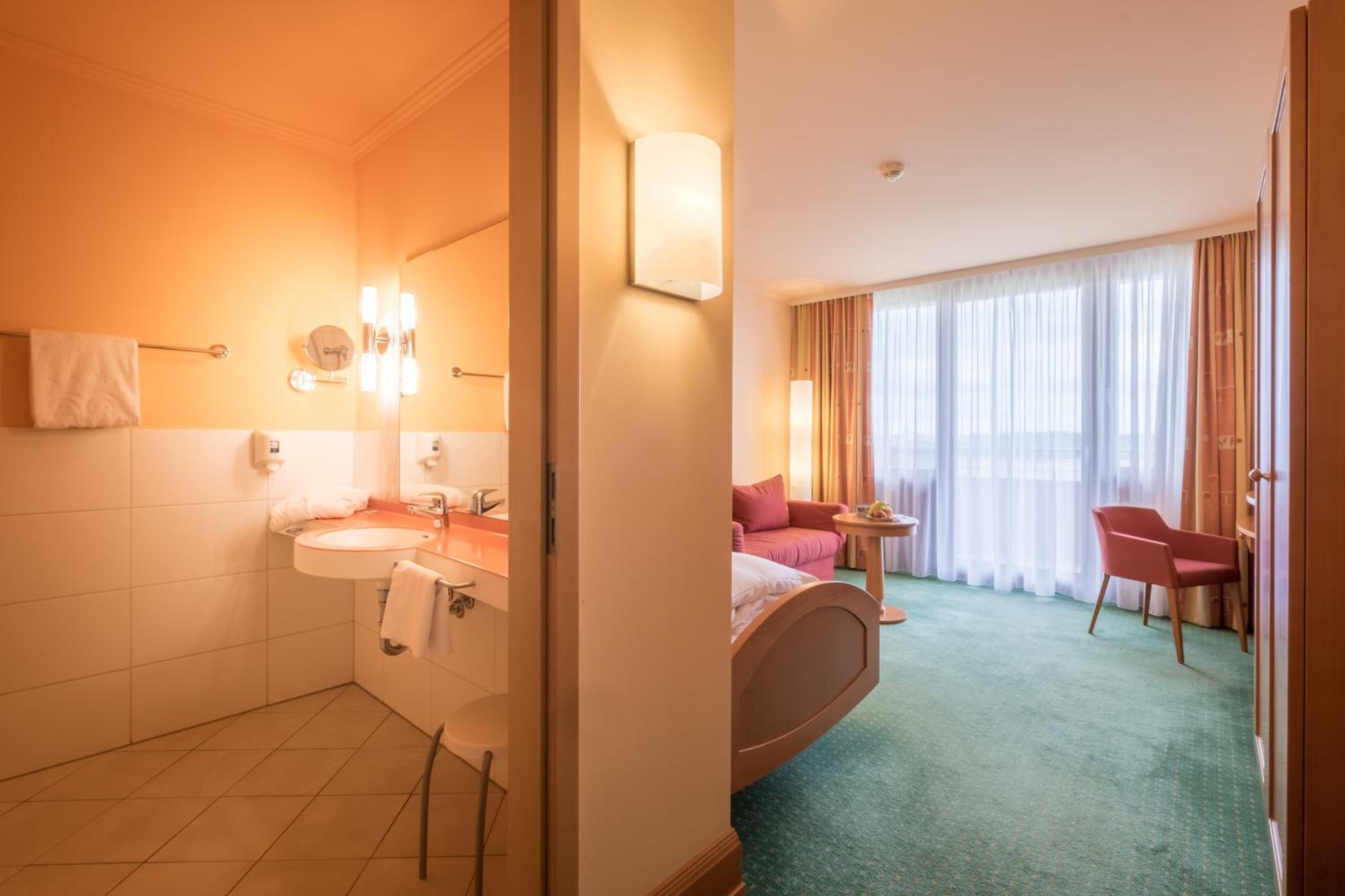 Savor delicious Franconian and international dishes at the on-site restaurant, with options for lighter, vegetarian, and low-cholesterol meals. Unwind at the café and bar, or enjoy a snack on the terrace while soaking in the sunny weather.