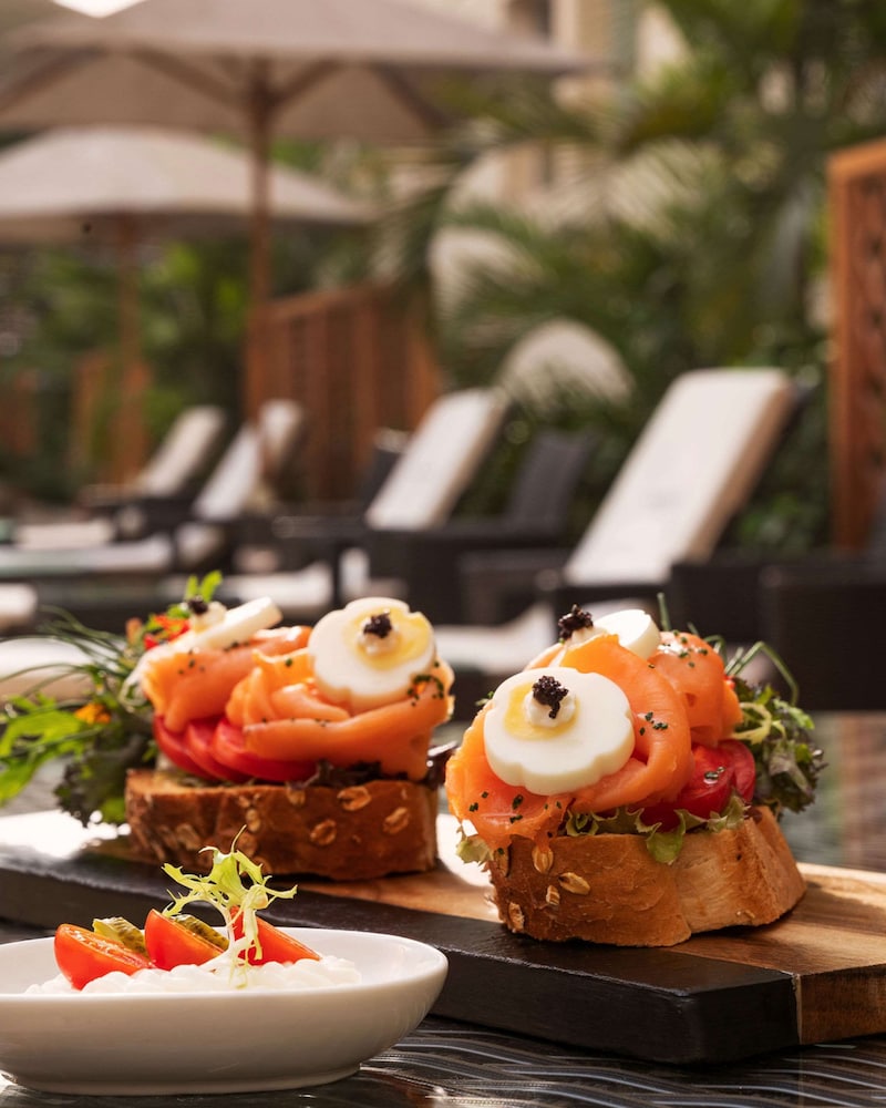Savor exquisite meals at our on-site restaurant or grab a quick snack at the coffee shop. Enjoy the convenience of 24-hour room service and sip on a drink at our chic bar or poolside bar.