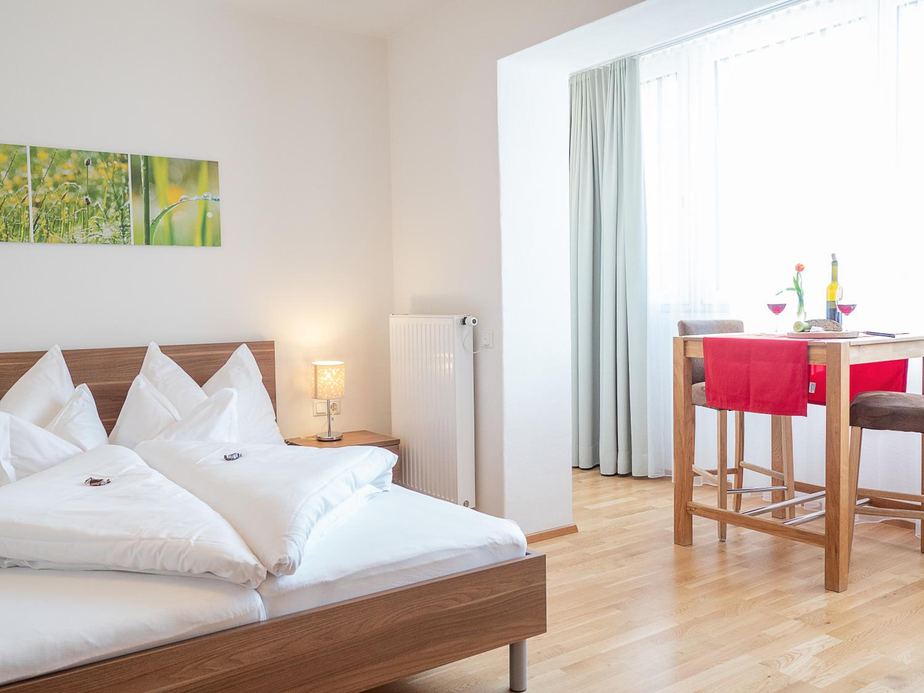 Relax on the terrace, indulge in homemade cakes at the on-site café, and make use of the barbecue facilities in the garden. Our apartments are equipped with everything you need for a comfortable stay, including a kitchenette and flat-screen TV.