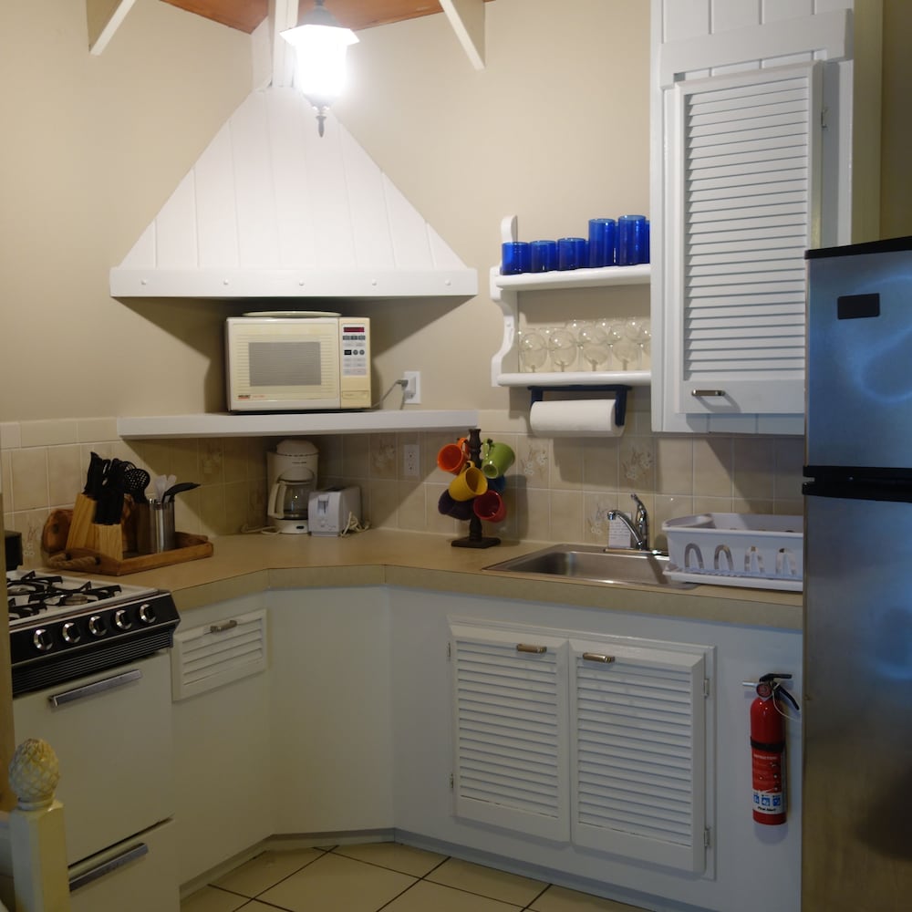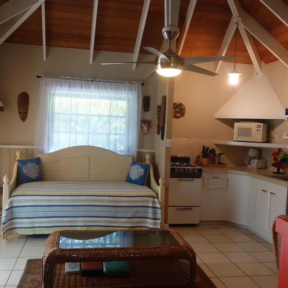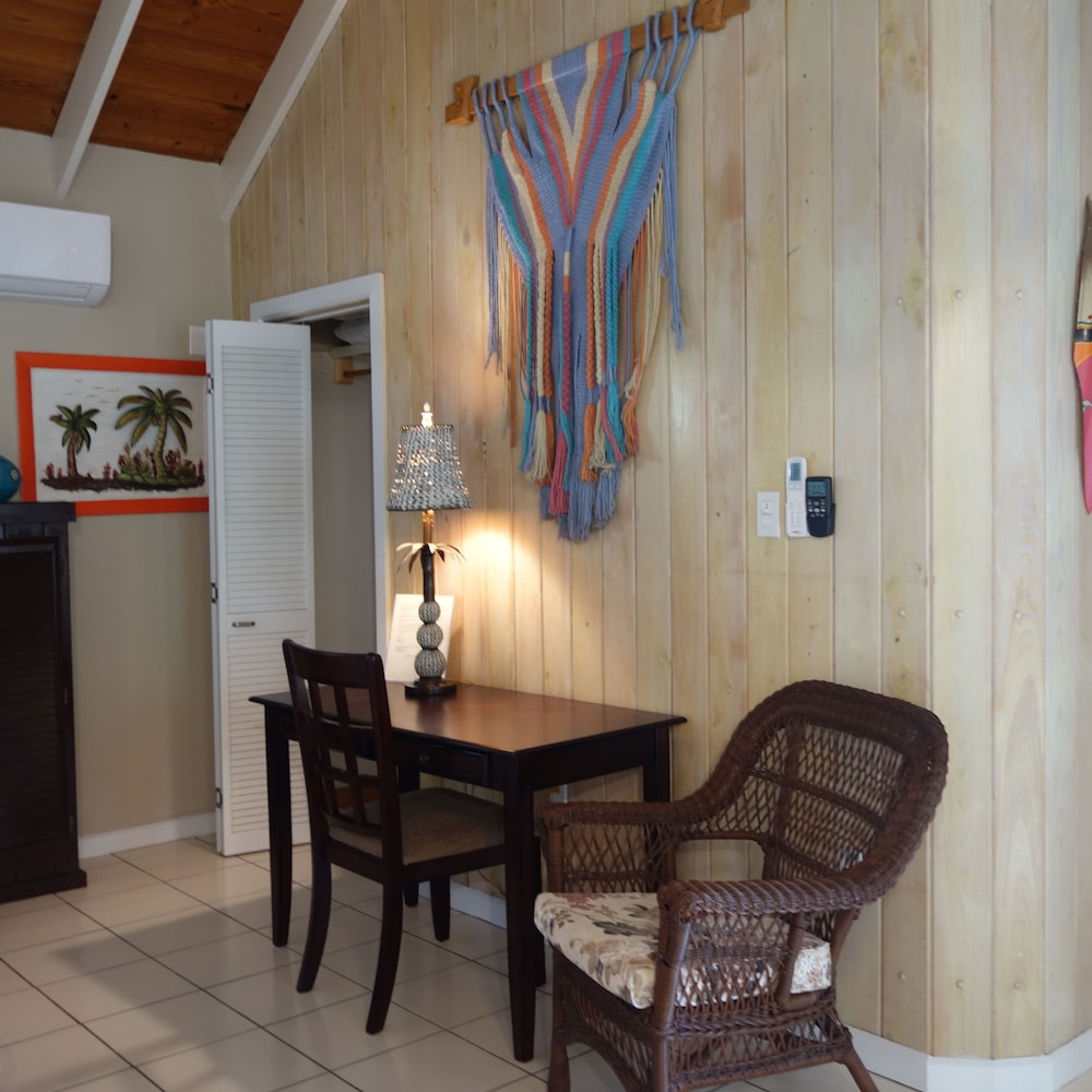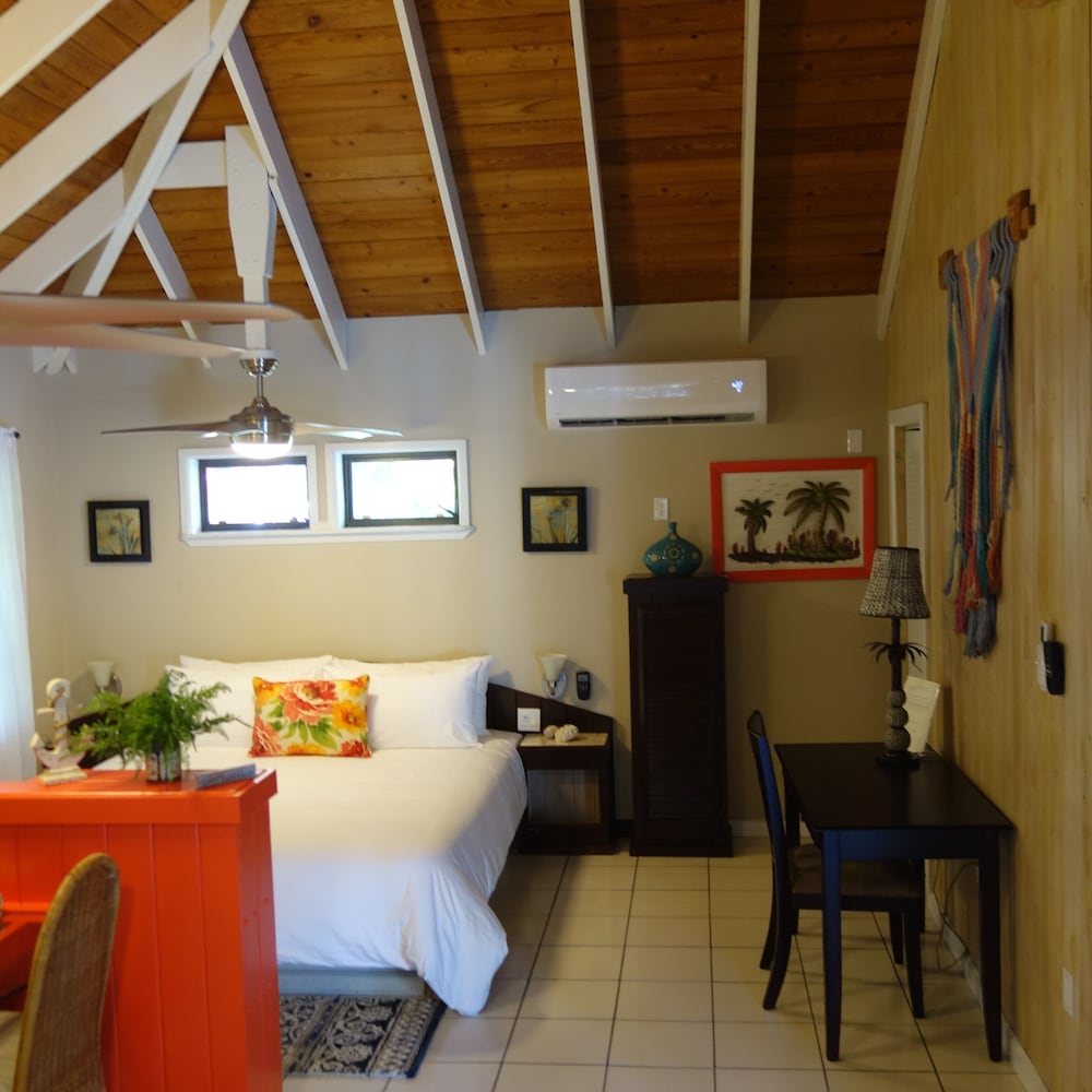 This was an absolute gorgeous Villa, we stayed in studio 2 and really enjoyed it. The beach is 2 min away and within 5 min you are downtown and have dining an shopping options. The studio offered beach chairs, and an umbrella. While you don’t need it for grave bay beach (they have beach chairs) we used them for the other beaches we went to. We would definitely rent this gem again.