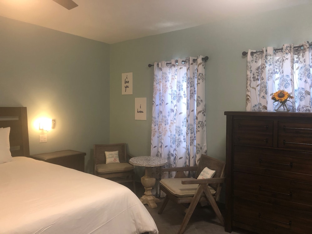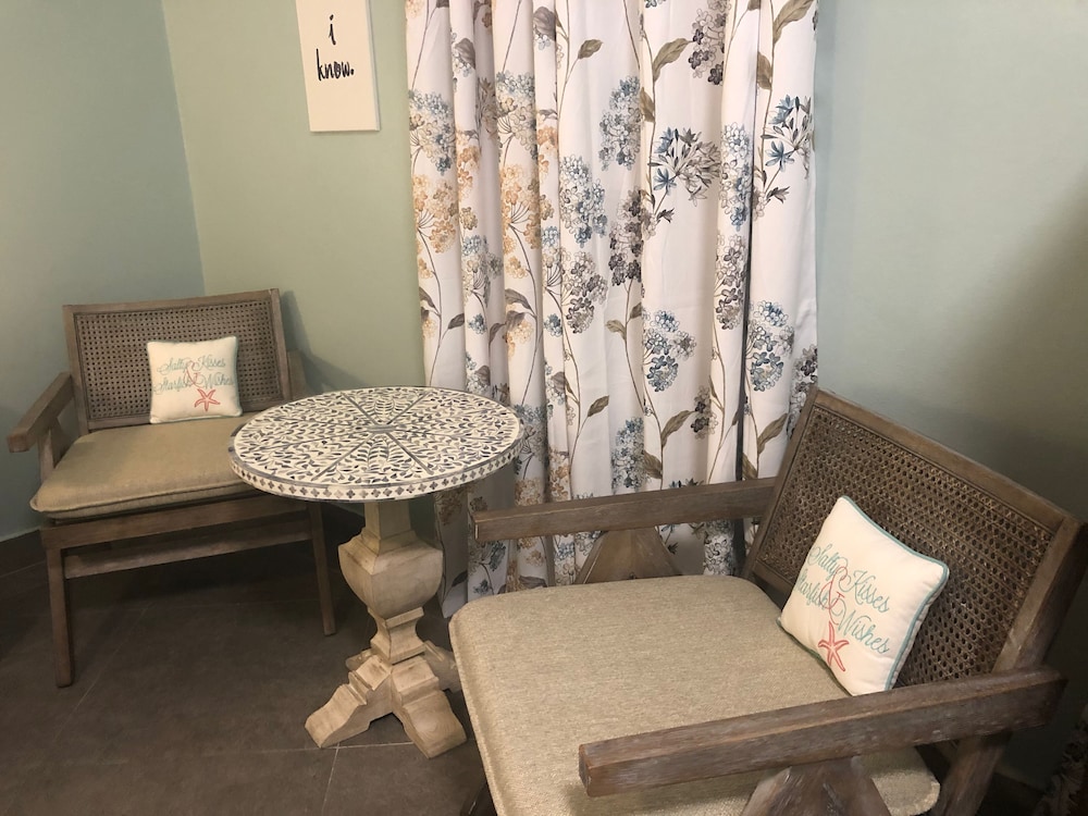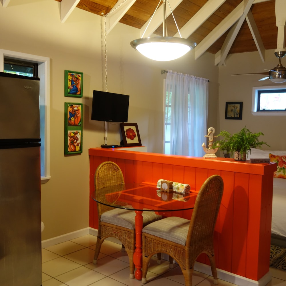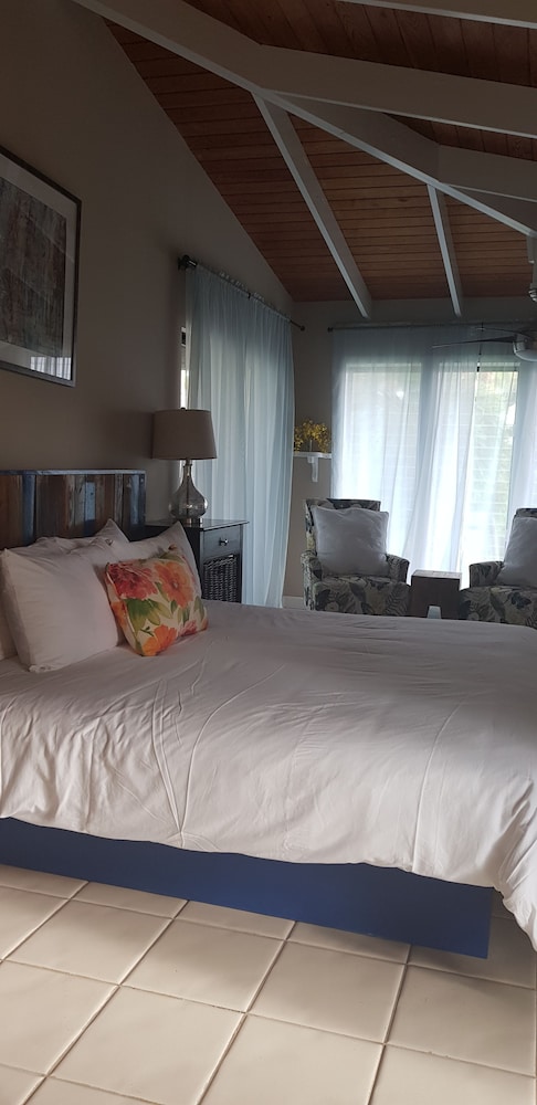 This was an absolute gorgeous Villa, we stayed in studio 2 and really enjoyed it. The beach is 2 min away and within 5 min you are downtown and have dining an shopping options. The studio offered beach chairs, and an umbrella. While you don’t need it for grave bay beach (they have beach chairs) we used them for the other beaches we went to. We would definitely rent this gem again.