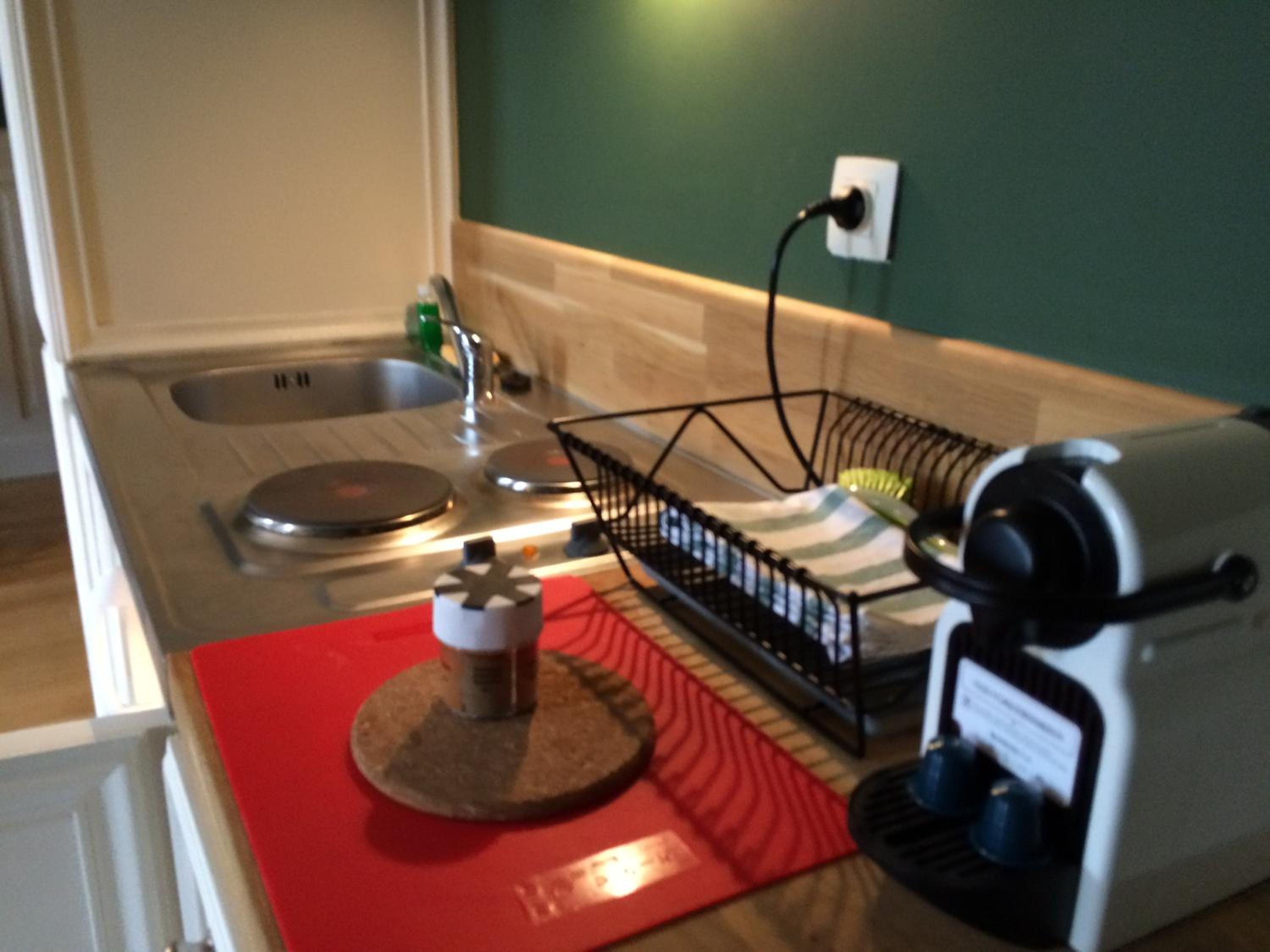 Studio spacieux, avec des canapés confortables, une télévision et une kitchenette avec tout ce qu'il faut pour réchauffer des plats traiteur et même pour cuisiner.