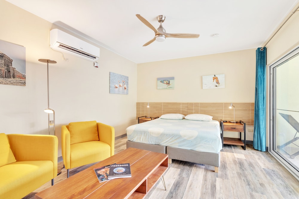 For a relaxing seaside getaway with convenient amenities, book your stay at this Kralendijk aparthotel near No Name Beach!