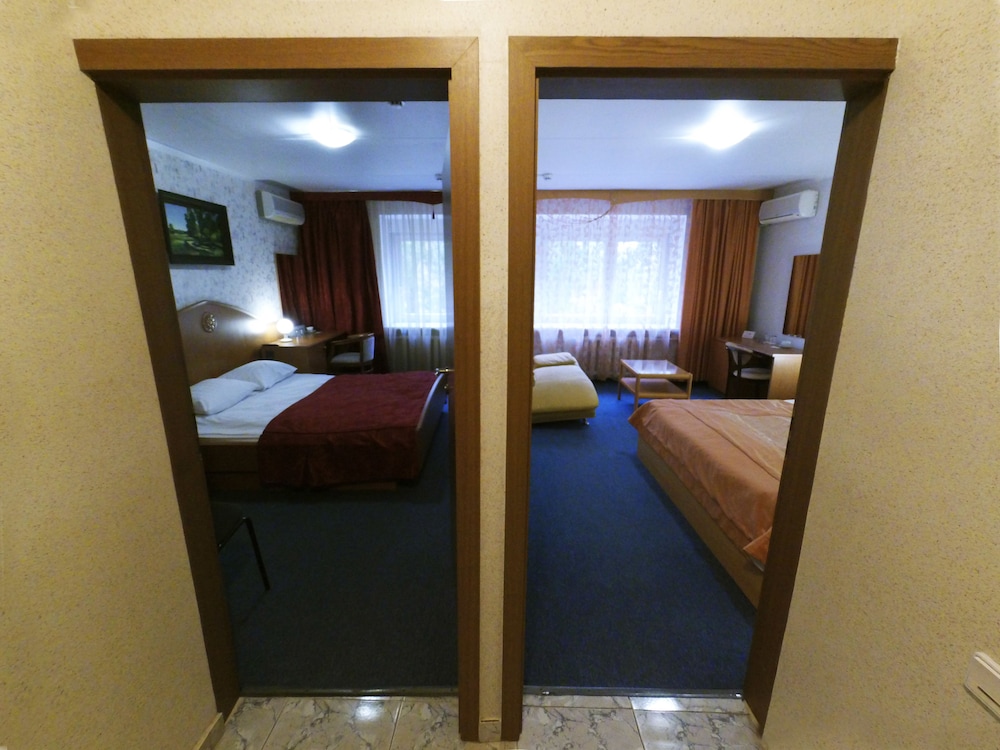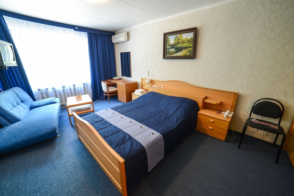 Albergo di stampo sovietico.ristrutturato in una parte e in un'altra ancora da rivedere. La ristrutturazione comunque È nelle zone comuni perché ho visto le camere ristrutturate e non sono diverse da quella che sto per descrivere, se avete stomaco. Entro nella stanza e in realæ è un appartamentino ingresso e due camere, bagno e WC separato. Moquette consumata che puzza di fumo e brodo... credevo di abituarmi ma mi è rimasto l'odore nel naso per una giornata. Piastrelle rotte a terra nei bagni e nella doccia sostituite le rotte con colori diversi alla buona. La paratia della doccia, in plastica, ę probabilmente saltata qualche volte e ci sono le stoccate di silicone a strati dati a manate... alcune tubature sono a vista. Ho poi capito da dove arrivava quell'insetto che girava sul mobile tv... o dai tuvi o da un ventilatore maleassestato alla finestra. Materasso sfondato, ma questo in Russia purtroppo capita. Colazione assortita e inservienti talvolta gentili. Consiglio di non soggiornare qui, almeno nell' ala non ristrutturata.