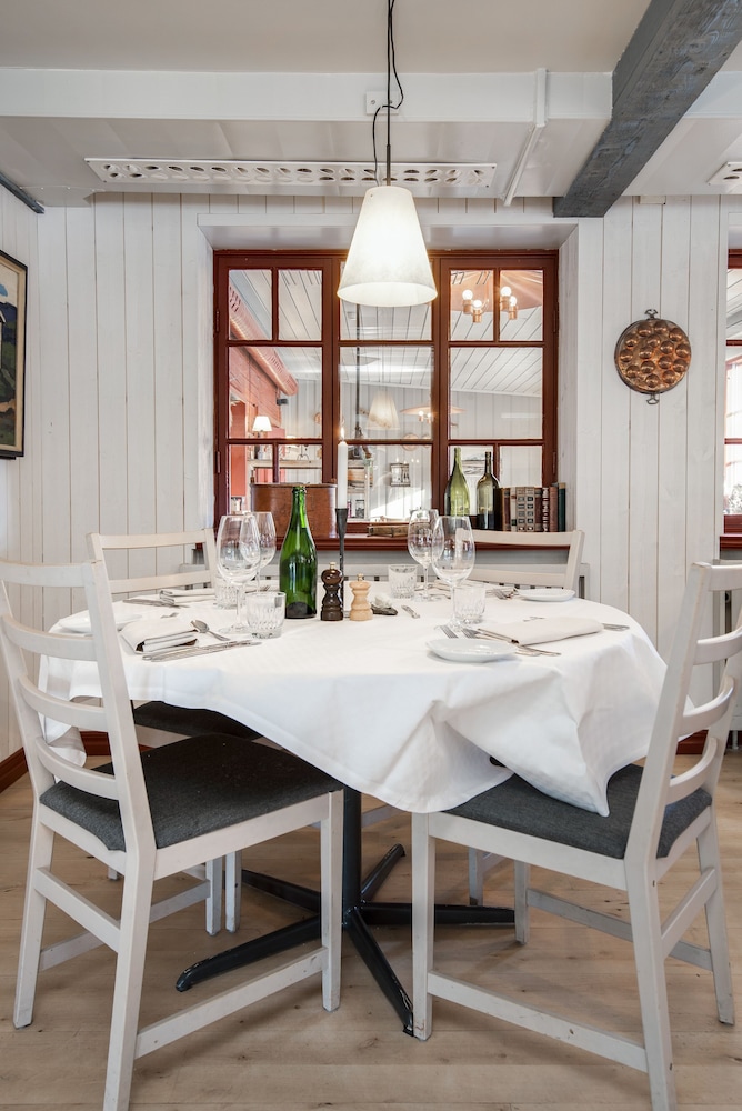 Gammalt och genuint, härlig historia, en tänd brasa i sällskapsrummet på morgonen förhöjer stämningen, underbara sängar och skönaste lakanen, jättegod mat i restaurangen!