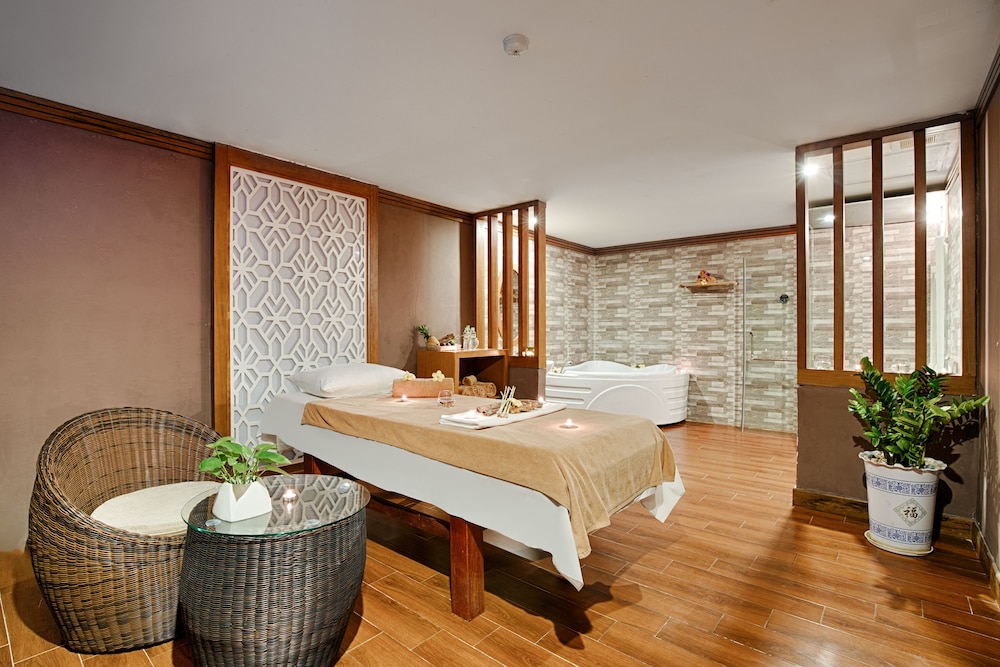 Dine at An Hai for international cuisine or enjoy a drink at the poolside bar.