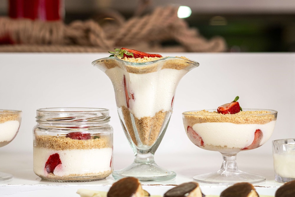 The main buffet food had a variety of choices for salads, meats, breads, drinks desserts and more despite the Christmas season. The waiters worked incredibly hard making sure all the guests were happy. They were very quick to make sure tables were always cleaned and available for guests. They worked long hours but always had a warm smile on their faces.
