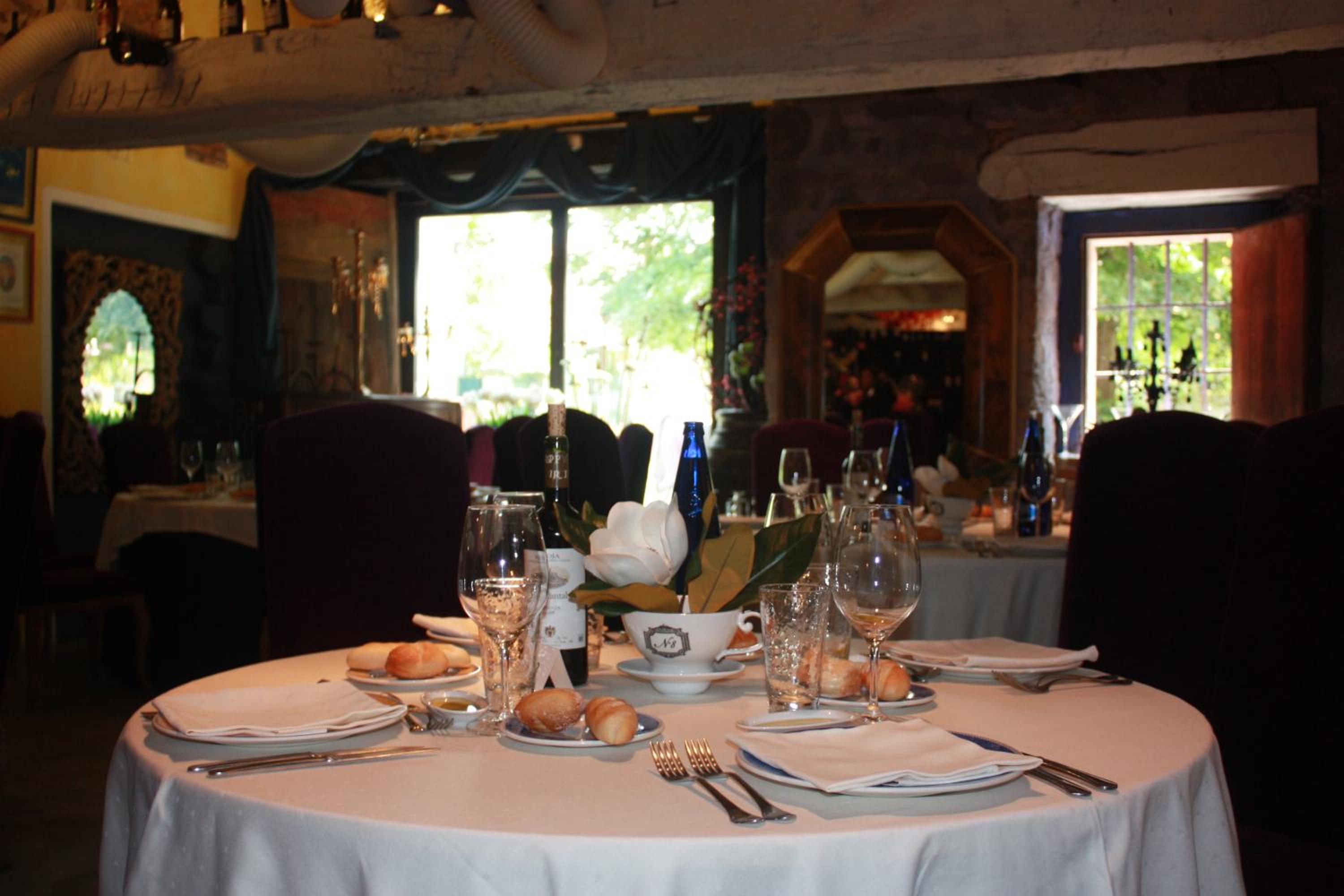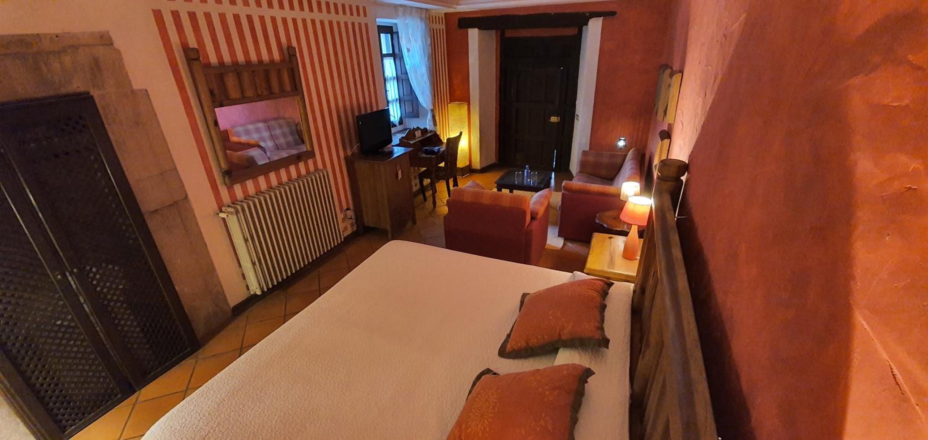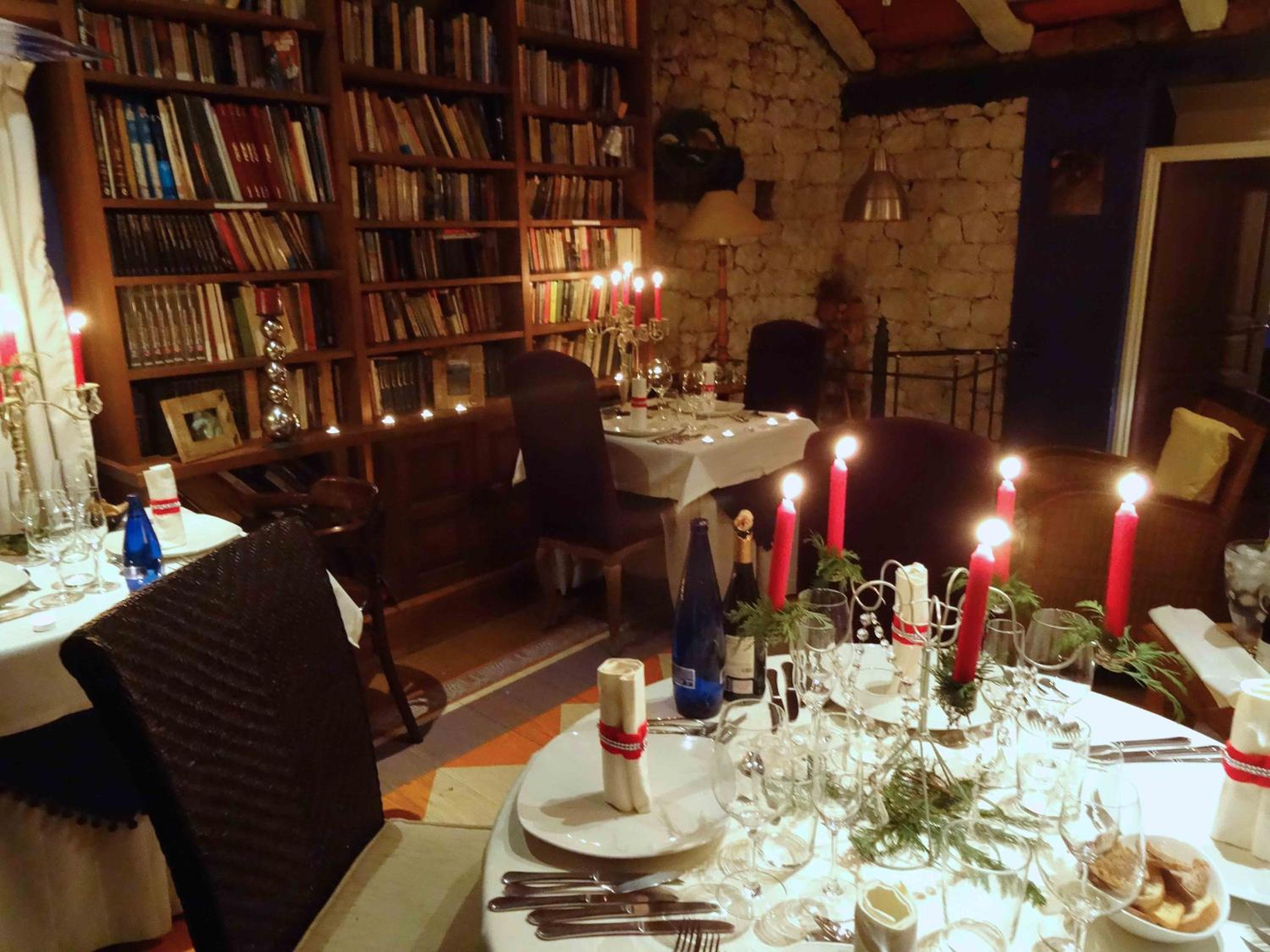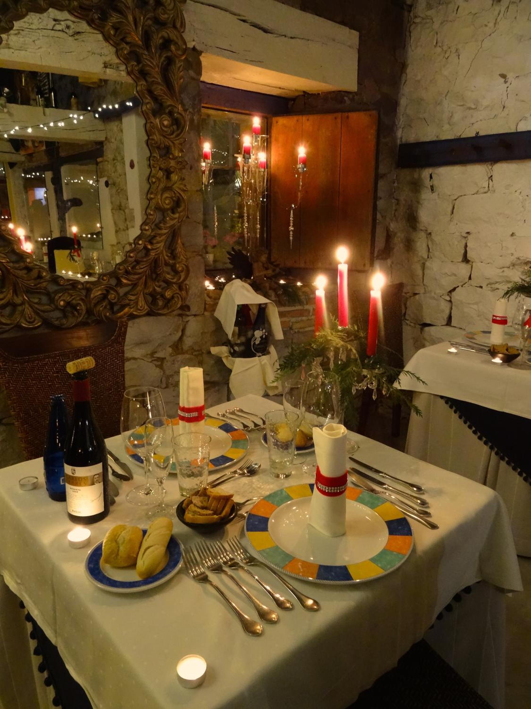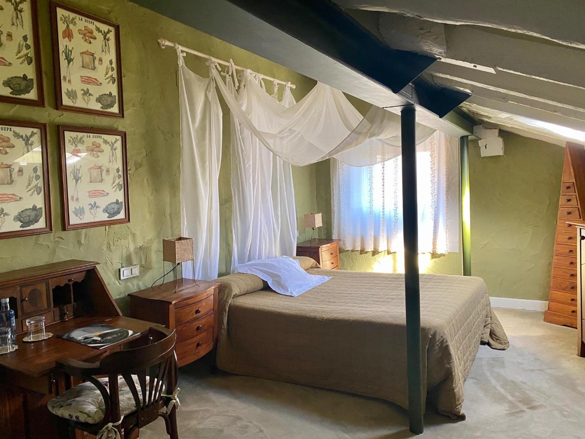 Cenamos en la habitacion una tablas de cecina y quesos muy ricos con un vino, pues llegamos tarde y ya cerraban la cocina pero fué muy agradable porque la habitación invita a ello.