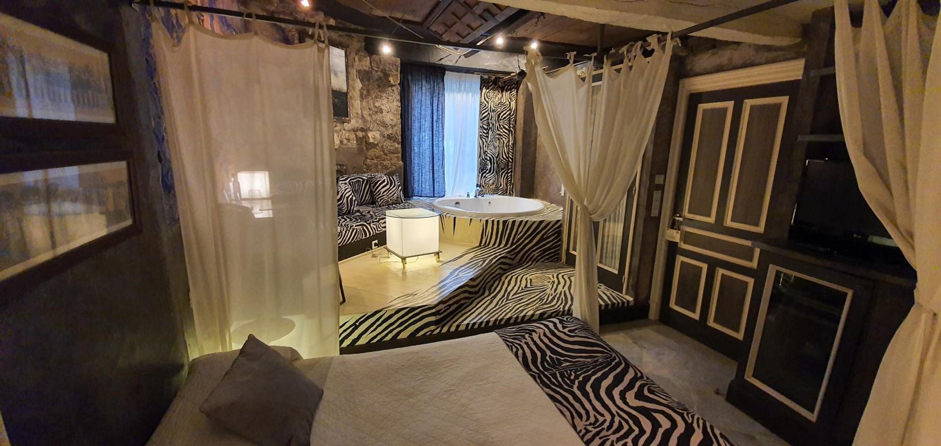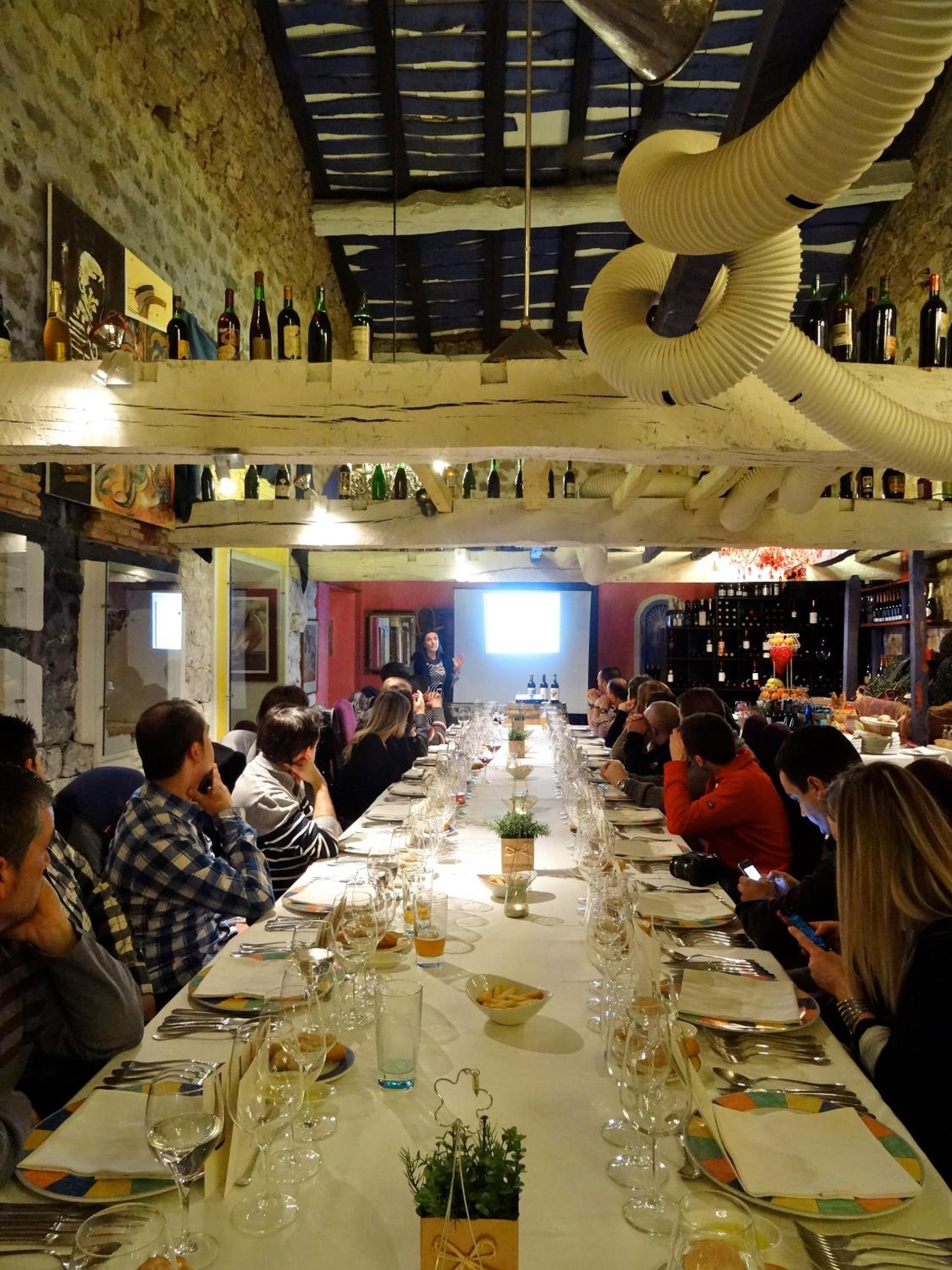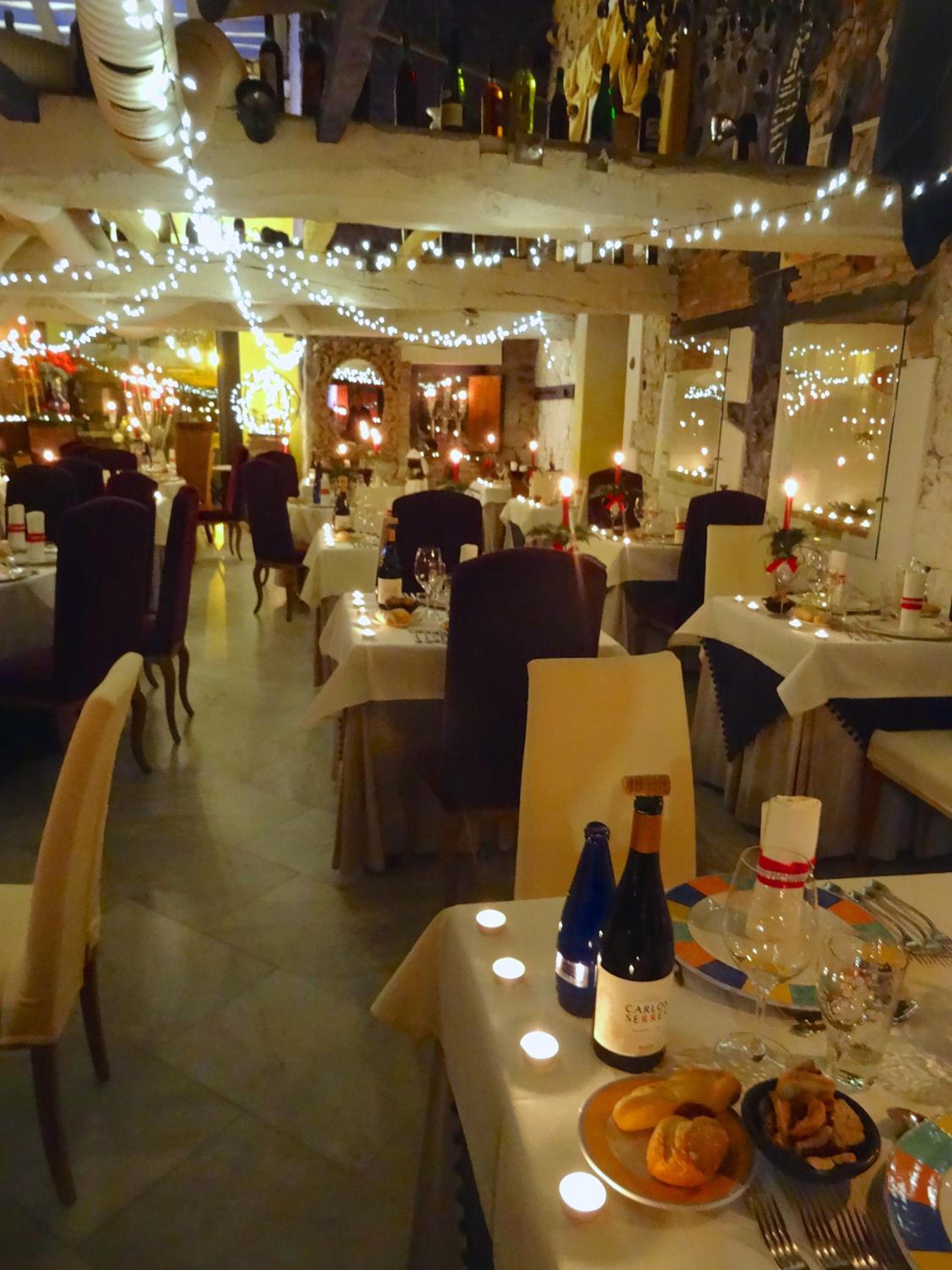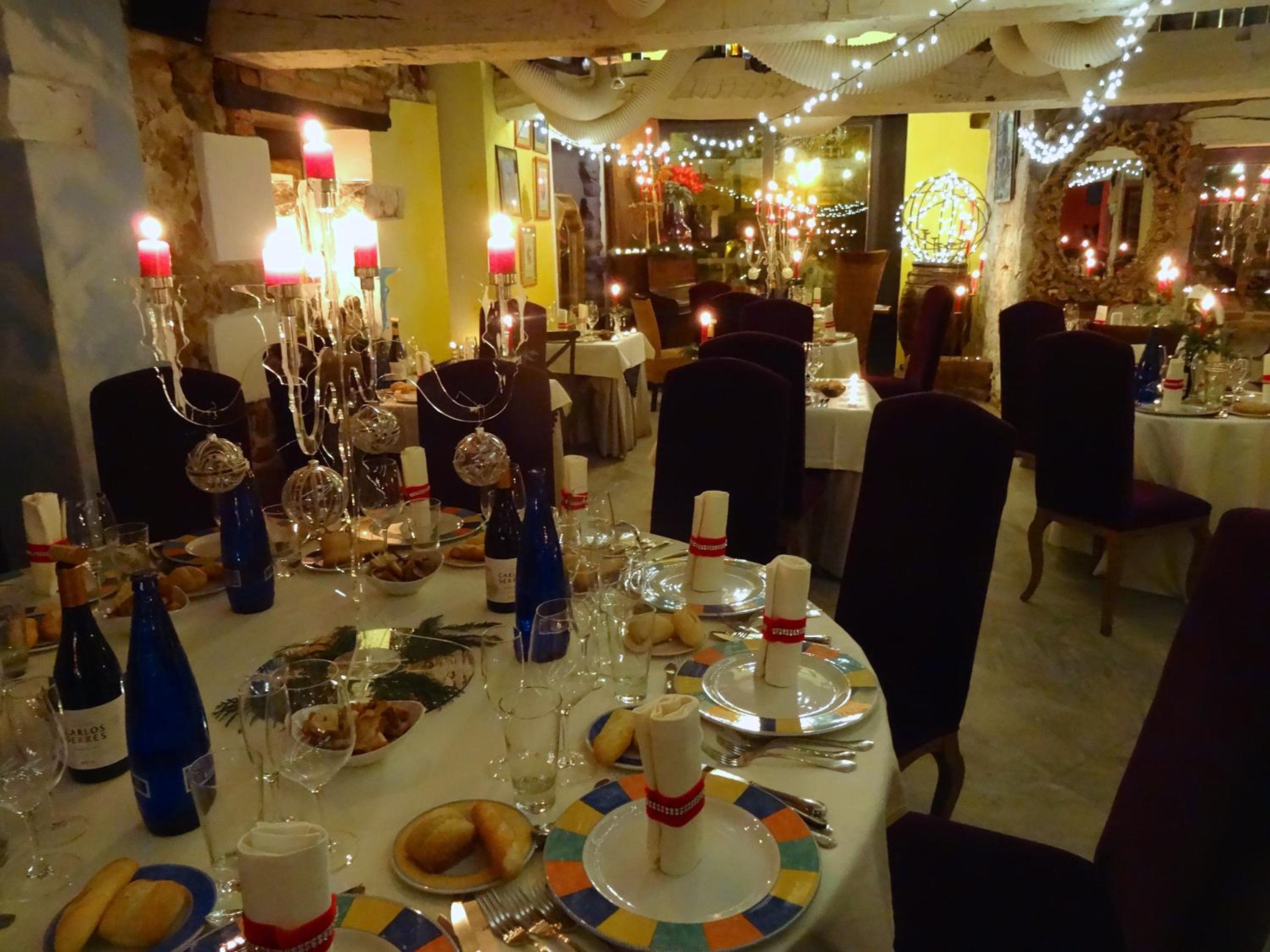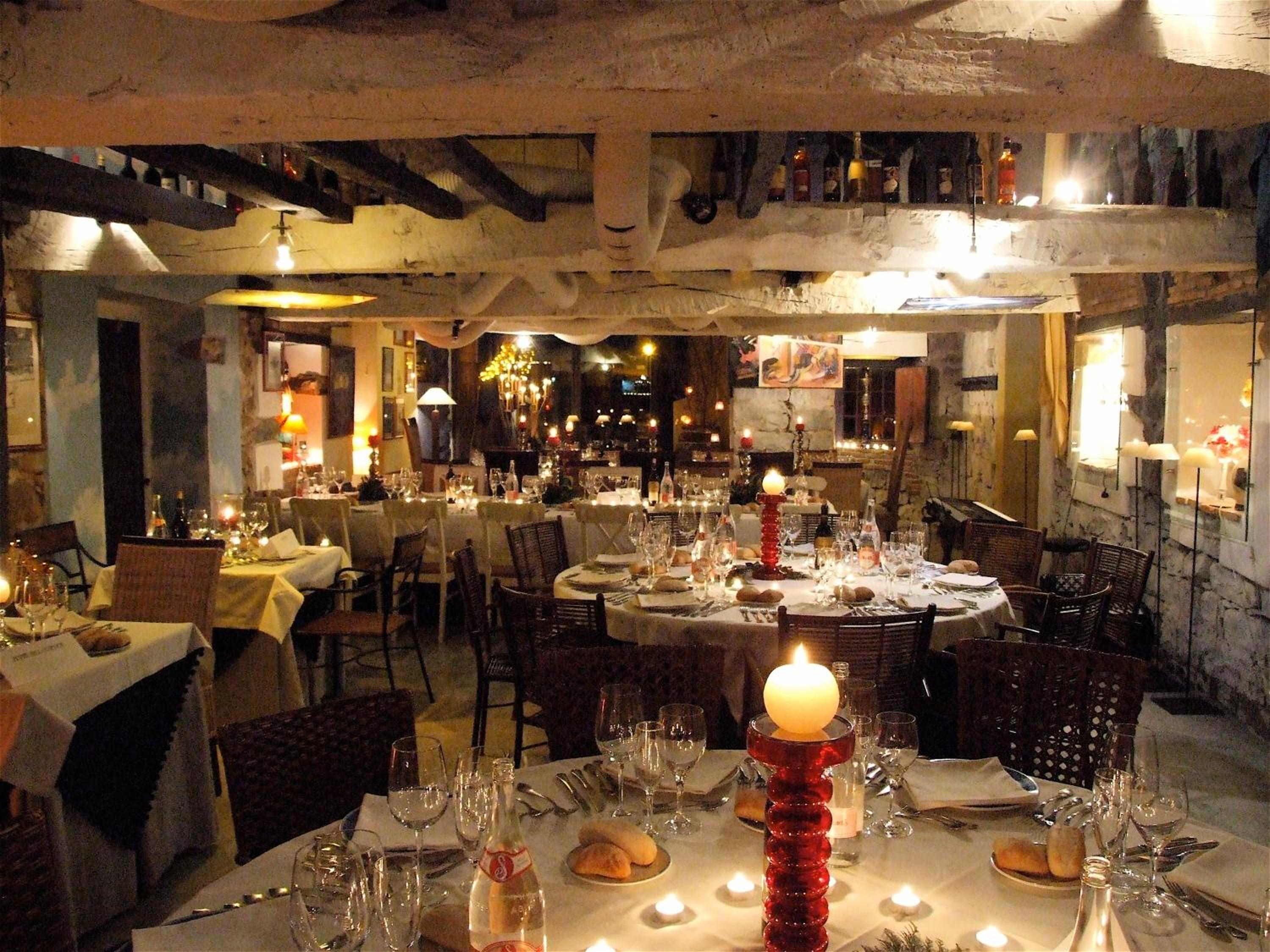 Cenamos en la habitacion una tablas de cecina y quesos muy ricos con un vino, pues llegamos tarde y ya cerraban la cocina pero fué muy agradable porque la habitación invita a ello.