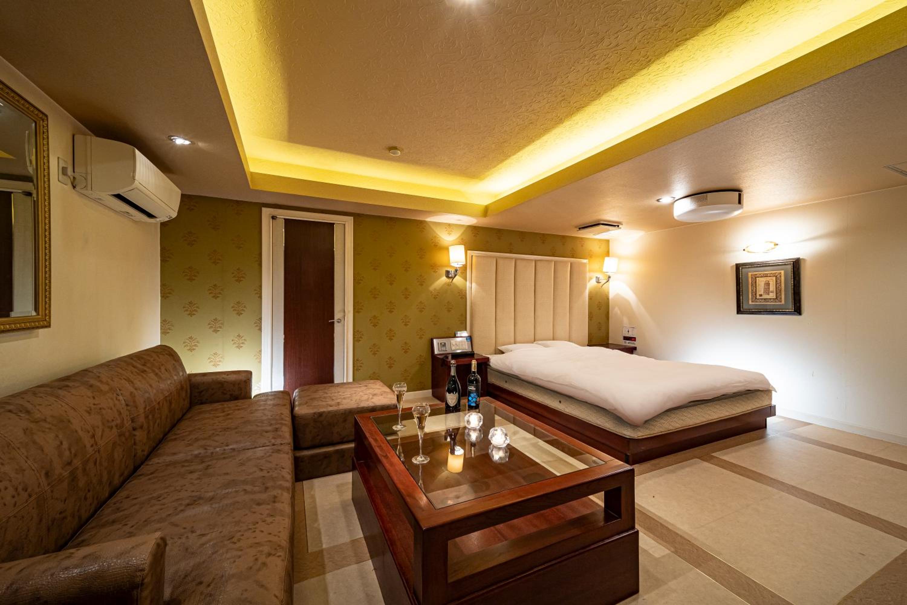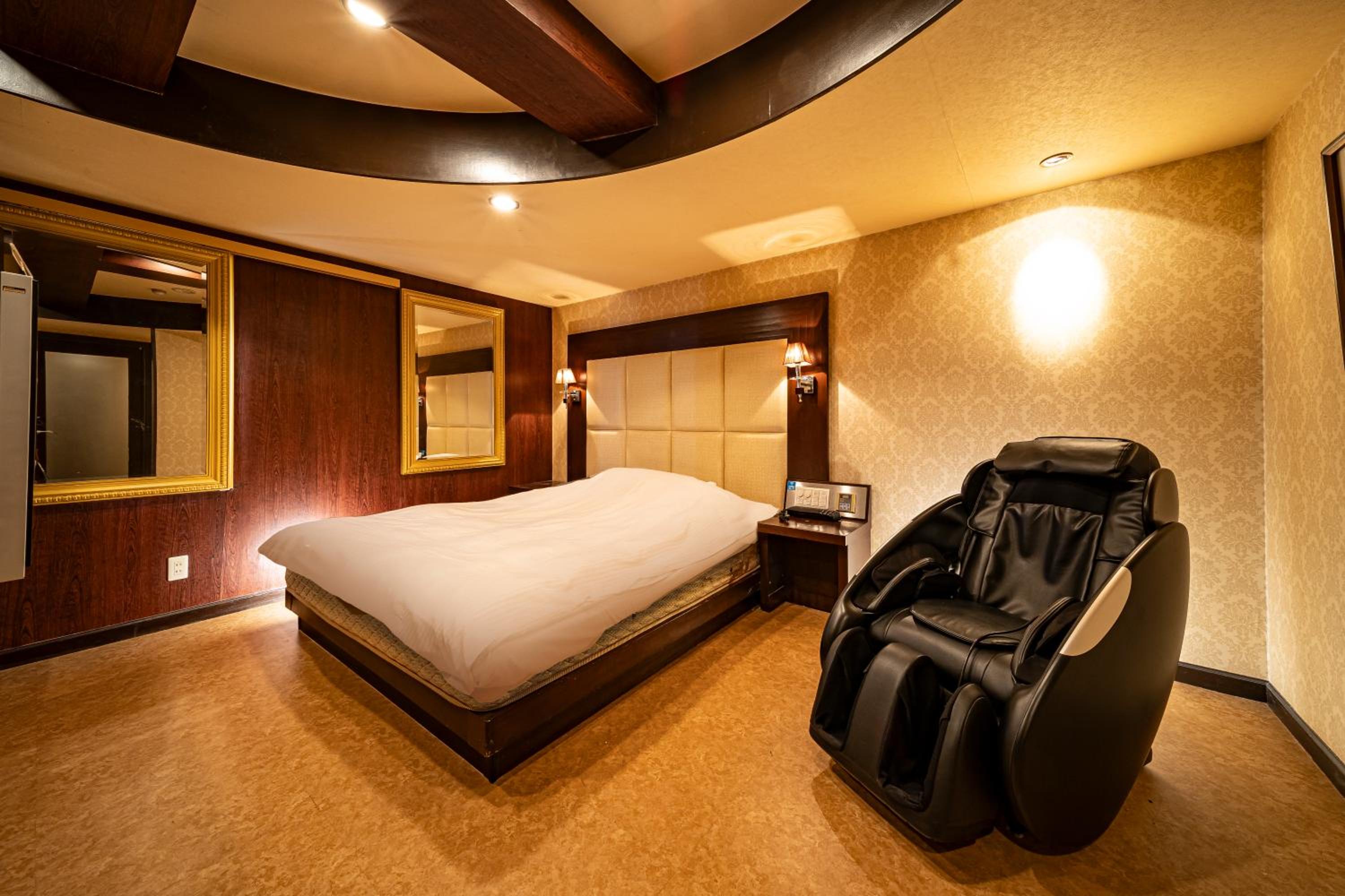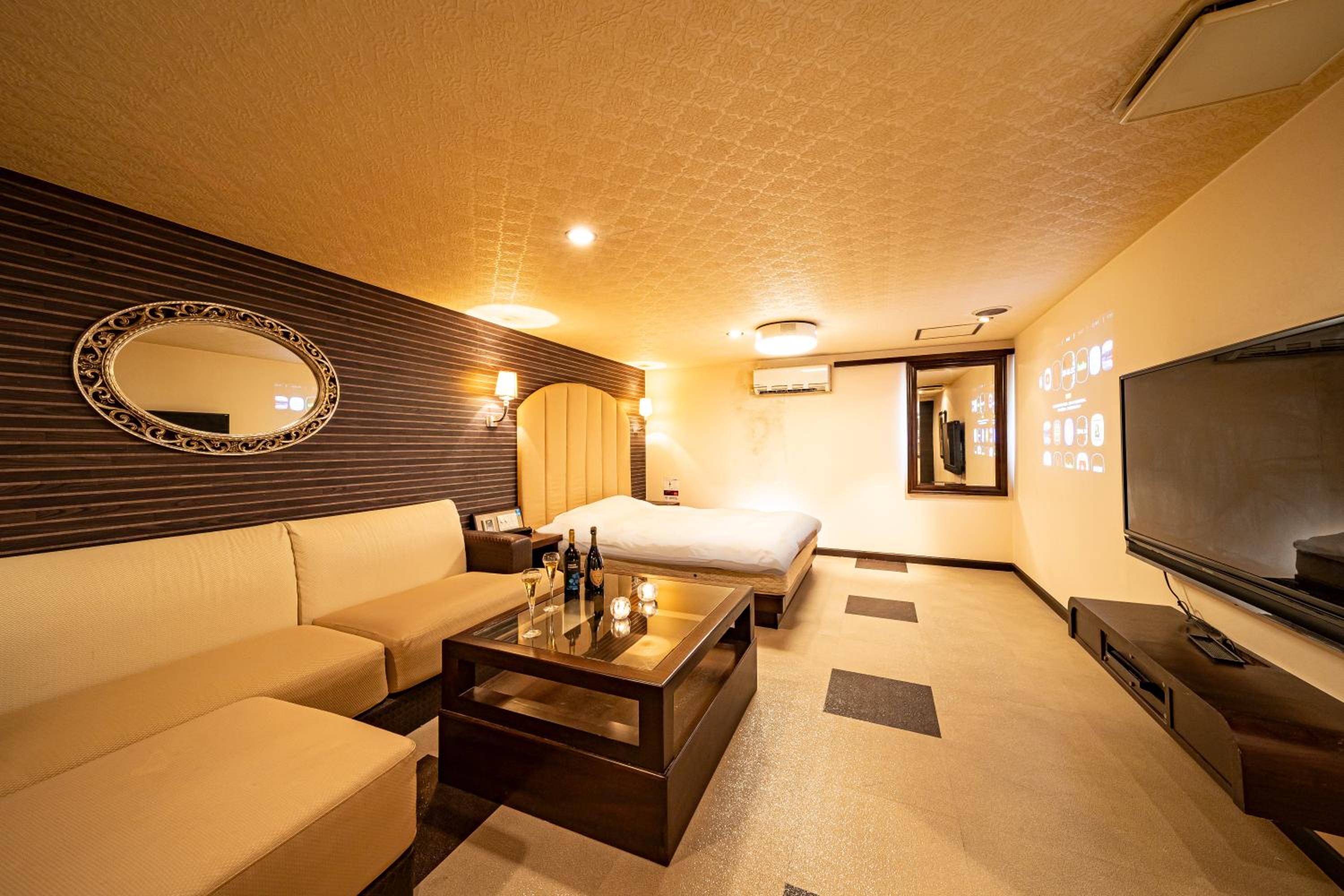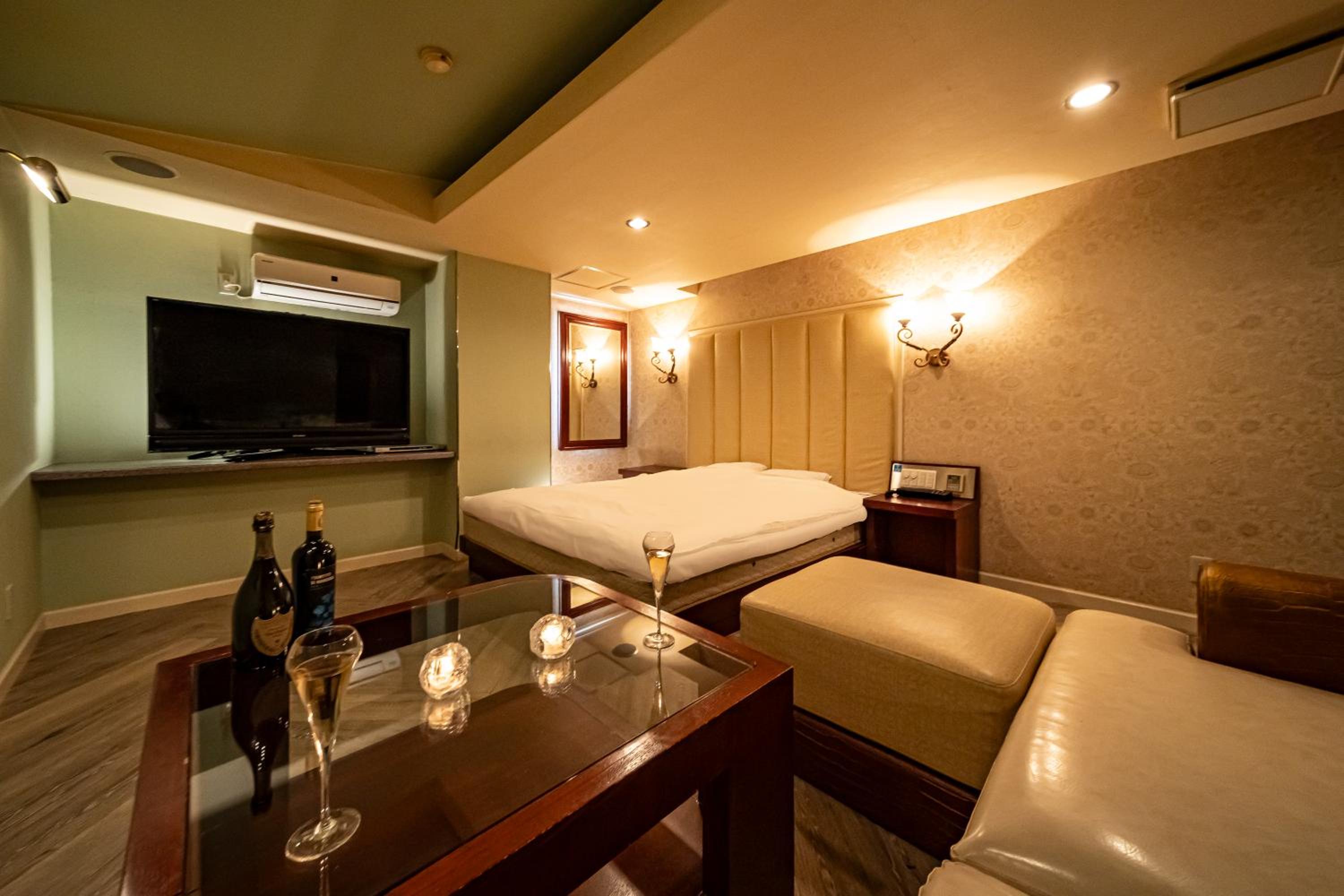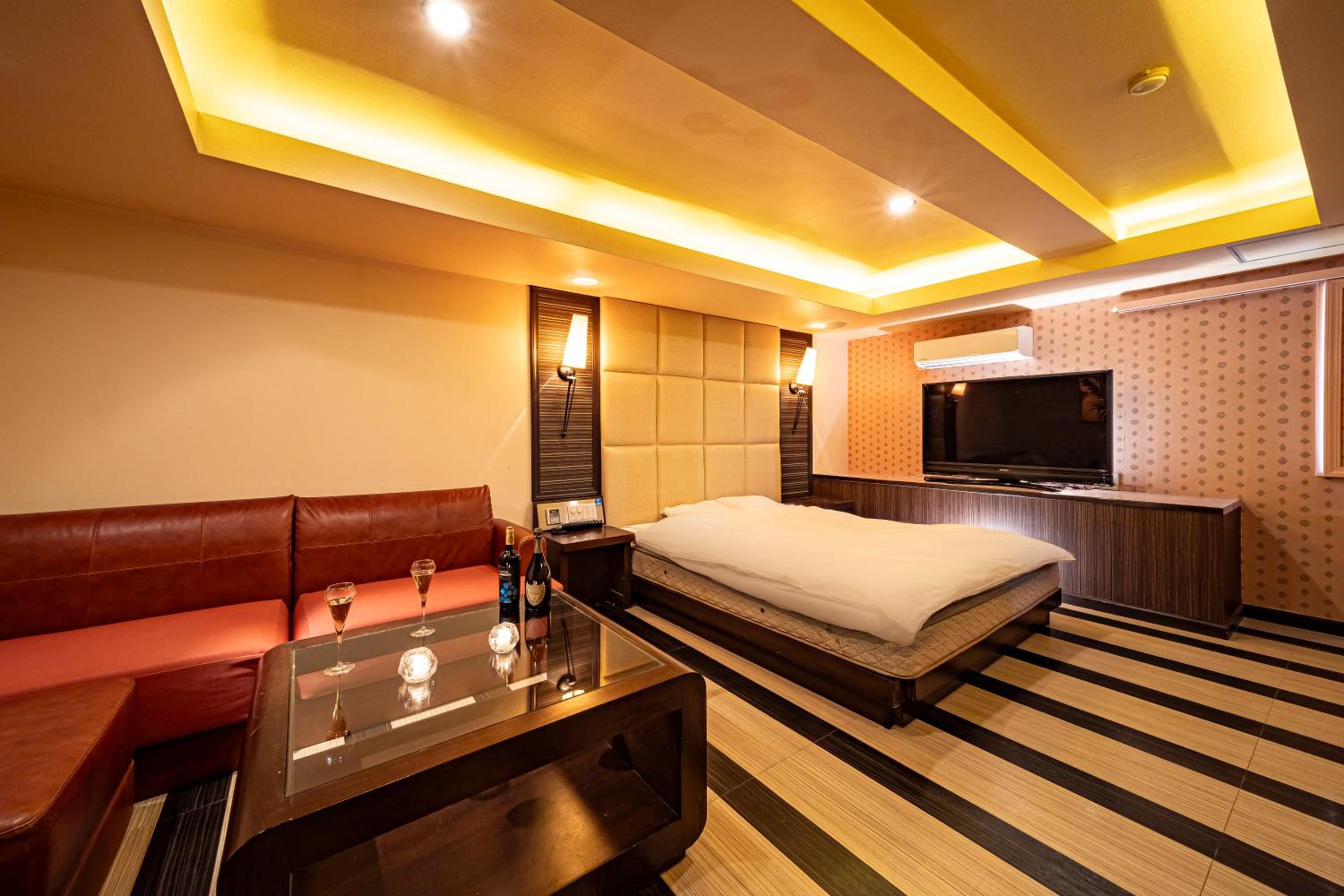 Room was not clean: in search of an electrical outlet to charge my phone, i moved the night stand back a bit, and found used condom wrappers and a cigarette underneath. I understand this is a love hotel, however, it was quite disgusting nonetheless. This was my first love hotel and was expecting a higher degree of cleanliness, i guess now i know to set my expectations much lower. Additionally, the room had a strong smell of cigarettes, which was also not appreciated or comfortable to have to sleep in. Some discretion would have been nice here, i would have happily have paid more for a smoke-free room. I strongly do not recommend this hotel for solo/partner travels looking for a comfortable one night, or more, stay next to the airport.