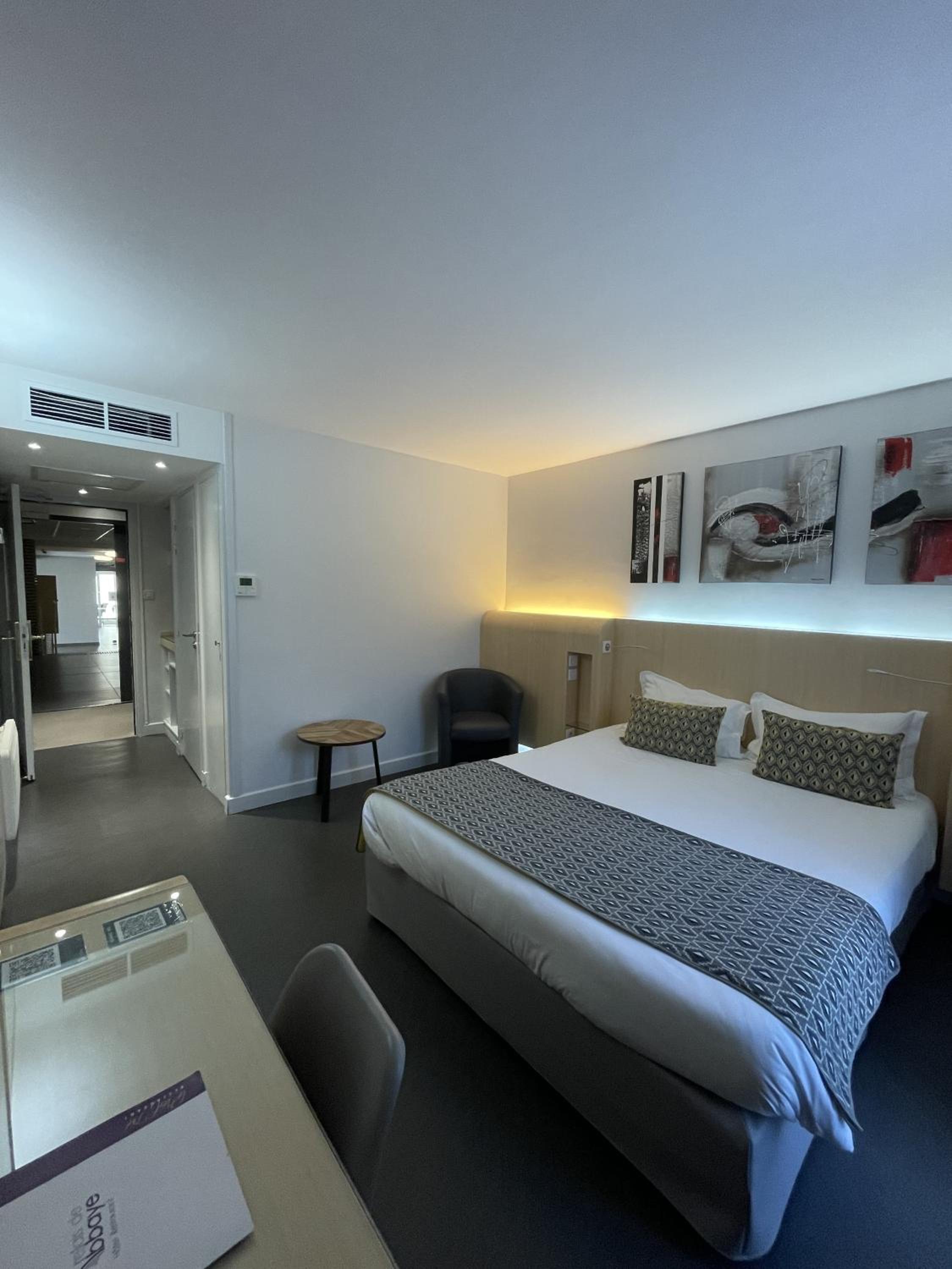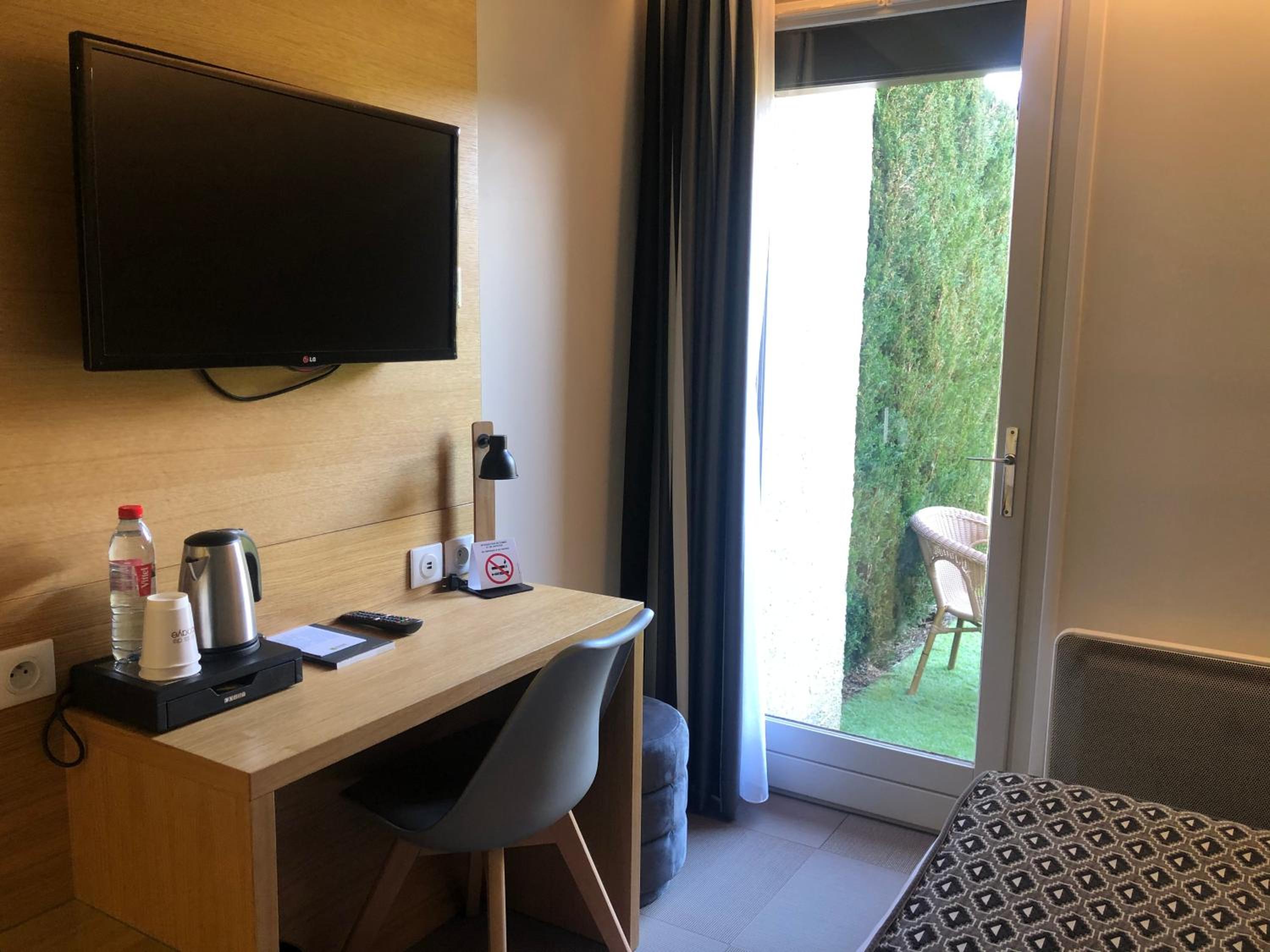 Unique Room Designs: Individually decorated in modern styles, each air-conditioned room at Relais de l'Abbaye offers a cozy retreat with a flat-screen TV and private terrace.