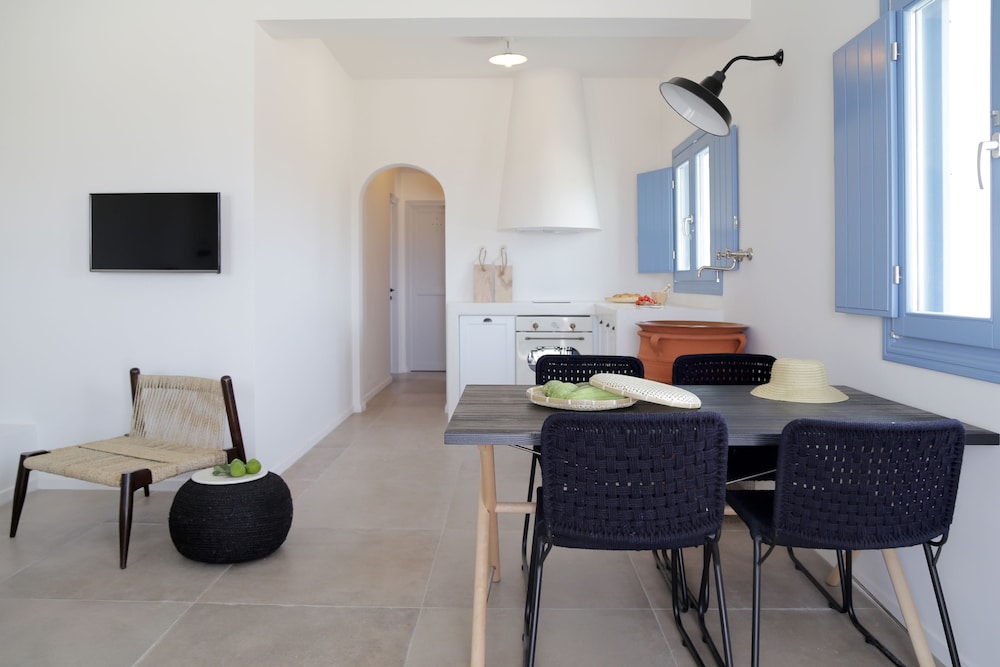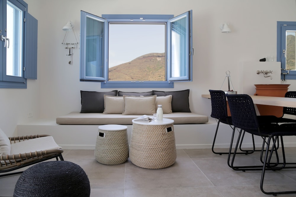 We stayed in Vinsanto on the upper level, it was perfect. The interiors are done with such thought and are relaxing and contemporary and very clean.The jacuzzi overlooked the vineyards and perfect spot to watch the sun go down. The quality of the bedlinen and towels superb not to mention the beautiful breakfast. It is in walking distance to an absolute treasure 'The Finikia Village' and if it weren't for Yota our wonderful host whom welcomed us so warmly and showered us with some great advice and recommendations we would have missed it. In hindsight I wished we had stayed here first as Yota has some magical spots to recommend which we ran out of time seeing all of them. I would recommend these to both families and couples or even if your organising a family reunion, it is the perfect spot for a great gathering as perfect spaces and a host who is passionate about making your stay magical!