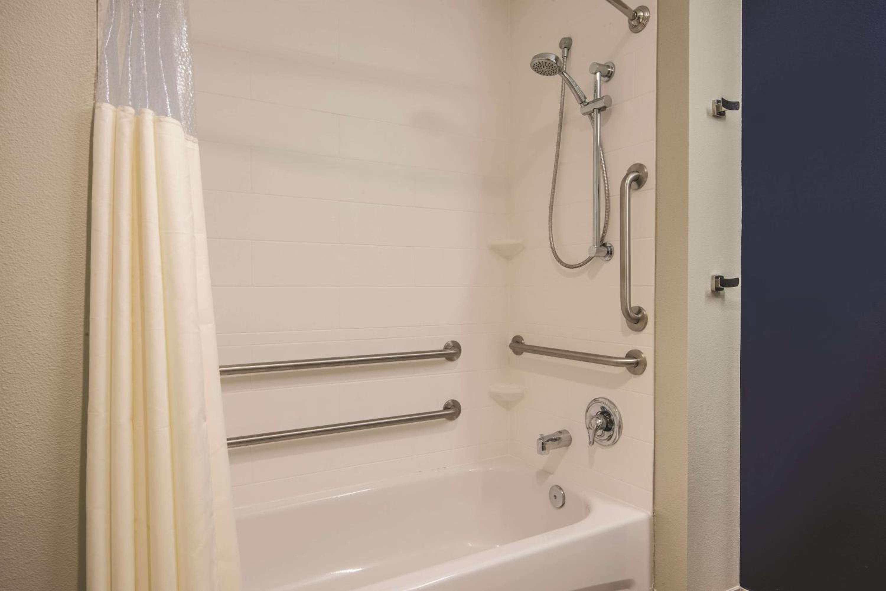 Friendly staff, clean room. We appreciated that we could bring our dog. TV was good. Microwave, refrigerator were useful for when we brought leftovers back. Good location for us near our relatives and not far from the dog park. The pool looked nice, although we did not get a chance to use it.