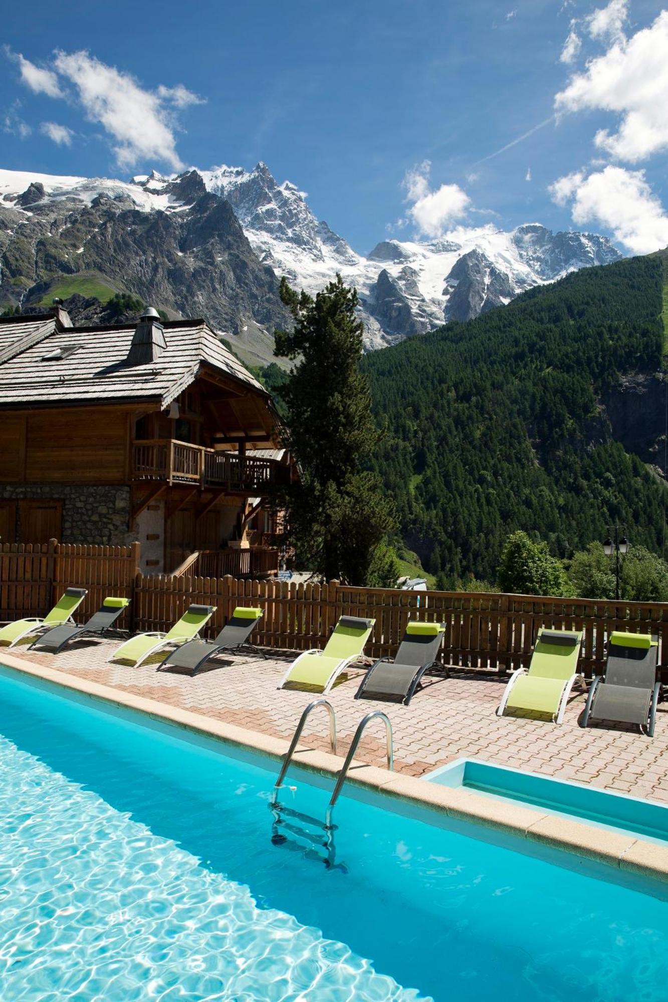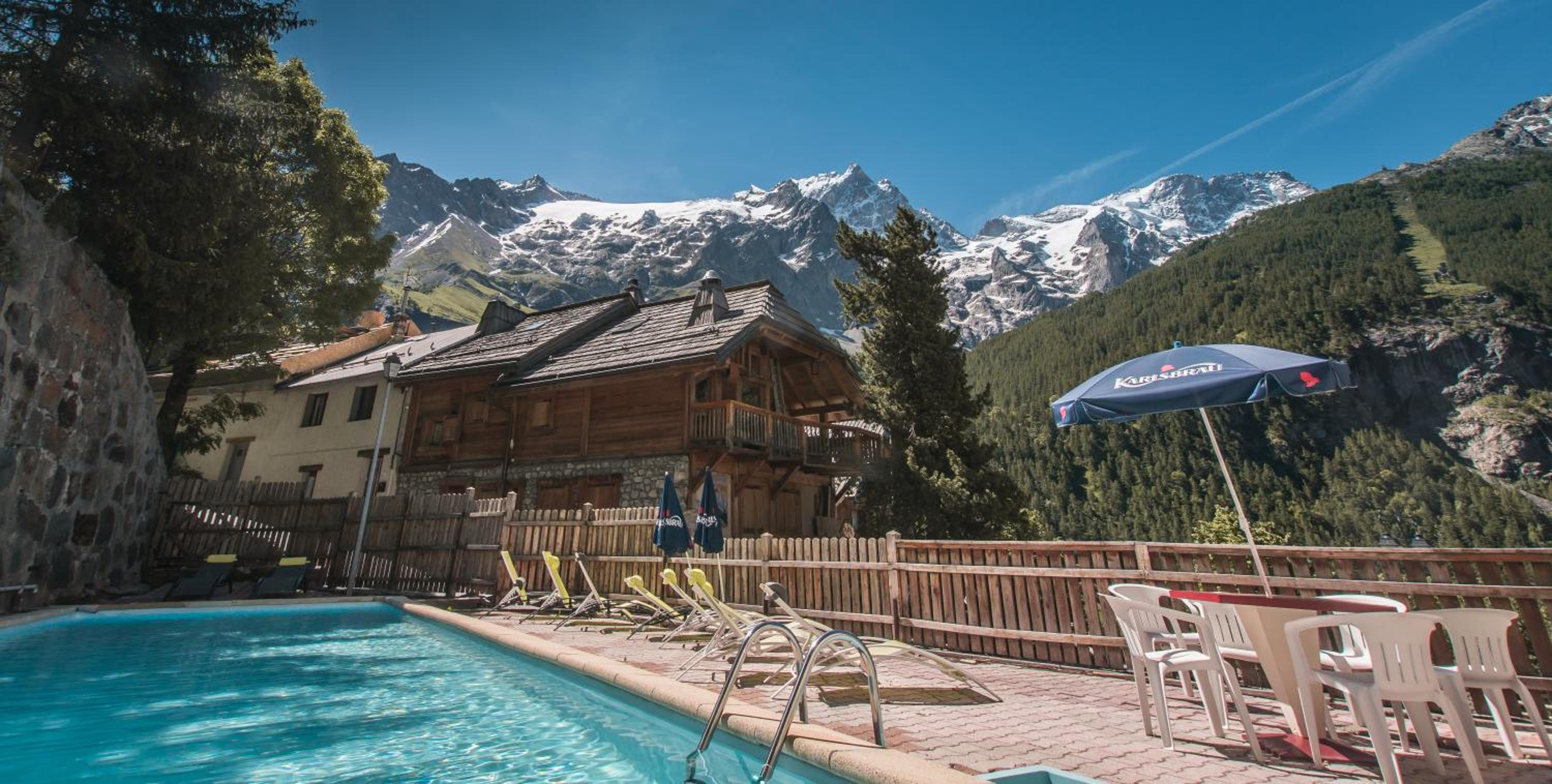 L emplacement de l hôtel et la vue extraordinaire sur les sommets des Écrins.