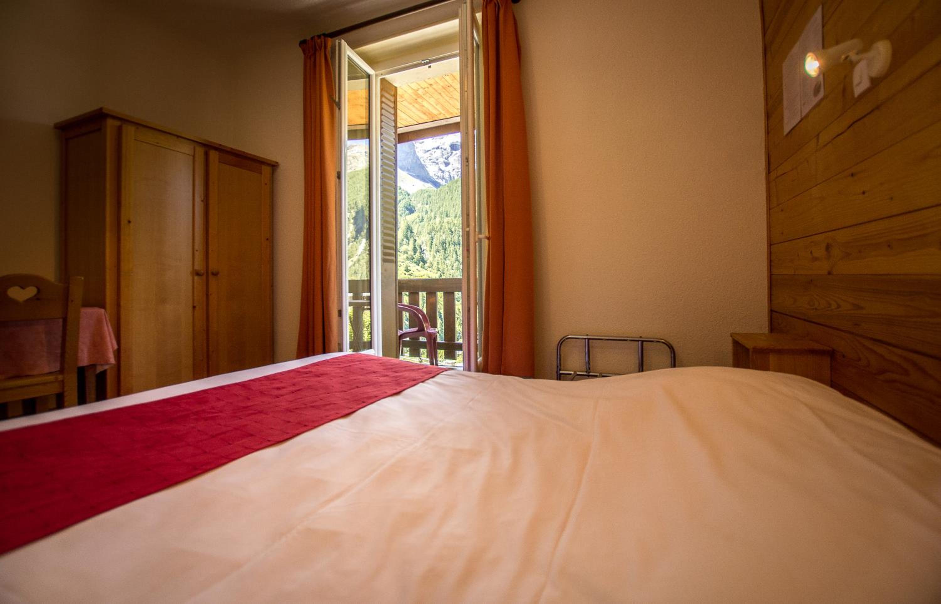 La chambre avec un balcon offrant une vue magnifique sur le glacier de Girose, à deux pas du téléférique. Un très bon petit déjeuner.
