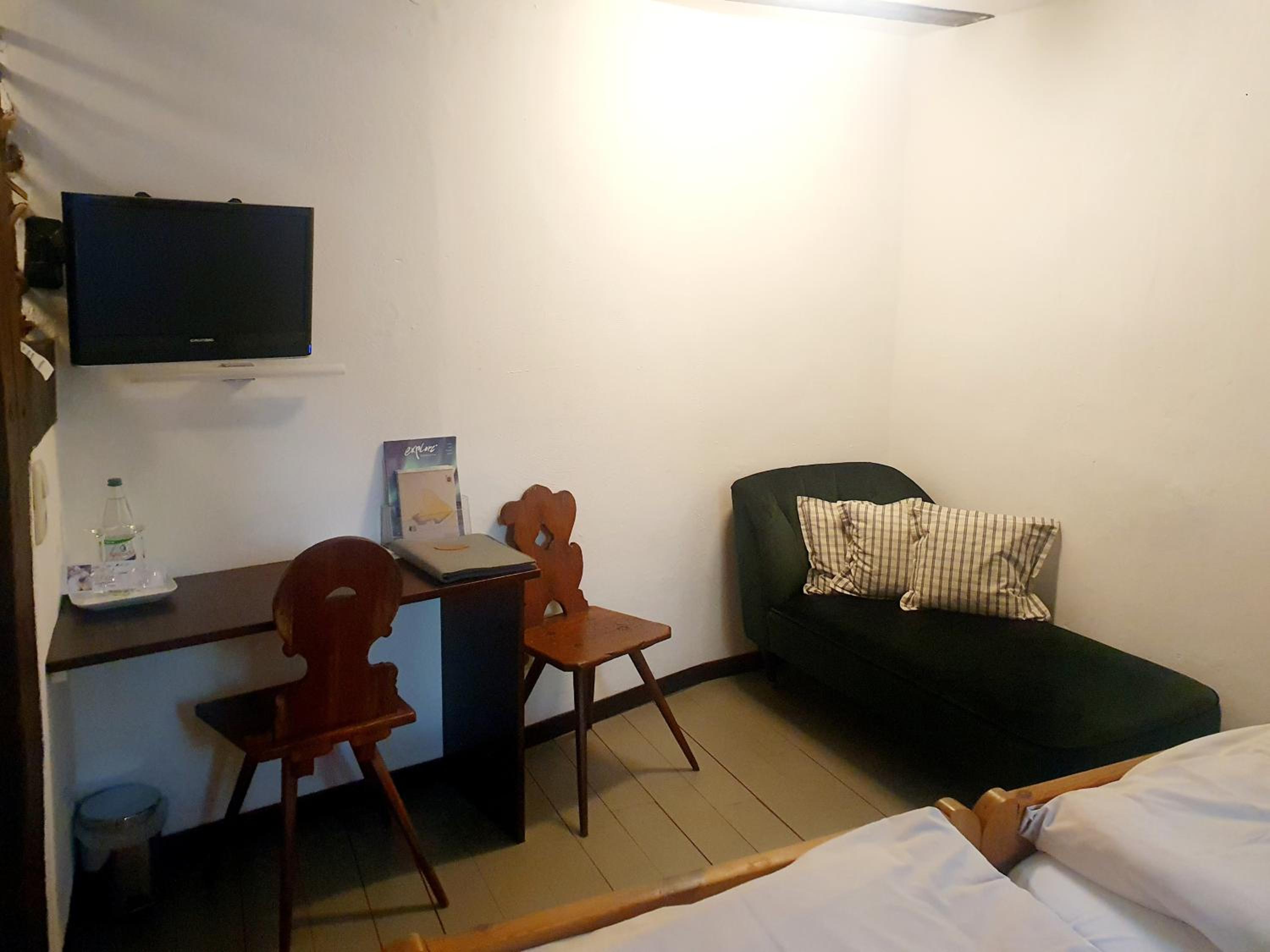 Eine ganz besondere Unterkunft mit einer interessanten Geschichte, die einen geradewegs in die Vergangenheit der Region katapultiert. Herausragend ist sowohl das historische Ambiente sowohl des Zimmers als auch des ganzen Gebäudes, liebevoll instandgehalten von einem herausragend freundlichen Gastgeberpaar. Kulinarisch ist das Restaurant des Hauses eine Klasse für sich: nicht nur, dass uns wirklich alles fantastisch geschmeckt hat, sondern auch die Tatsache, dass sich hier noch um Regionalität, Saisonalität und Eigenanbau der Zutaten gekümmert wird. So finden sich bei jedem Gericht Lebensmittel aus dem eigenen Kräutergarten, wunderbar abgeschmeckt und kreativ kombiniert. Und sogar für unseren Hund war es ein fantastischer Aufenthalt: eine liebevoll bereitete Hundeecke auf dem Zimmer, Snacks vom Personal während des Abendessens, liebevolle Streicheleinheiten - wenn unser Hund eine Bewertung schreiben könnte, hätte sie sicherlich 5/5 Sternen!