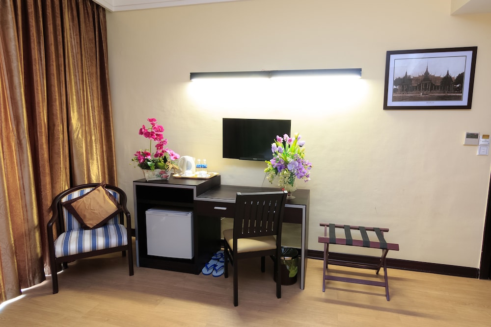 I enjoyed my stay at this hotel. The room was clean, comfortable, secure. Everything worked. The furnishings were not new but were in decent shape. Don’t hesitate to book here because the property is about a 15 minute walk to the riverside. Yes, in PP’s heat that may seem far, but Tuk Tuk rides via Grab are usually under $2 back and forth. Also, the distance from riverside keeps the hotel quiet at night. In addition, if your interest in PP goes beyond just boozing by the river, this hotel is actually closer to some of the city’s historical/cultural attractions. My only gripe (and it’s a minor one) is that housekeeping starts making their rounds before 9AM! While it’s best to get out early in PP, sometimes you just want to sleep in. Notwithstanding, all the staff I interacted with were pleasant, polite and efficient, including the housekeeping staff. Overall, well worth the stay.