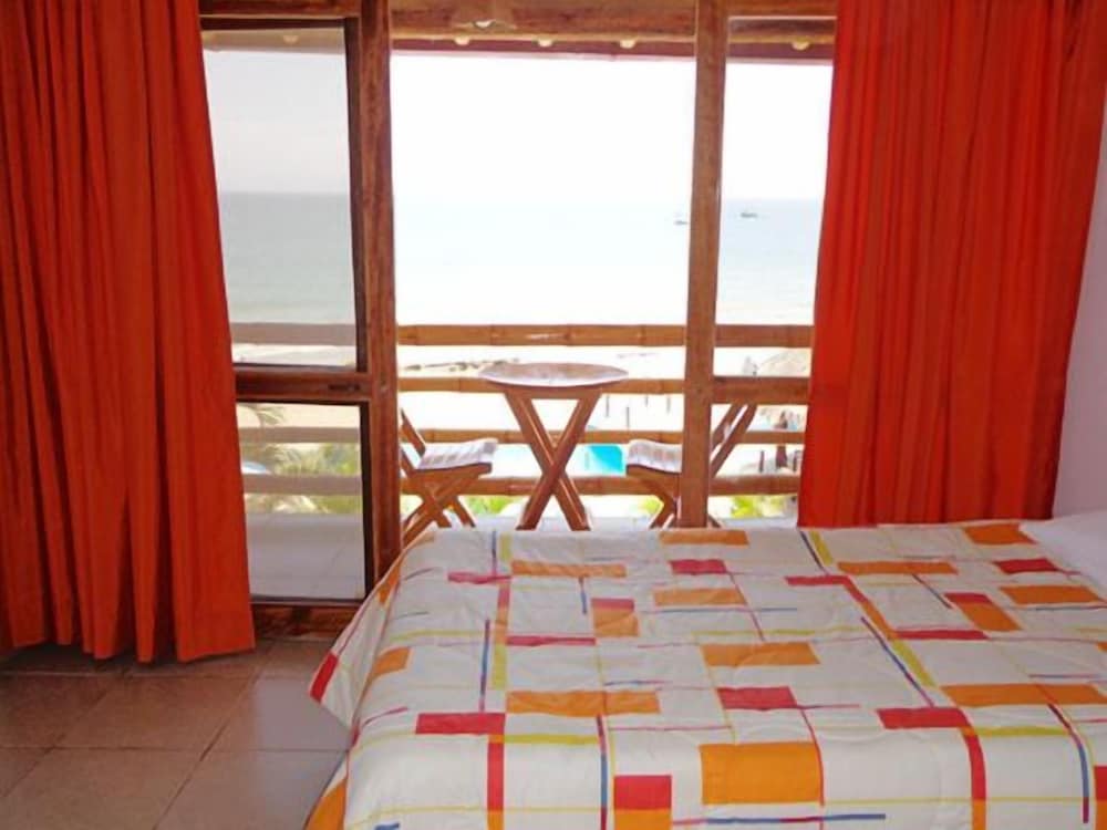 La limpieza de la habitación fue siempre impecable, la atención del personal no era tan buena, era un trato cordial pero para nada preocupado de las cosas que requerían los huéspedes. Tuve una mala experiencia con la comida del hotel, ya que el único día que cenamos ahi, me enfermé del estomago. Al día siguiente solicitamos algo tan básico como un termómetro y no tenían, aunque en su información decían que tenían un botiquín de primeros auxilios. La ubicación es excelente, justo en frente de la playa con una vista maravillosa, muy cerca del pueblo de Mancora, como a 5 minutos en moto taxi como a 30 minutos caminando.
