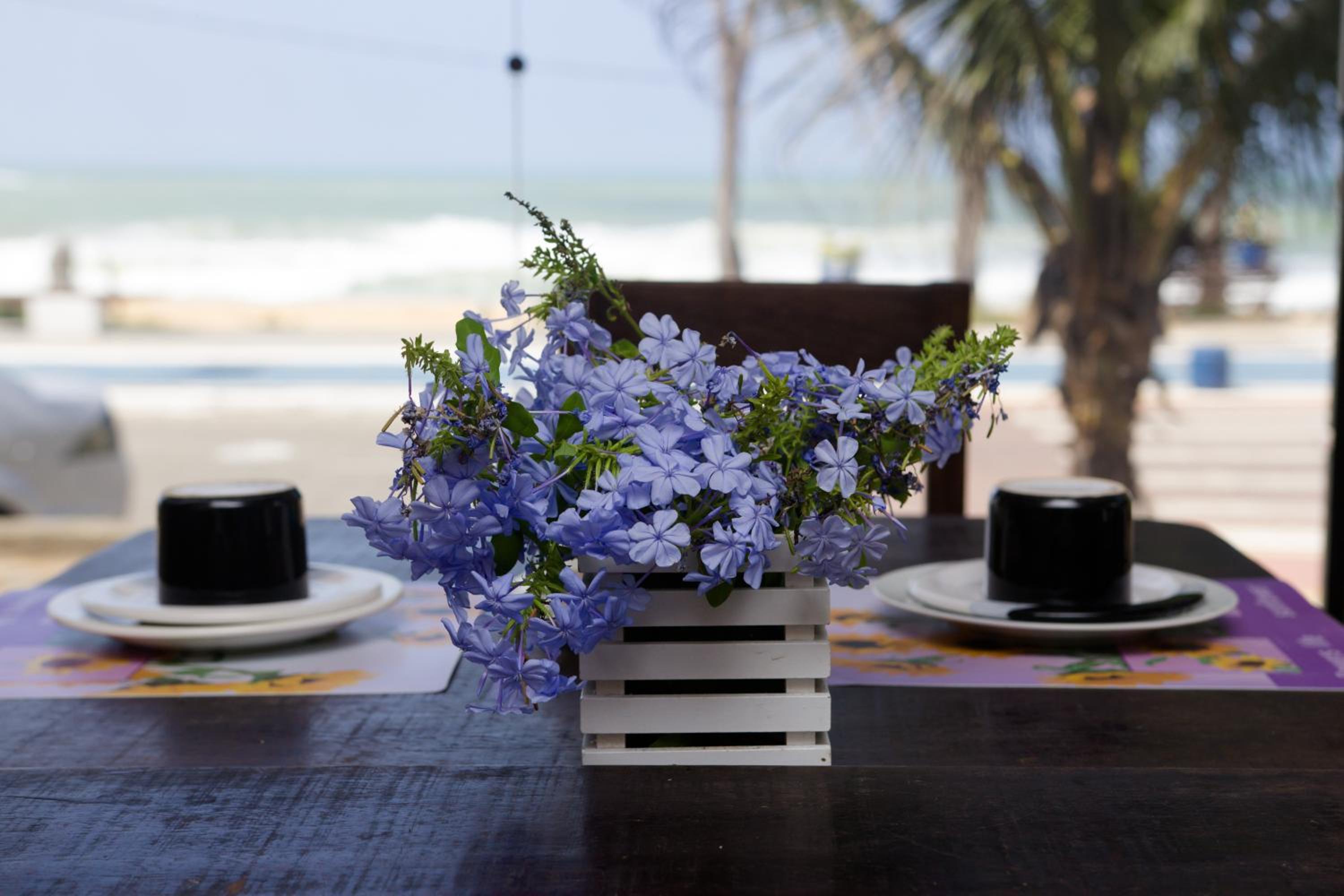 Vista linda da praia. Quarto limpo e amplo. Presteza da recepção e cozinheiras em tudo.