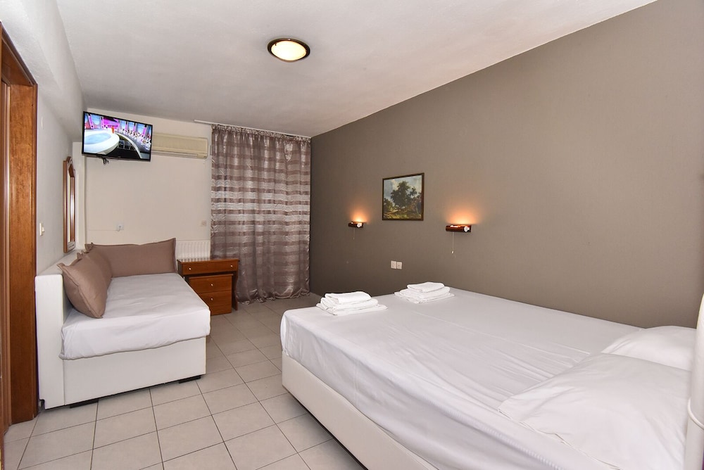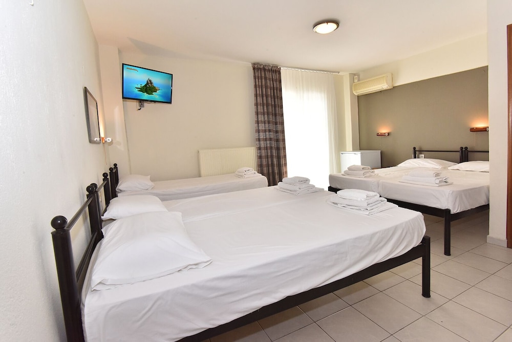 The hotel rate and the pictures of the Olympic Beach were quite attractive however the sea is full of seaweed and muddy. The mattresses were uncomfortable and squeaking while moving. No shampoo available and narrow bathroom. The restaurants and cafes next door were playing loud music until 2-3 am. I would rather choose Halkidiki region compared to Olympic Beach.