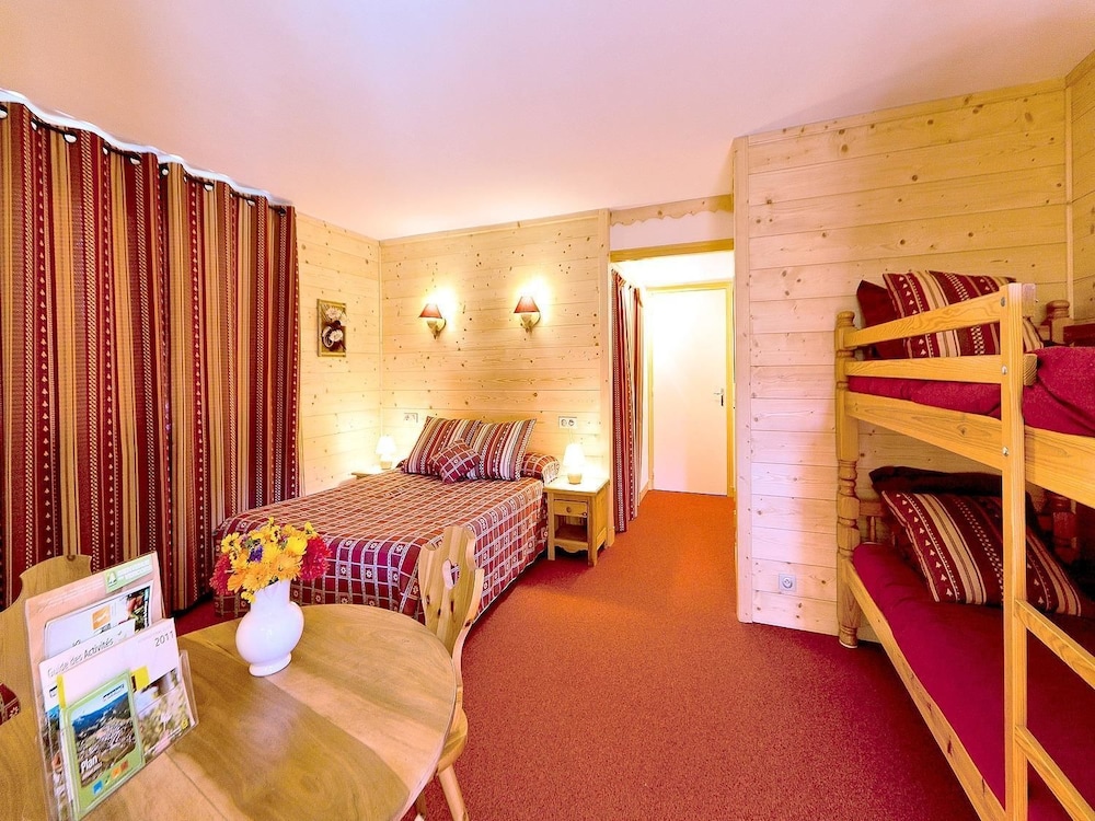 La chambre où j'étais (chambre double) est spacieuse, la literie de bonne qualité, exposée plein sud avec superbe vue sur les pistes et sur les montagnes, et une petite terrasse, bien agréable pour prendre le café ou le thé. Il y a une TV (32") avec toutes les chaines TNT et une bouilloire pour faire chauffer son eau, avec quelques sachets de thé, café instantané, gobelet, touillette et sucre.