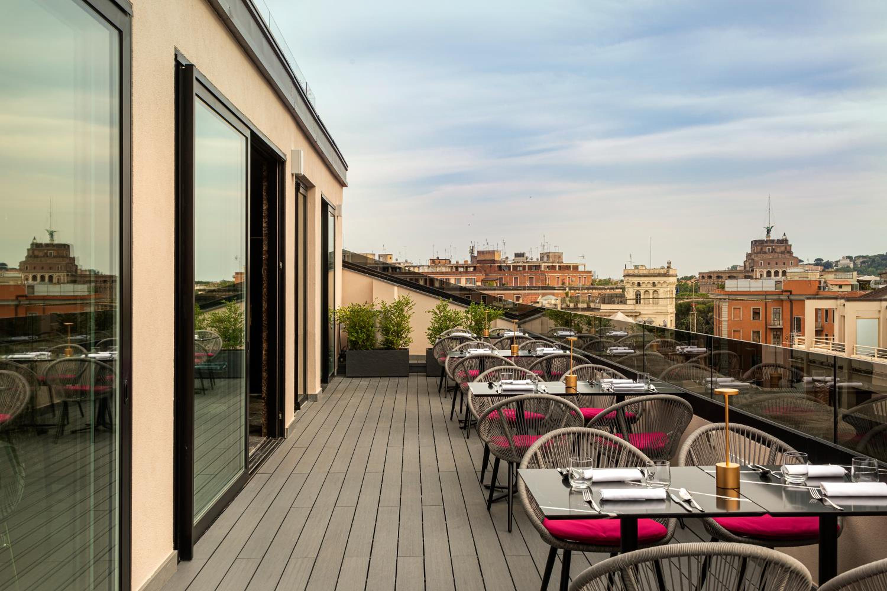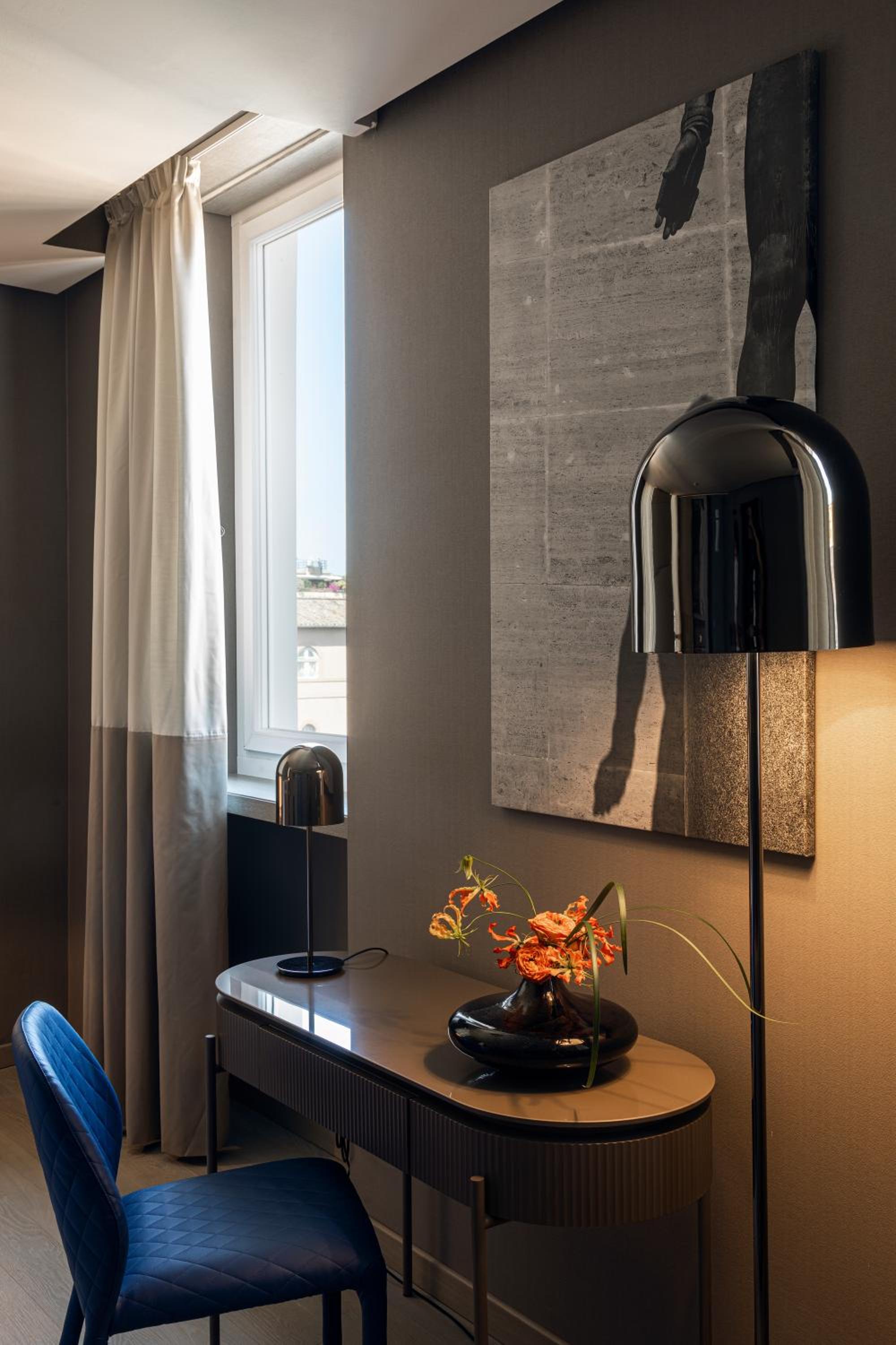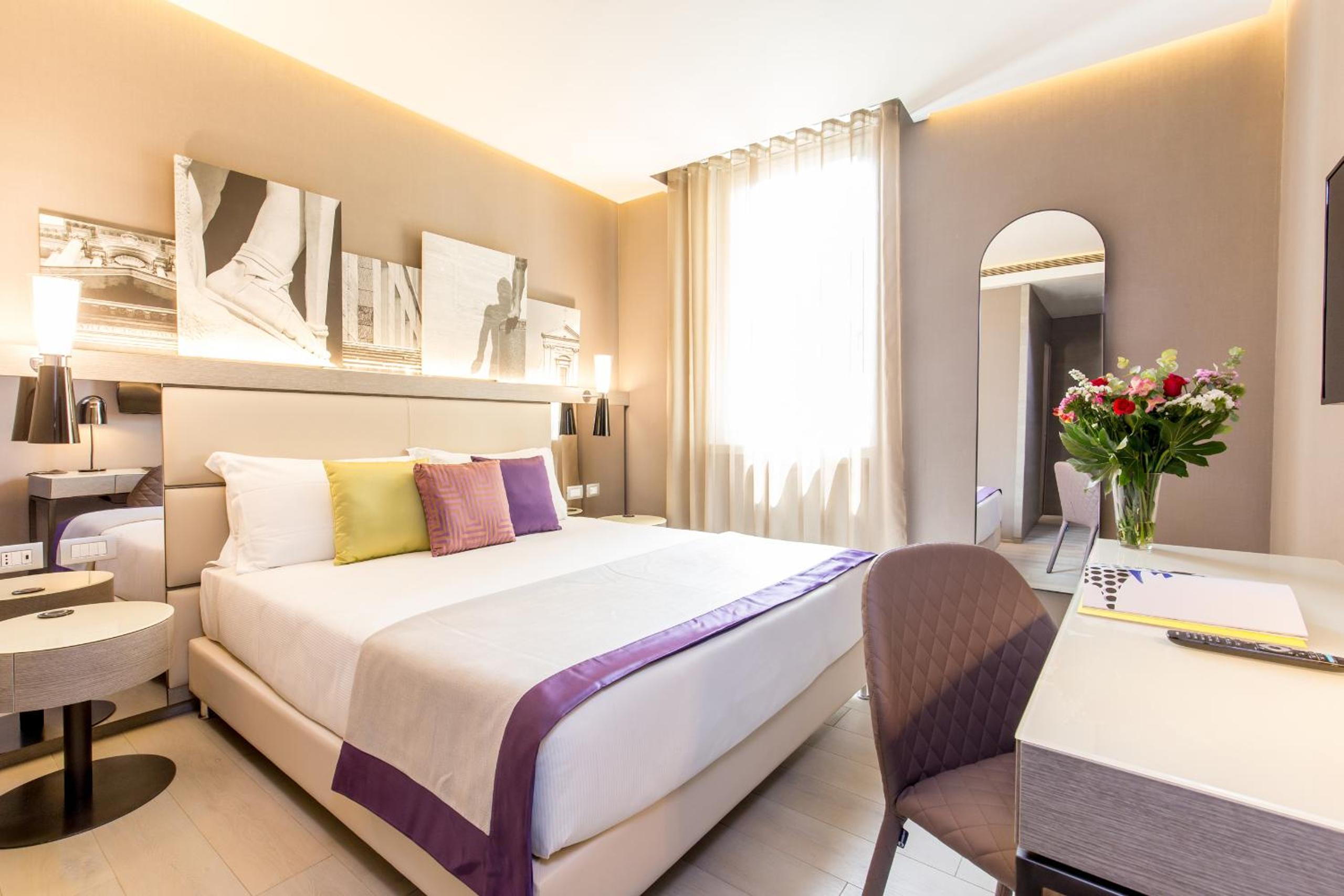 Experience a blend of modern interiors and tranquility at Orazio Palace Hotel in Rome's Prati quarter. The lush garden provides a peaceful retreat from the bustling city.