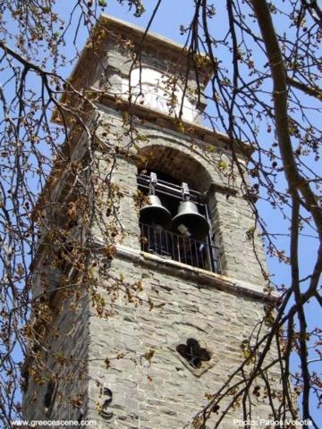 Ρολόι εκκλησίας και καμπαναριό δίπλα που χτυπούσαν από τα χαράματα