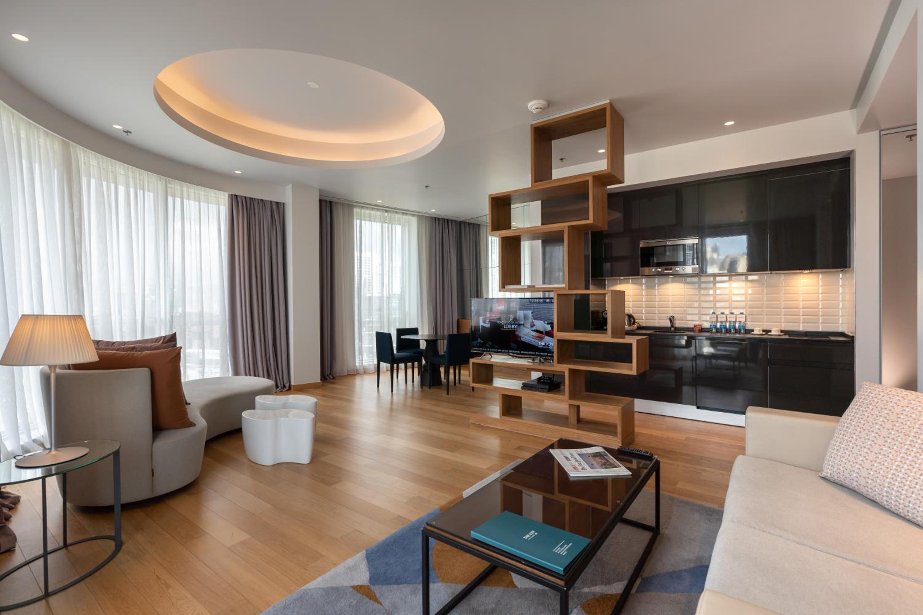 Intelligently Designed Accommodations: THE KEY Beirut offers spacious, air-conditioned rooms and apartments with natural light, soundproofing, and elegant design. Each unit features a living area, fully equipped kitchenette, and essential amenities for a comfortable stay.