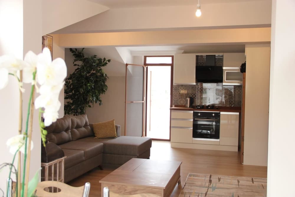 Oda klima yazıyordu. Sorduk ücretli dediler. Banyoda sabun şampuan yoktu. Apart oldukları için koymuyorlarmış. Eski tip tüplü küçük bir tv vardı. Temizlik kötüydü. Mutfak malzemeleri, buzdolabı ve su ısıtıcısı olması güzel. Konumu sahile yakın.