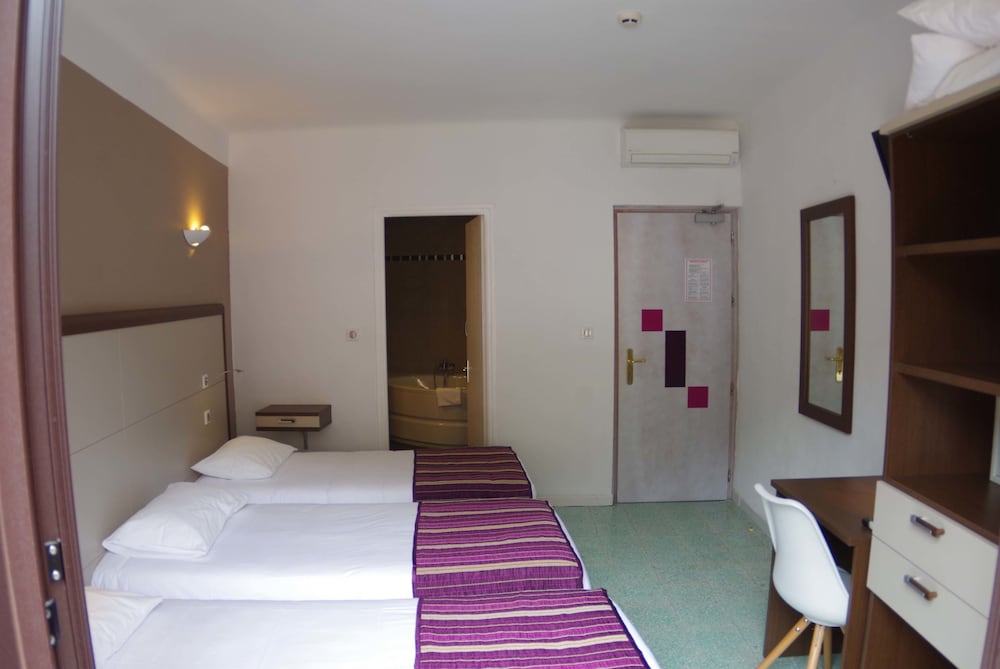 Emplacement de l hôtel. Accueil. Propreté de l établissement. Chambre spacieuse. Petit déjeuner. Restos à proximité. Sympathie des propriétaires.