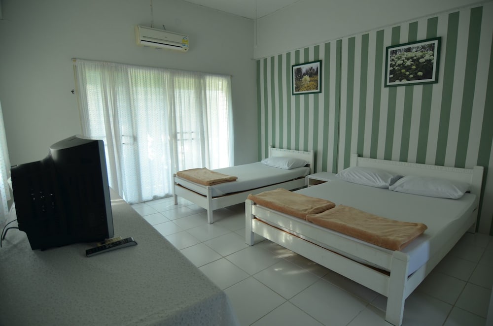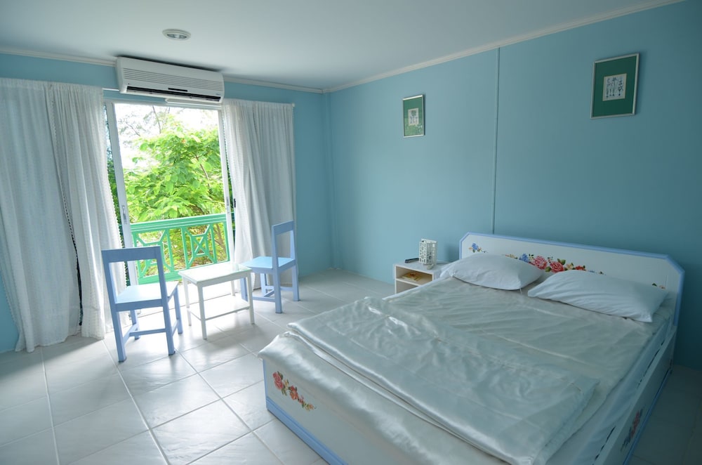 We stayed 3 nights at Makmai Villa. Although the place has been in business for a long time, the management has kept it in very good condition. Our room opens to sweet smelling flower trees and is supplied with firm & comfortable bed with clean beddings, medium sized fridge, warm shower heater, a study table and spacious room to move around inside. We particularly loved the blue & white theme of the room. The room is super clean and the staff are super friendly and helpful. They kindly suggested places to visit and eat in Rayong. That was great!