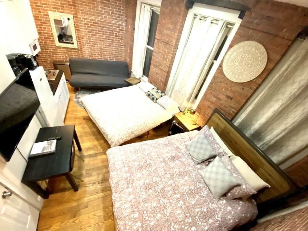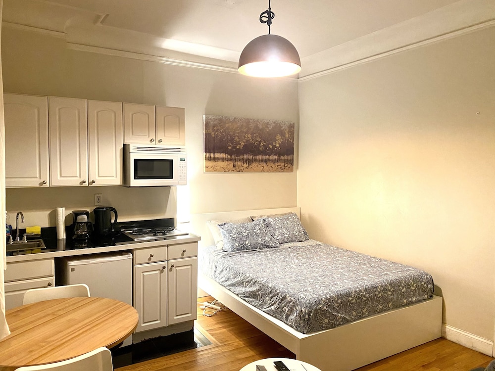 Quirky building with some interesting history. Room was on the small side and didn't get any natural light. Some minor problems with minor pests (the kinds of small bugs it's pretty much inevitable that you see from time to time in any old building), and also the soundproofing between rooms is pretty minimal. But the kitchenette was in great working order, and the bed was cozy, and overall I'd say it was pretty good for the rate.