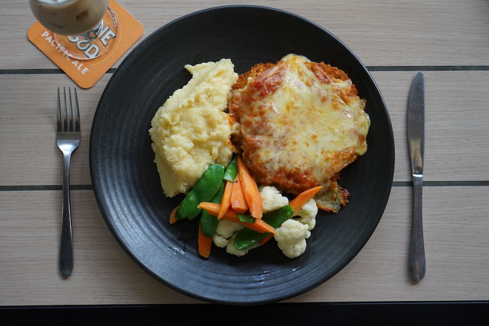 The location was very good. The staff were very friendly & helpful. I was able to buy a drink & sit and play the pokies before bed.