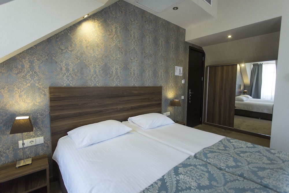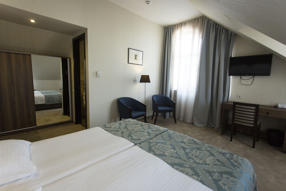 I enjoyed my stay here, the staff was nice, the room was sparkling clean. the breakfast was good. It is a very nice basic hotel, everything worked, it was actually roomy enough that I could walk on both sides of the bed. The view of the old town was nice. It was a short walk to the fort - monster hill and to the thermal baths, downhill. The restaurants and bars across the street were nice and were open from about 10am until about 4am.