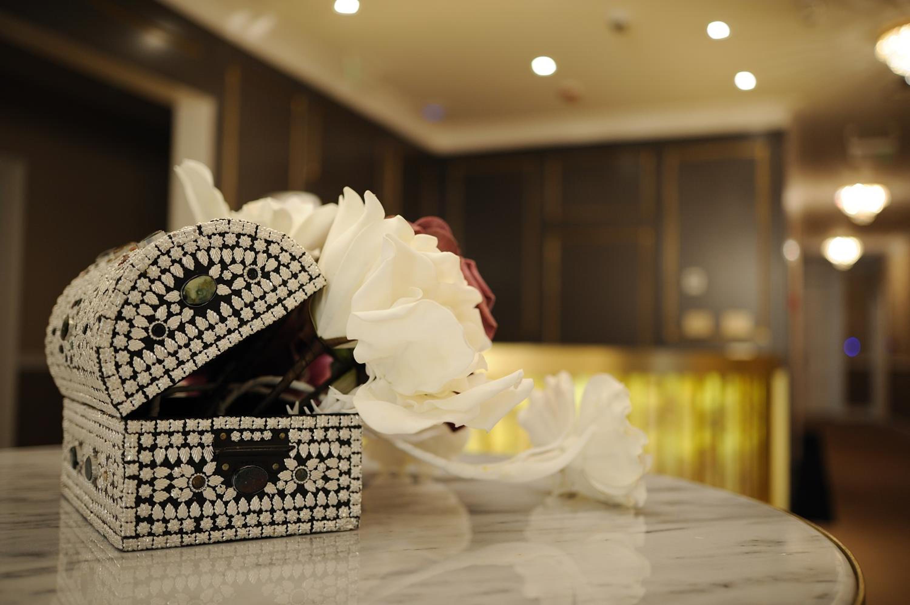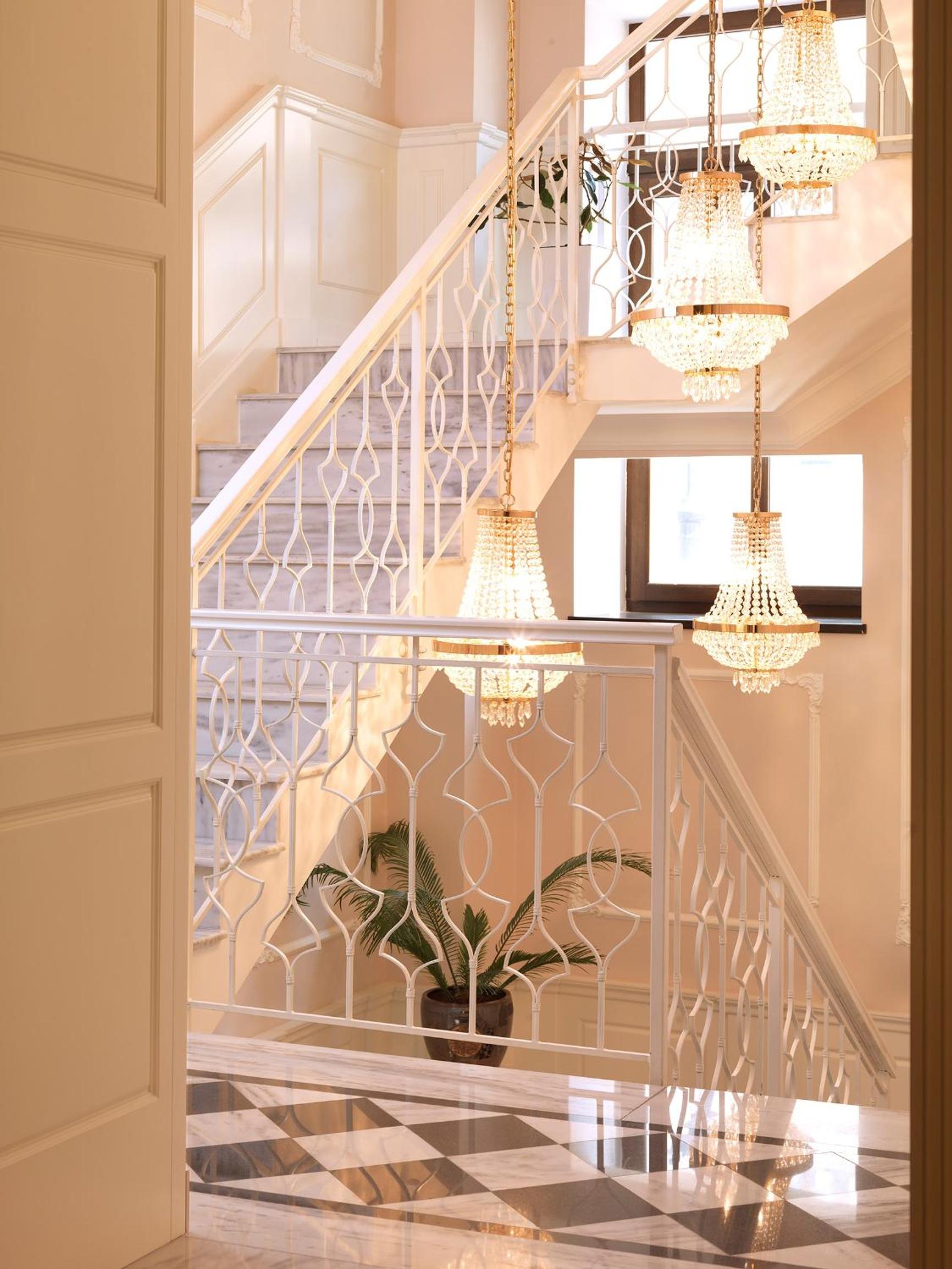 The air-conditioned rooms feature elegant white decor with colorful accents, murals, and intricate chandeliers. Enjoy modern amenities like flat-screen TVs, a dining table, and a minibar. The bathrooms are stocked with complimentary toiletries, bathrobes, and slippers.