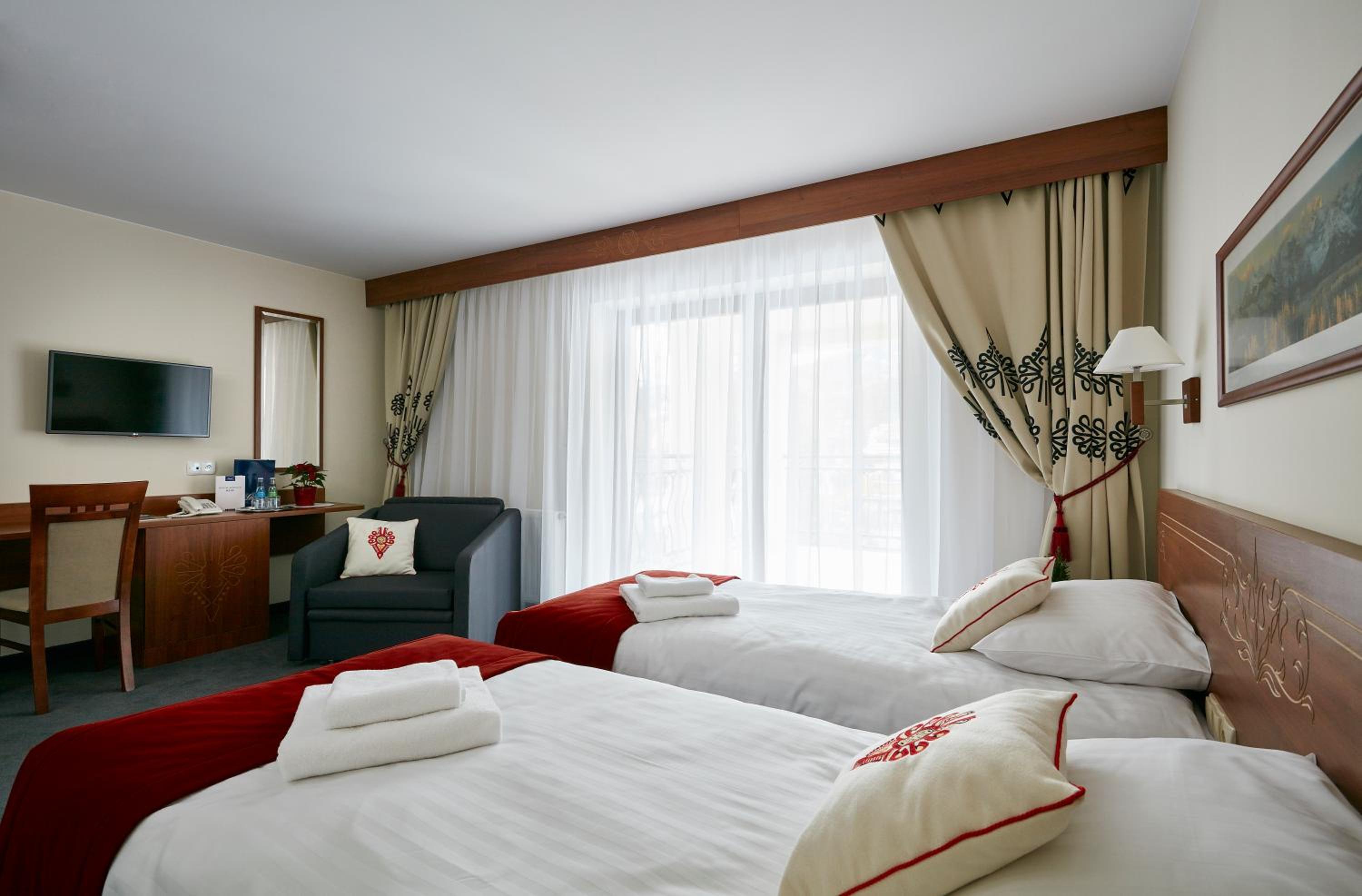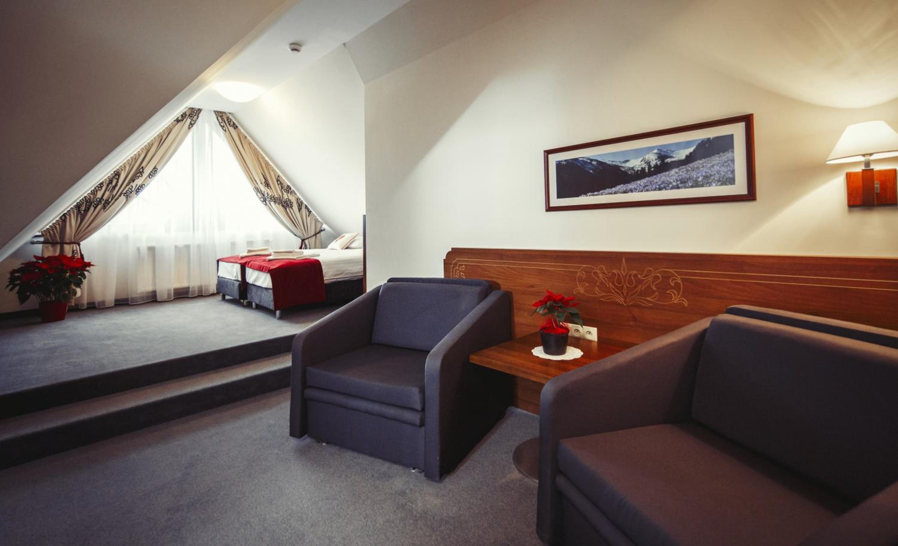 Le personnel est charmant, la chambre grande et confortable avec la vue sur les montagnes, le restaurant est délicieux le soir et le petit dej parfait. L’hôtel est à 5 mns à pieds de la rue piétonne Krupówki. Vraiment un super hôtel que je recommande chaudement.