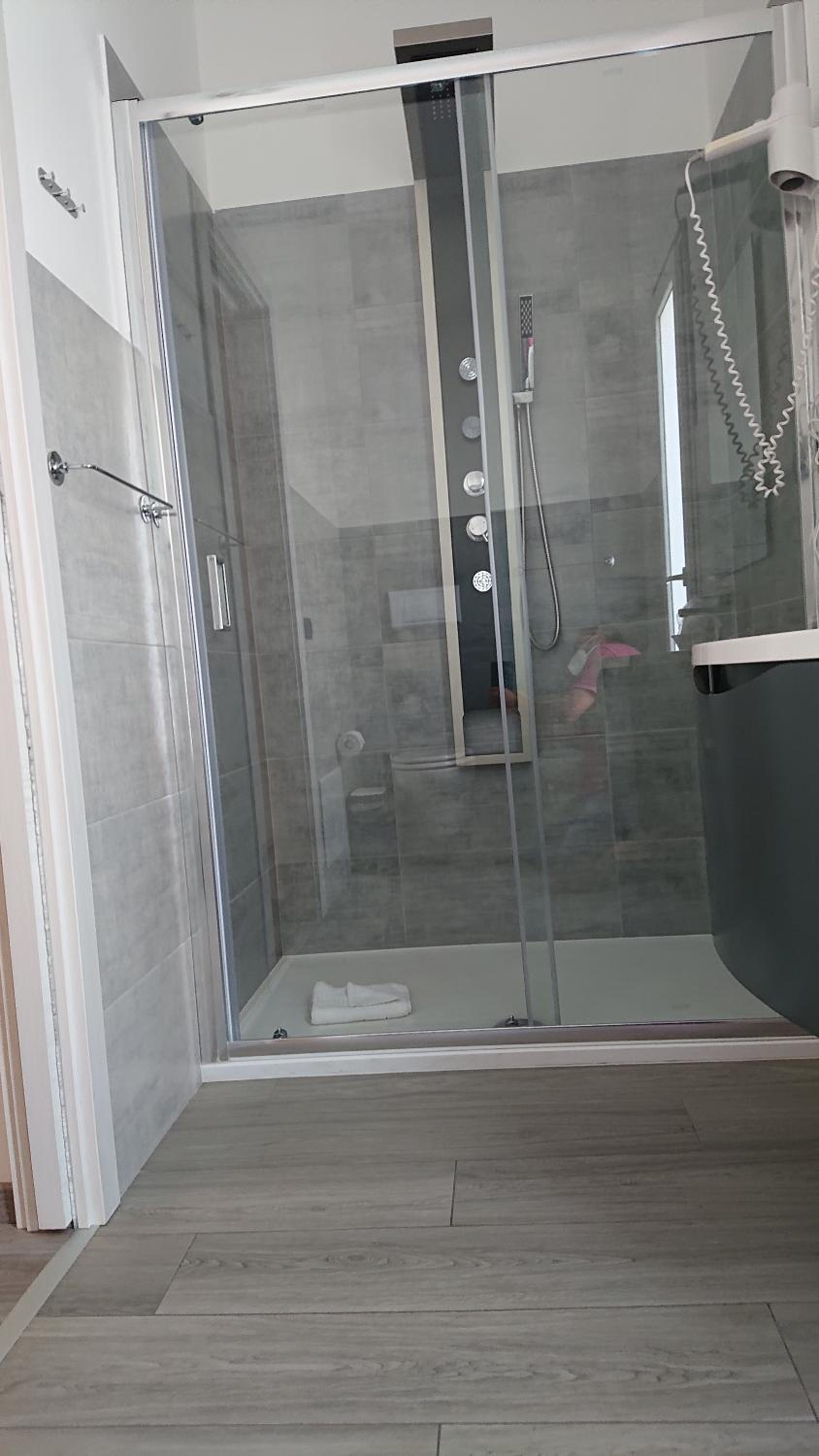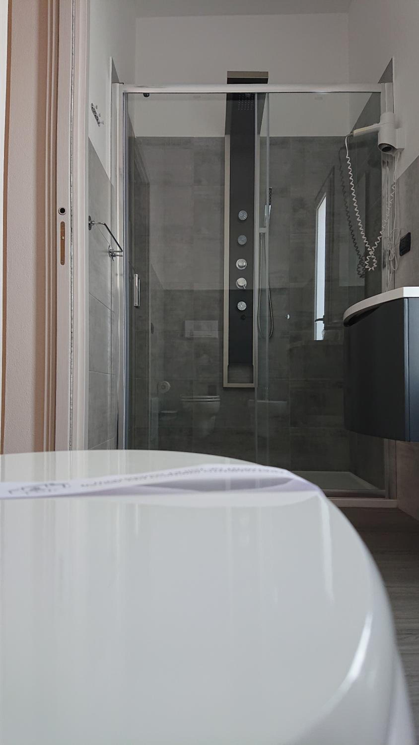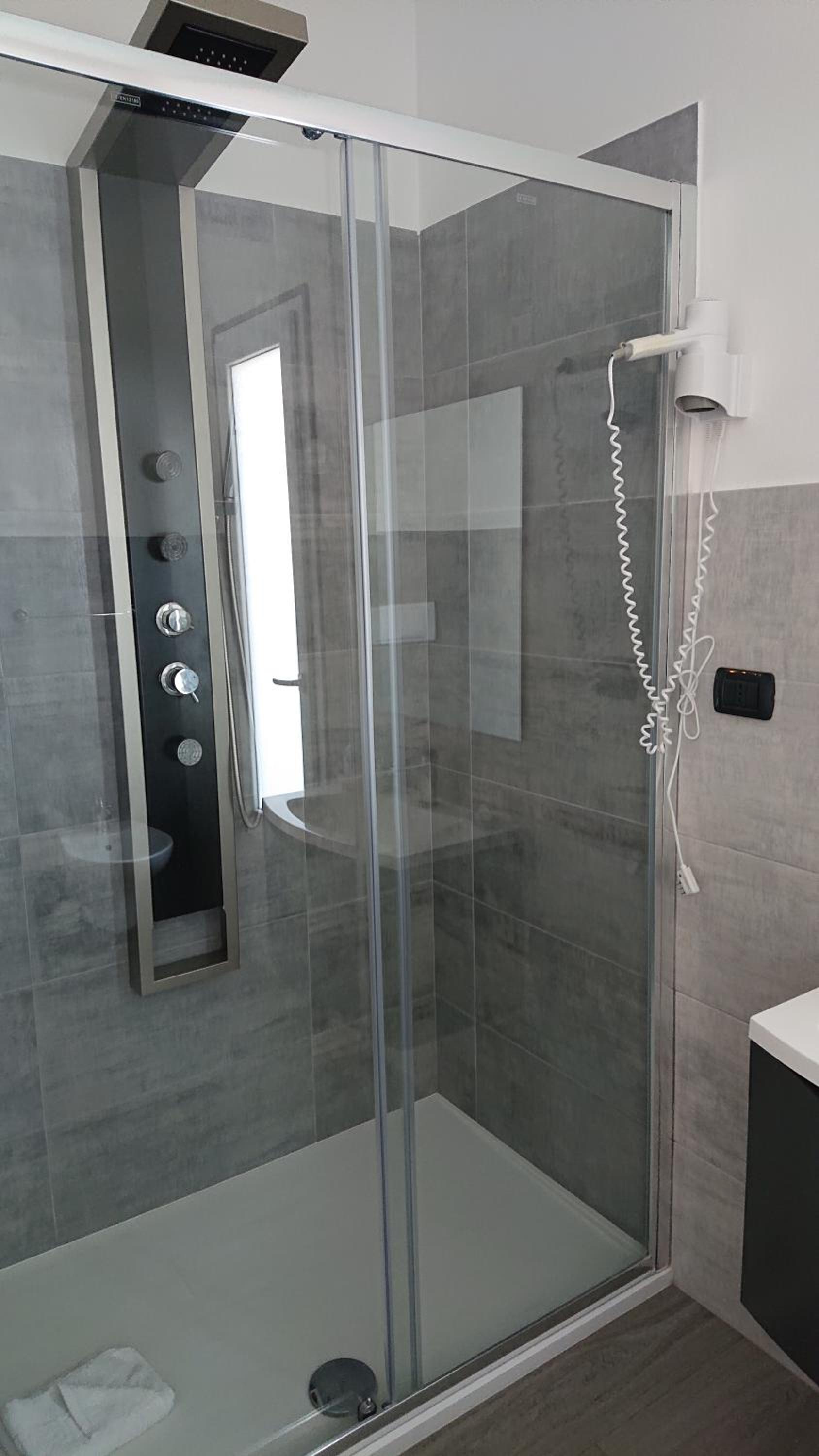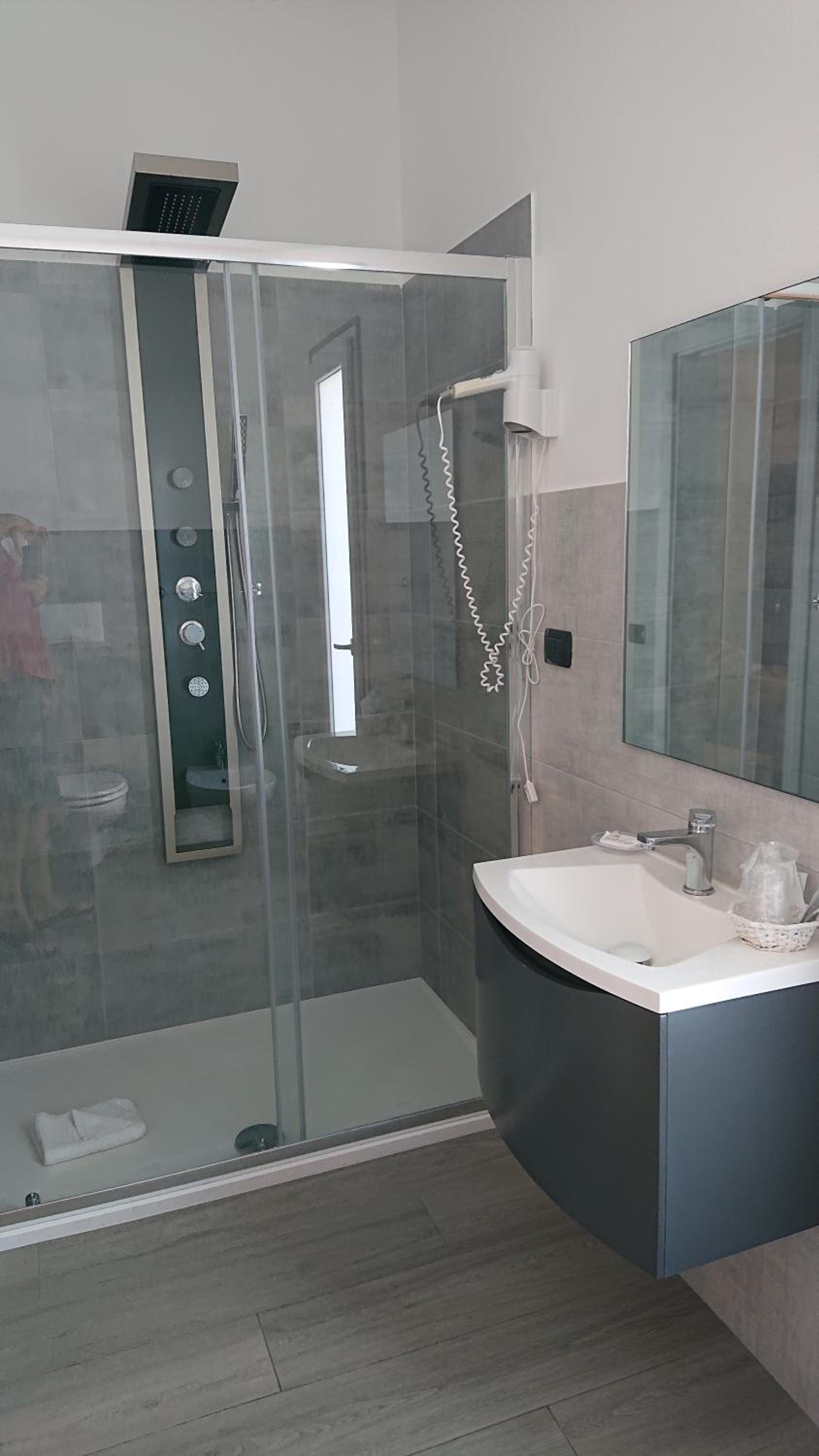 La salle de bains était confortable avec une belle douche à l'italienne et massante .