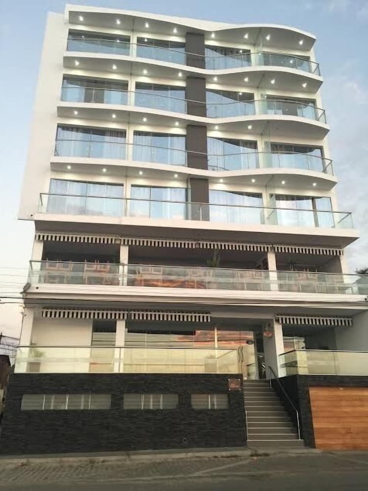 It was a good stay though quite basic (new) hotel. There’s a nice view over the sea but be aware the waves are fairly noisy at night. Breakfast was just juice, coffee and scrambled eggs. Service was good but they charged us the 18 % tax that foreigners are not supposed to. Only some of them speak English but we got by with those speaking Spanish just fine as well.