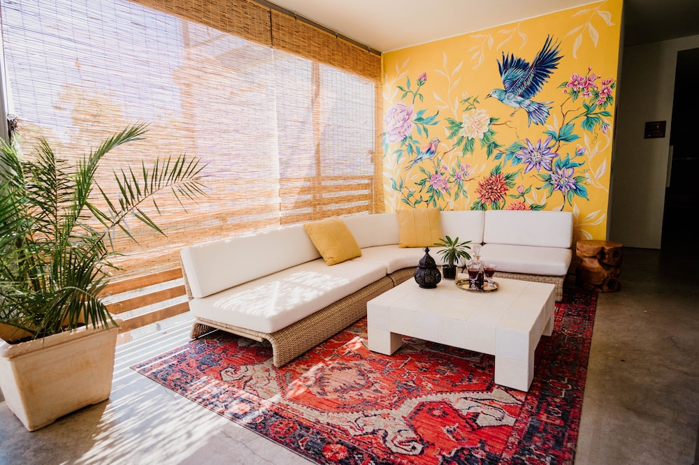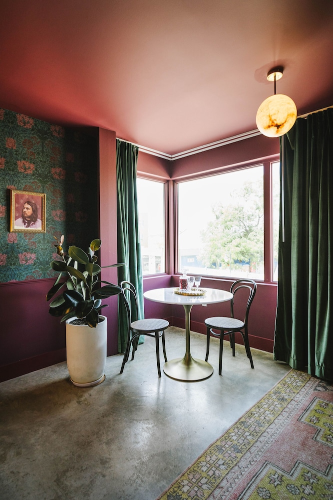 Located in a lively East Austin neighborhood, the Frances Modern Inn is easy to access (digital locks with keypads) and has lovely common spaces with cold sparkling water, fancy coffee machines, books, and games.